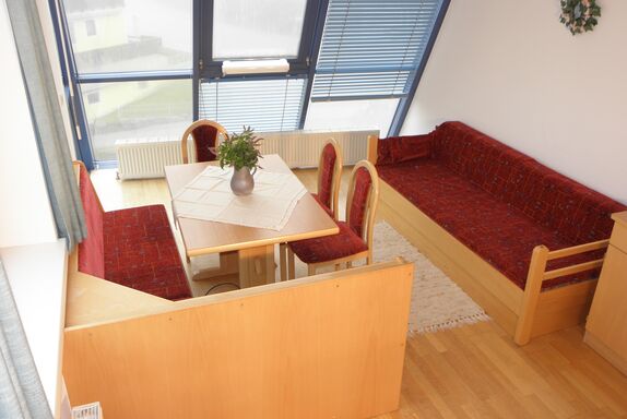 Unser modernes Appartement liegt direkt im Skigebiet Planneralm und ist nur 20 m vom nächsten Skilift entfernt. Das Appartement bietet ein Badezimmer mit DU und WC, Vorraum, eine große Wohnküche mit Stockbett und Couch sowie in der oberen Etage einen Schlafraum mit Doppelbett, Einzelbett und Balkon.