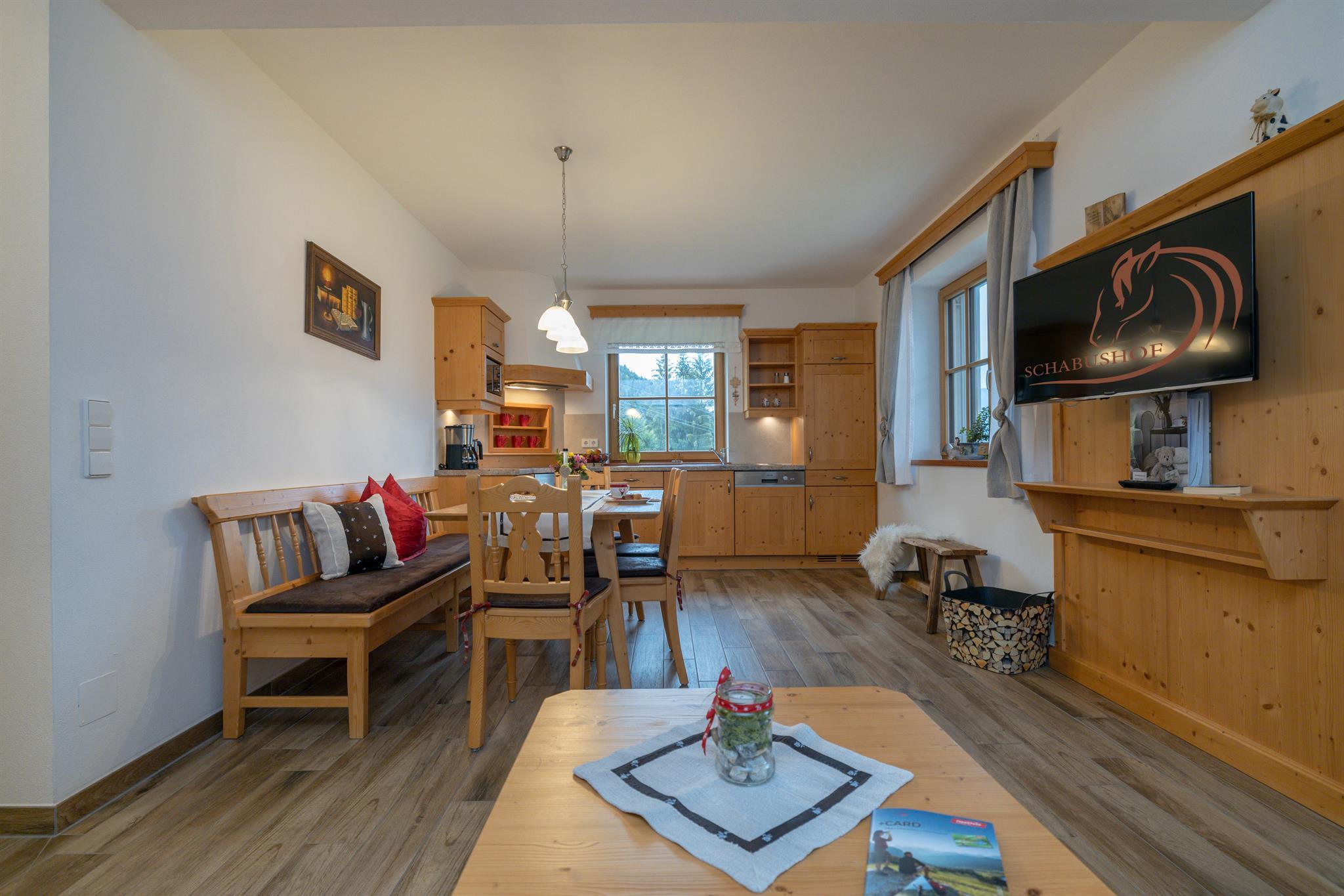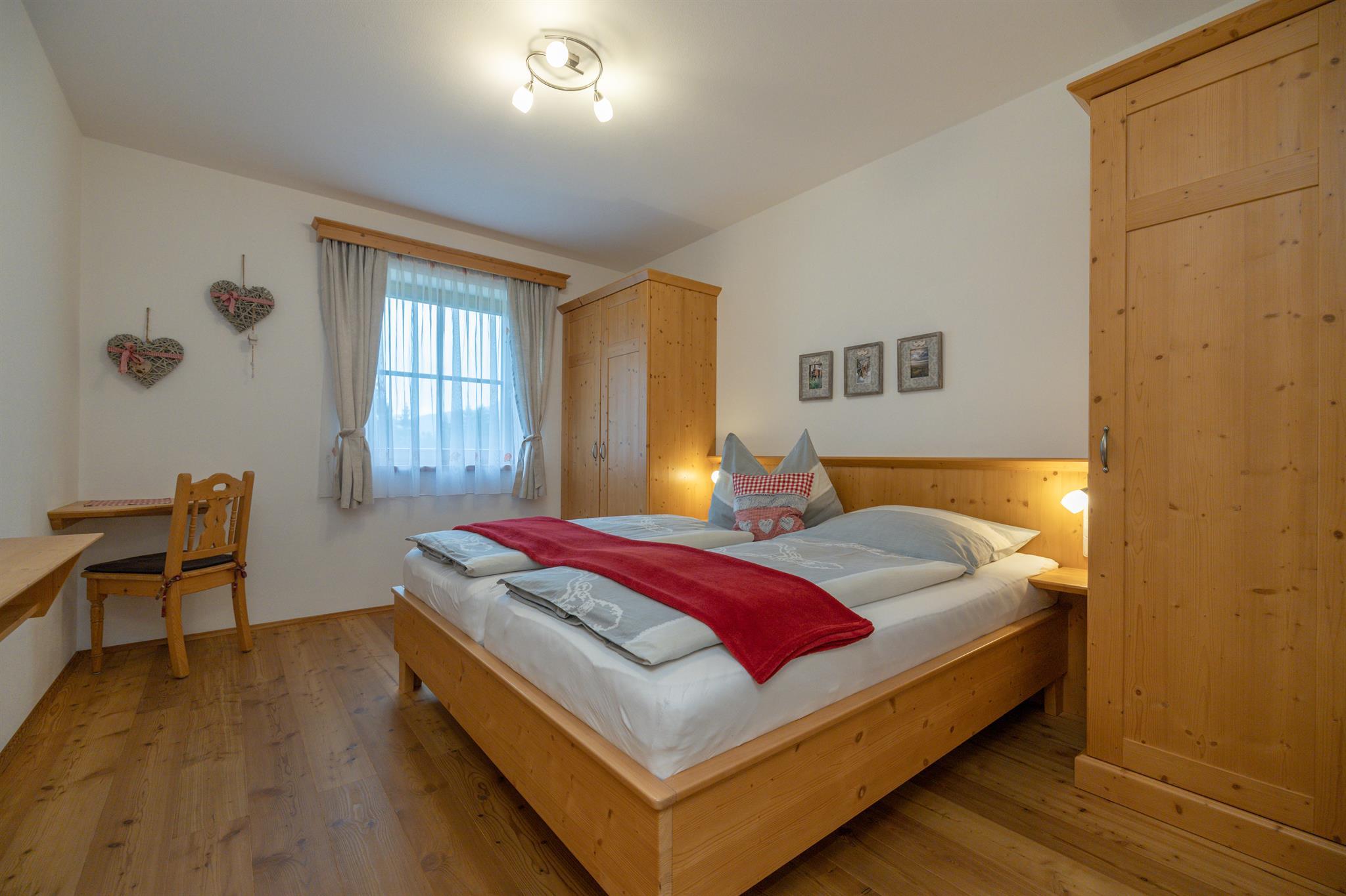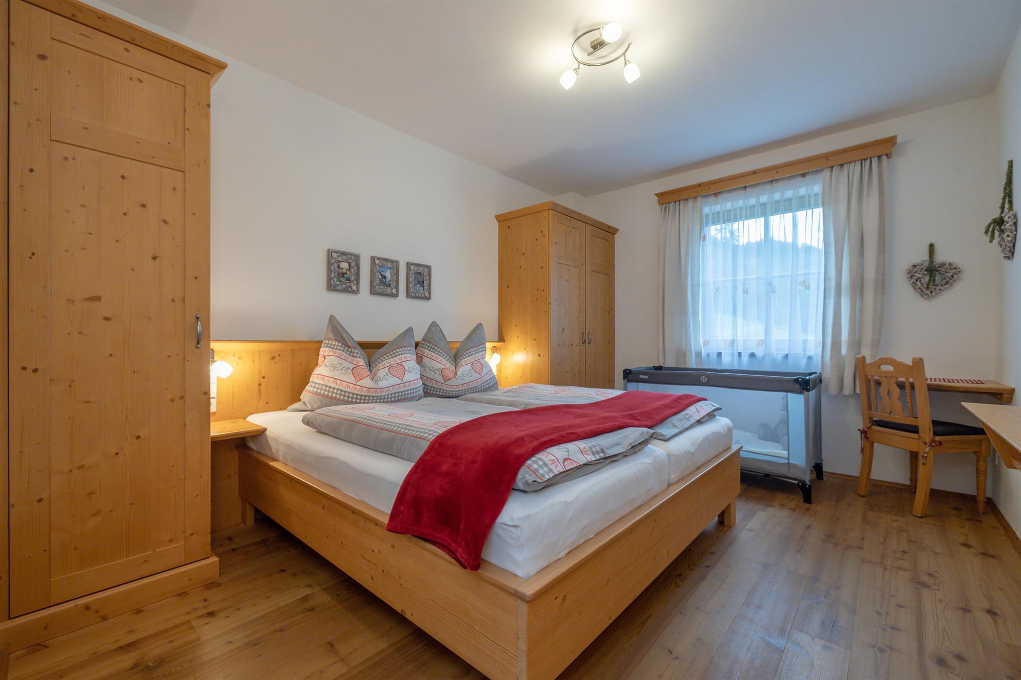 Die Ferienwohnung Gartnerkofel 68m² ist für 2-4 Personen und befindet sich im Erdgeschoß des Lärchenhauses. Sie ist mit hochwertigen Vollholzmöbeln ausgestattet und besteht aus: 2 getrennte Schlafzimmer, Lärchenparkettböden, Bad mit 2 Waschbecken, Fön, Kosmetikspiegel, Toilette getrennt, Vorraum mit Garderobe, vollausgestattete Küche, Geschirrspüler, Wifi, Sat-TV Flachbildschirm, Tischgarnitur mit Sitzbank und Couch, Terrasse 10,5m² südlich.