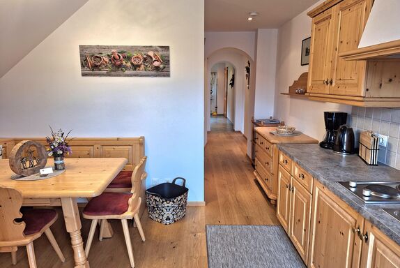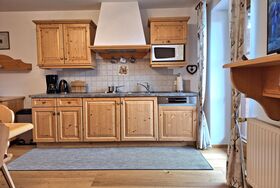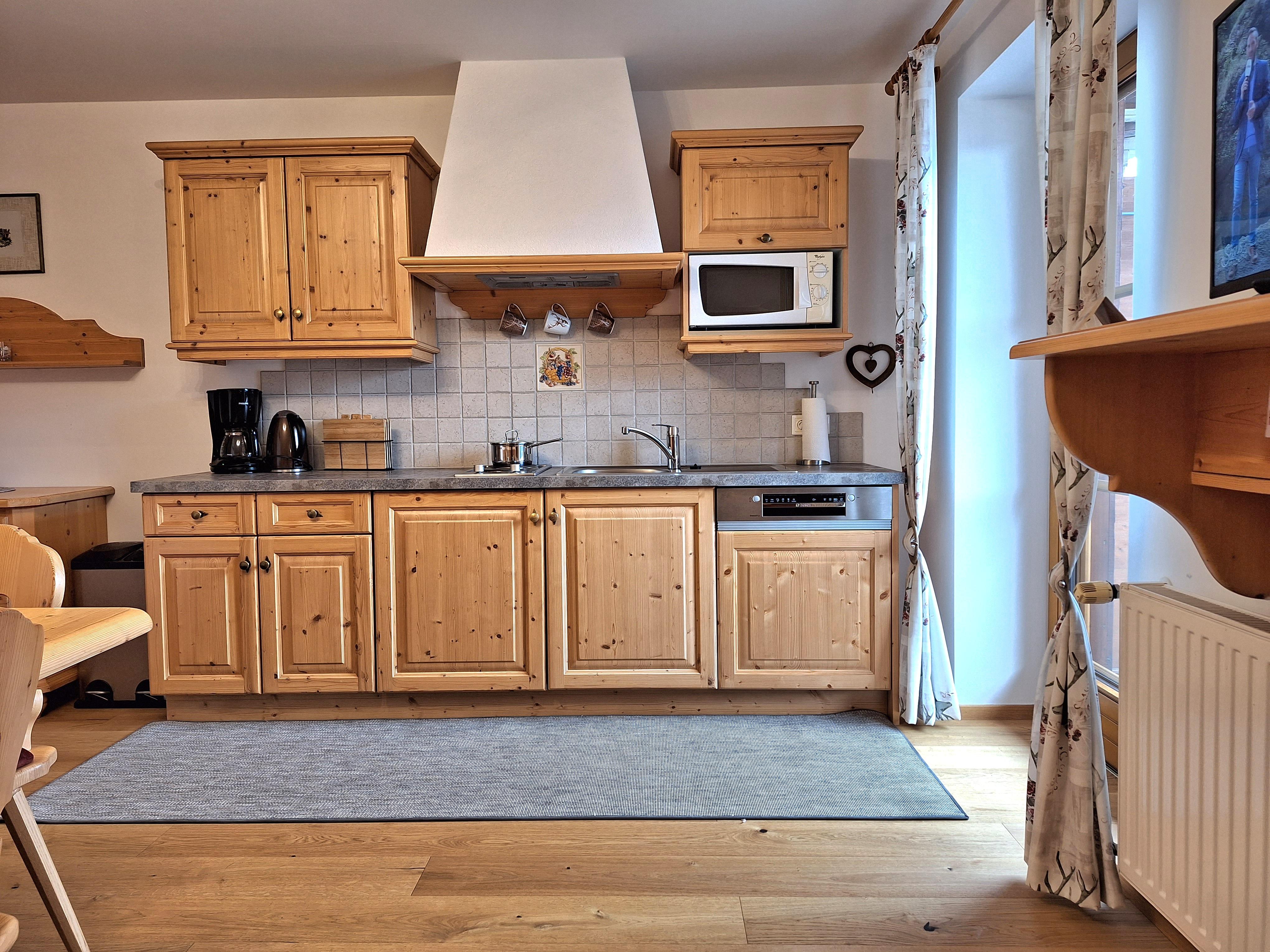 Liebevoll eingerichtete Ferienwohnung 55m² mit 2 getrennten Schlafzimmern, Südbalkon, Parkettböden, helle Holzmöbel, Du und WC getrennt, Vorraum mit Garderobe, voll ausgestattete Küche mit Geschirrspüler, Radio, Sat-Tv, W-lan kostenlos, Bettwäsche, Handtücher und Geschirrtücher inklusive.