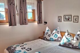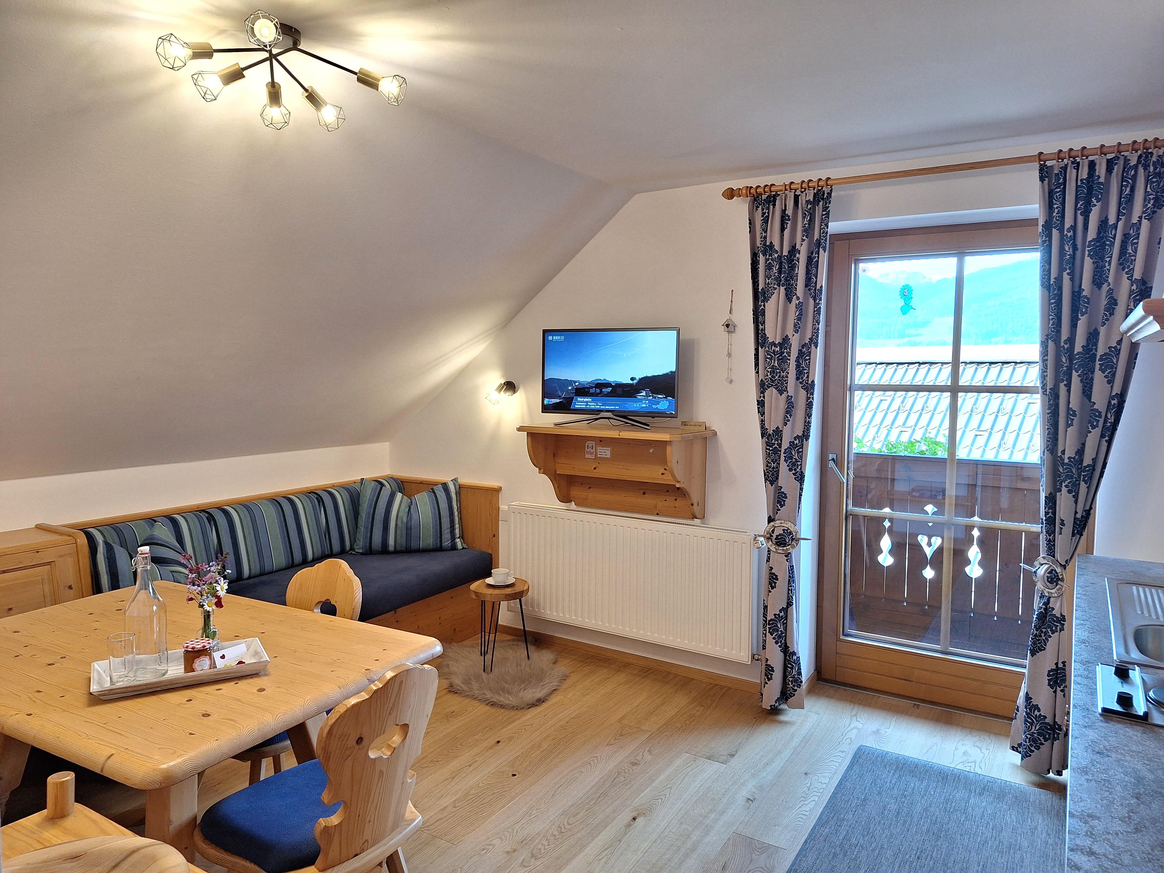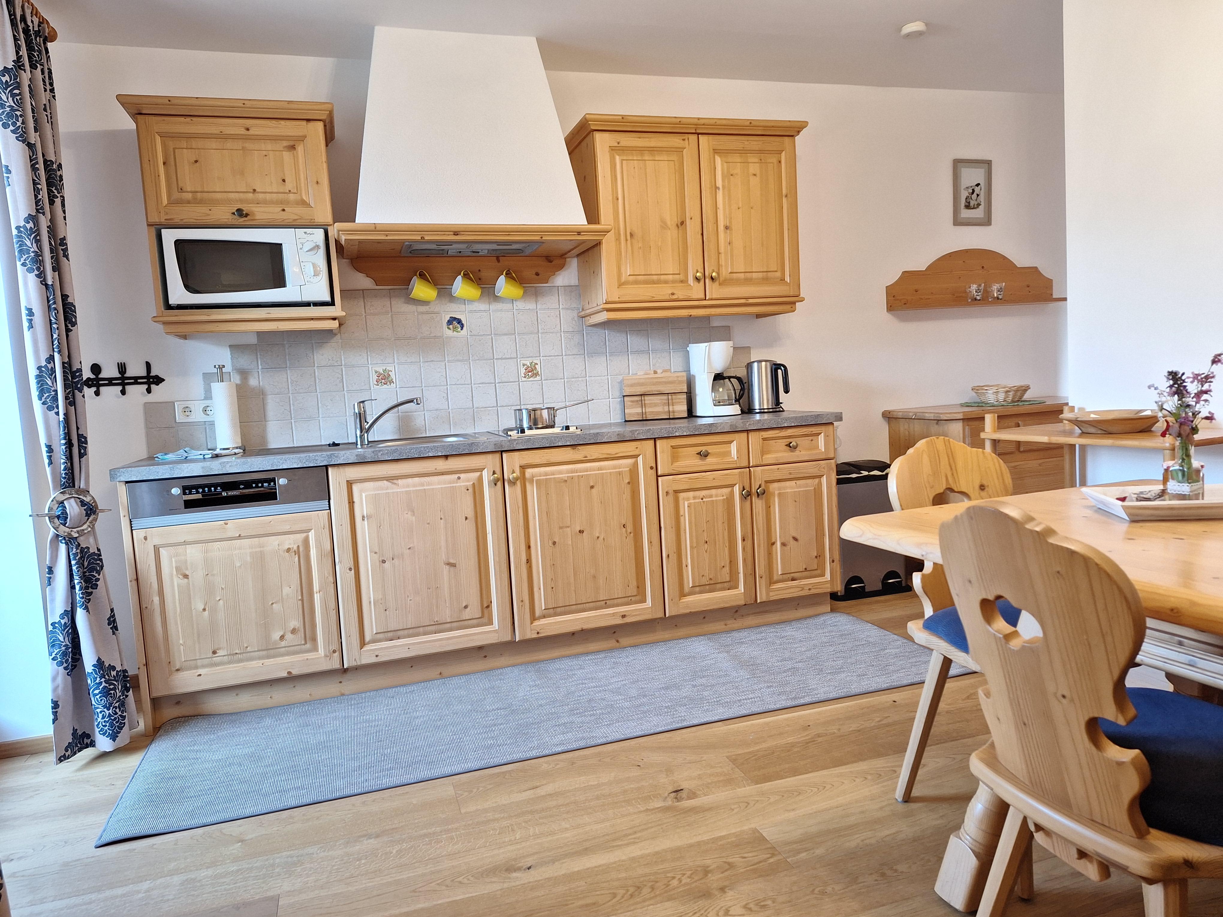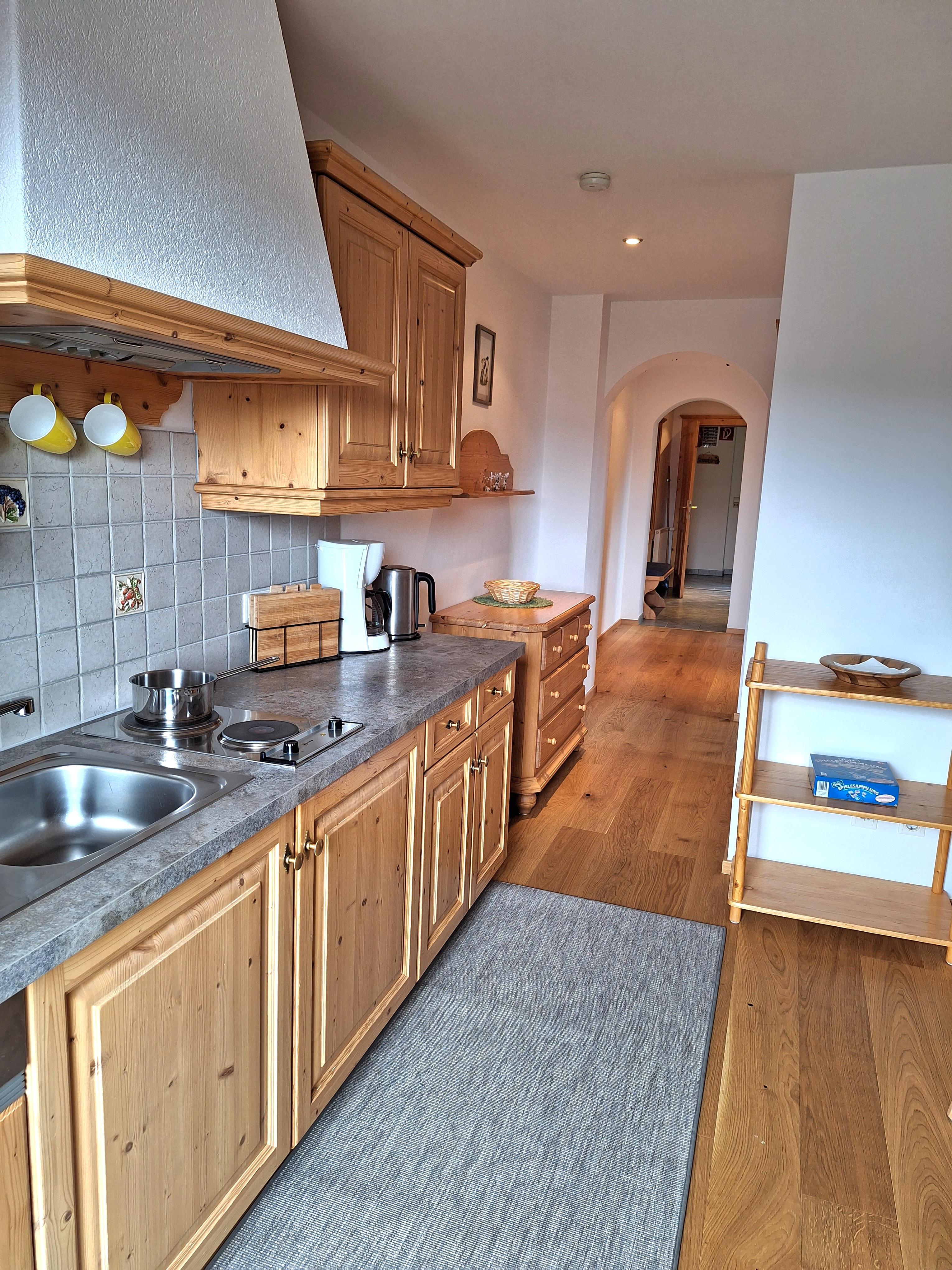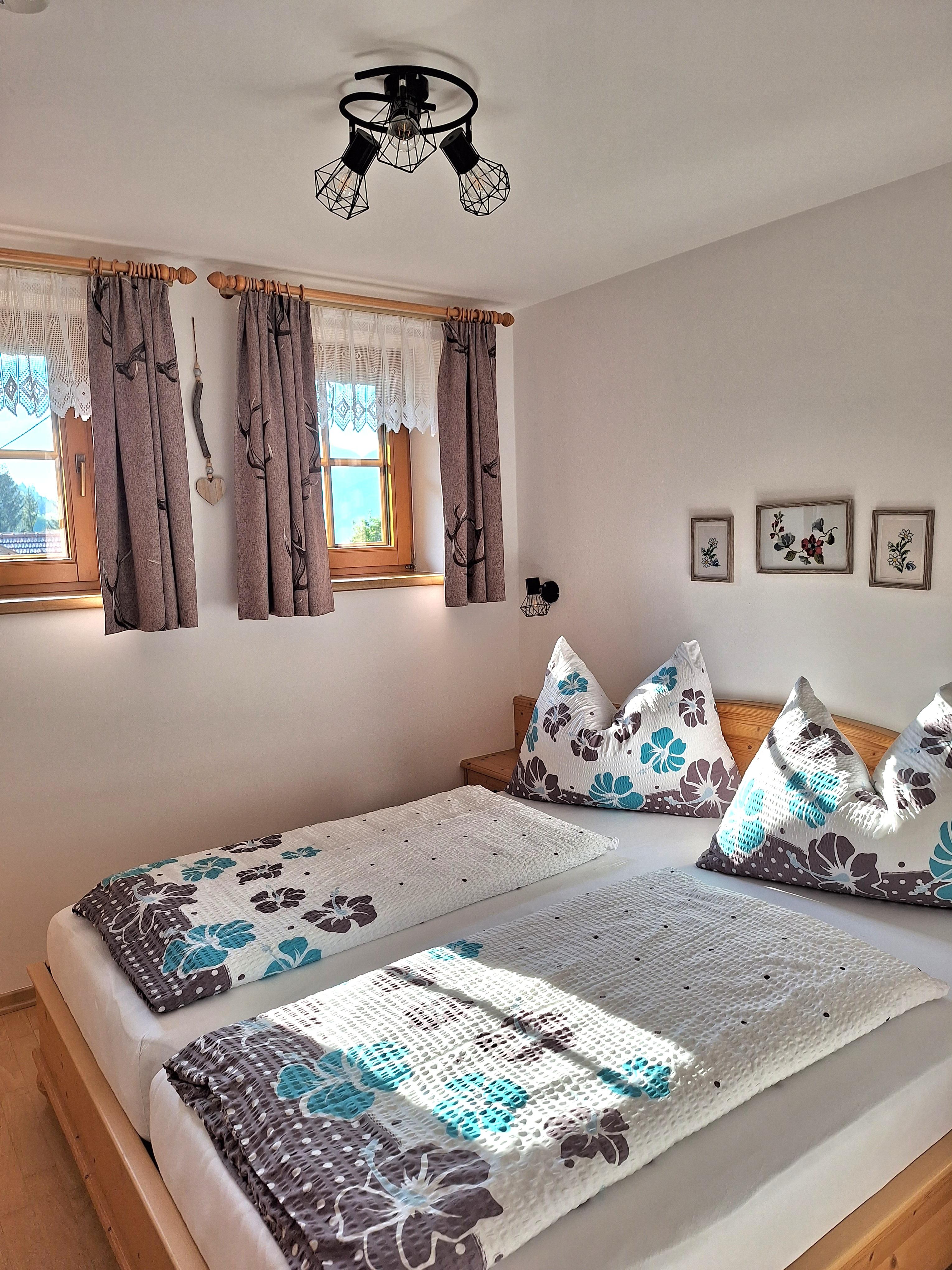 Liebevoll eingerichtete Ferienwohnung 55m² mit 2 getrennten Schlafzimmern, Südbalkon, Parkettböden, helle Holzmöbel, Dusche und WC getrennt, Vorraum mit Garderobe, voll ausgestattete Küche, Radio, Sat-Tv, W-lan kostenlos, Bettwäsche, Handtücher und Geschirrtücher inklusive.