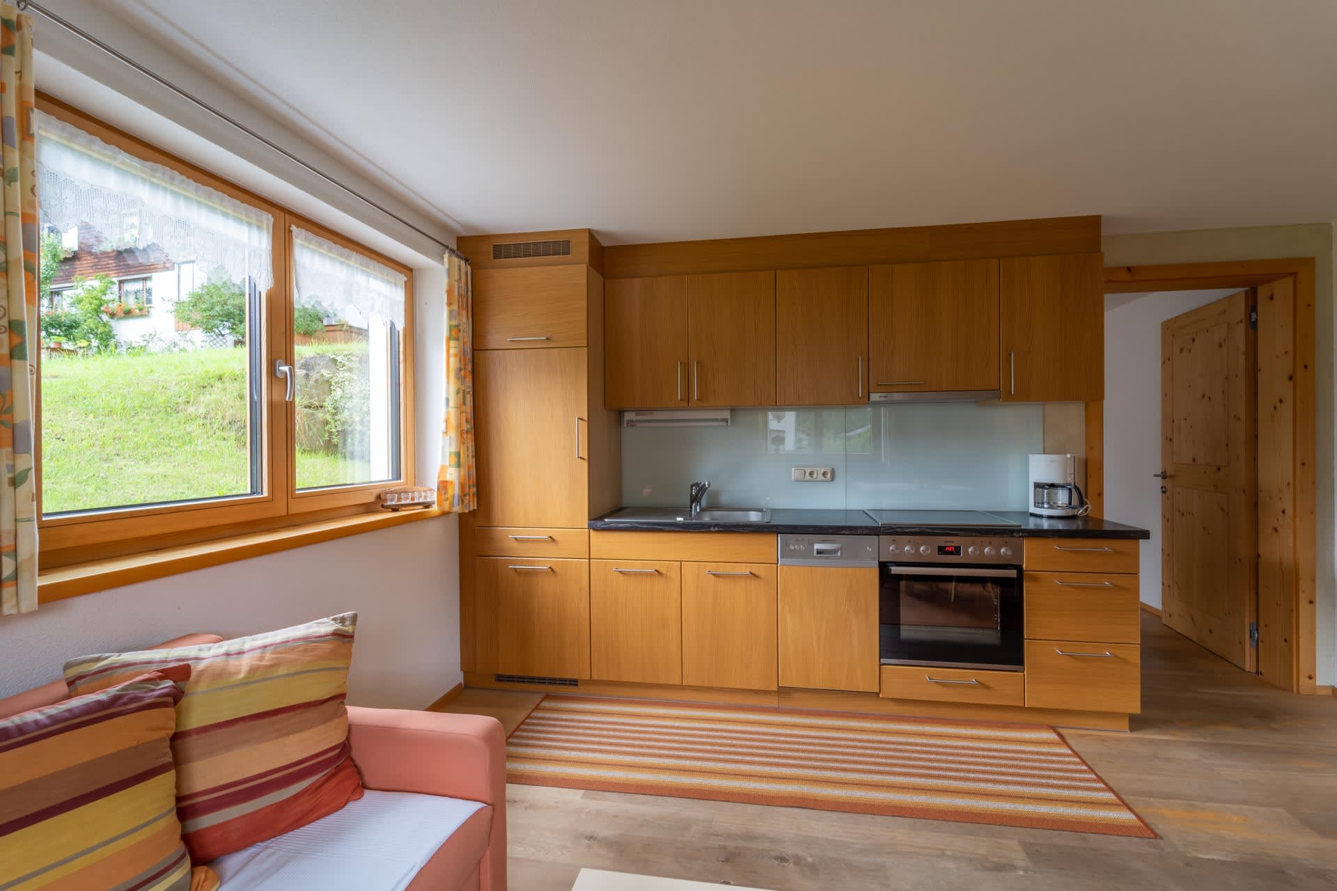 Das Appartement Esche blickt nach Südwesten. Die im Tiefparterre gelegene 2-Zimmer-Wohnung mit Gartenanteil ist komplett ausgestattet. Neben einem geräumigen Schlafzimmer samt modernem Bad mit Dusche und WC verfügt es auf 36 m² über eine gemütliche Wohnküche mit allem Drum und Dran (Herd, Backofen, Mikrowelle, Kaffeemaschine und Spülmaschine). Hier fühlen Sie sich wie zuhause.