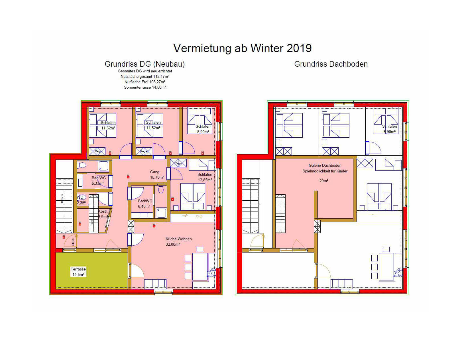 Unser Appartement hat eine Nutzfläche von 112 m² ist mit vier Doppelzimmern, einer Wohnküche und zwei Sanitäranlagen sowie einem Dachboden für Kinder (Spielmöglichkeit) ausgestattet. Dazugehörig ist eine großräumige Terasse welche nach Süden ausgerichtet ist und Ihnen einen wunderschönen Panoramablick gewährt.