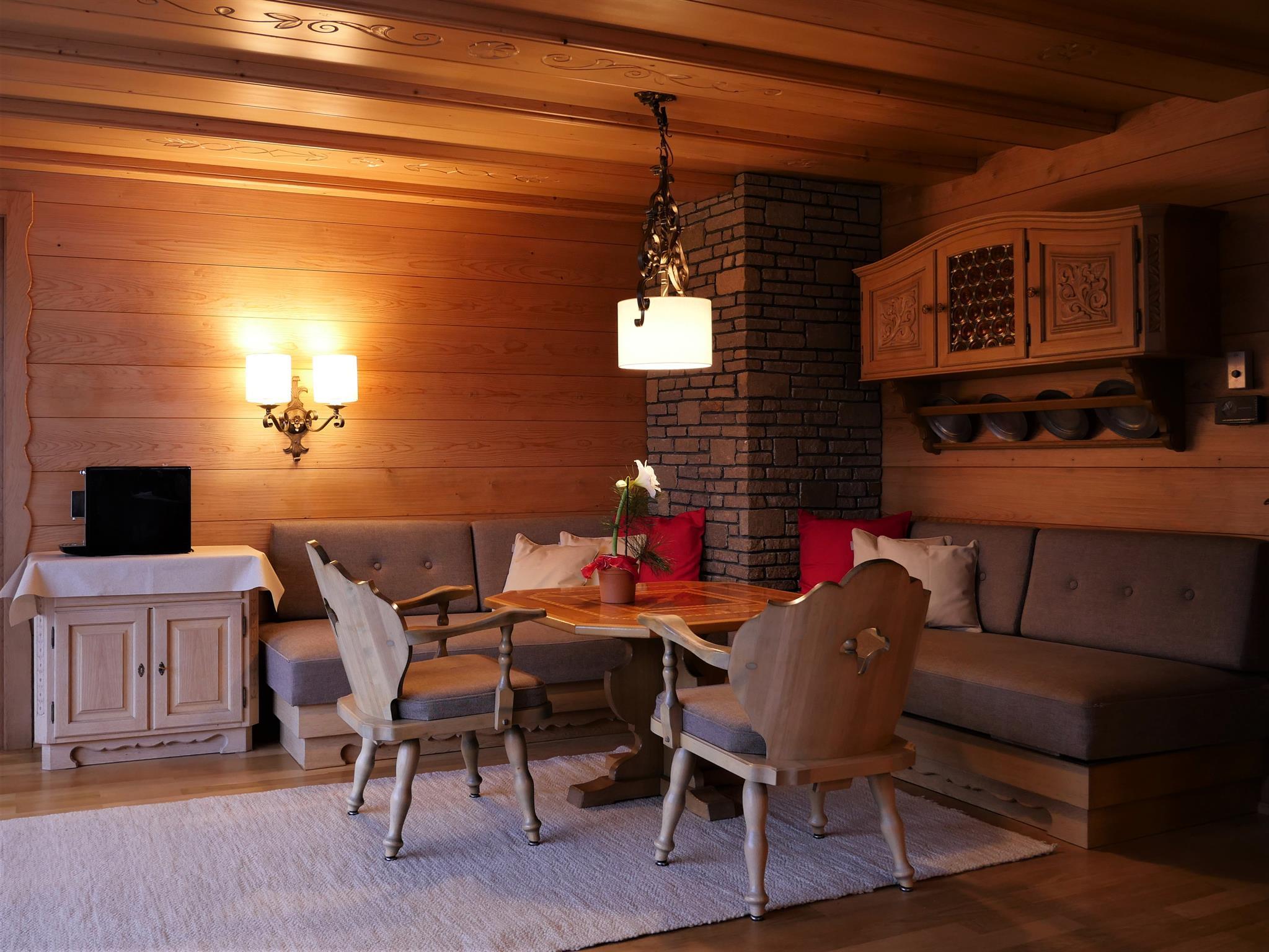 Zudem sind zwei Bäder, eine Sauna, ein Spiel- und Aufenthaltsraum, ein Schiraum sowie ein Garagenstellplatz vorhanden.
