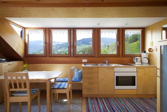Die vier stilvoll renovierten Wohnungen & die Sauna mit wohltuenden Kräuterdüften in unserem ca. 300 Jahre alten Bregenzerwälder-Holzhaus bringen viel Licht und Wärme in Ihre Winterurlaubstage.