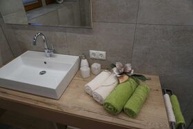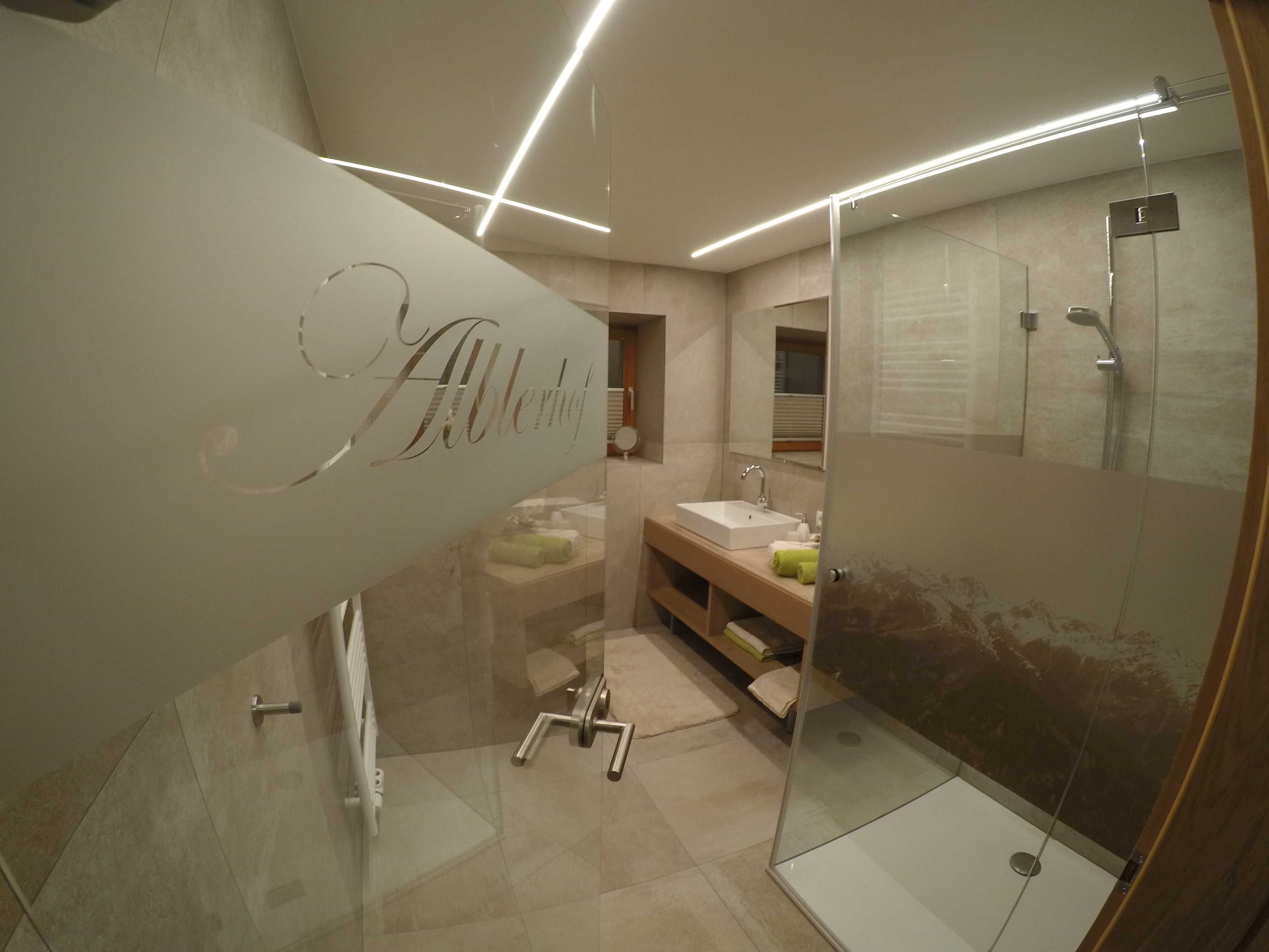 Ferienwohnung Alblerhof (2-5 Personen) Großzügige, komplett neu eingerichtete Ferienwohnung mit 54 m² (für 2-5 Personen) und eigenem Eingang im Erdgeschoss. 1 Schlafzimmer mit modernem Boxspringbett und kuscheliger Bettdecke und Bettwäsche, Flachbild-TV, Safe. 1 Wohnküche mit großzügigem Küchenblock, vom Wasserkocher, Kaffeemaschine bis zum Ge-schirrspüler mit Tabs, hochwertiges Schlafsofa für 2 Personen sowie bei Bedarf ein ausklappbares, hochwertiges Stockbett, Essecke, Flachbild-TV, Gratis-WLAN. 1 Badezimmer mit Dusche, WC und Kosmetikspiegel. Auch ein Skiständer, ein Skischuhtrockner sowie ein Parkplatz stehen Ihnen zur Verfügung. Die Skibushaltestelle zu den Top-Skigebieten Nauders/Reschenpass und Samnaun/Ischgl liegen in 200m Entfernung (3 min. Gehzeit). Im Frühjahr lädt der hauseigene Garten mit traumhaften Berg-blick zum Ausspannen und Sonne tanken ein.