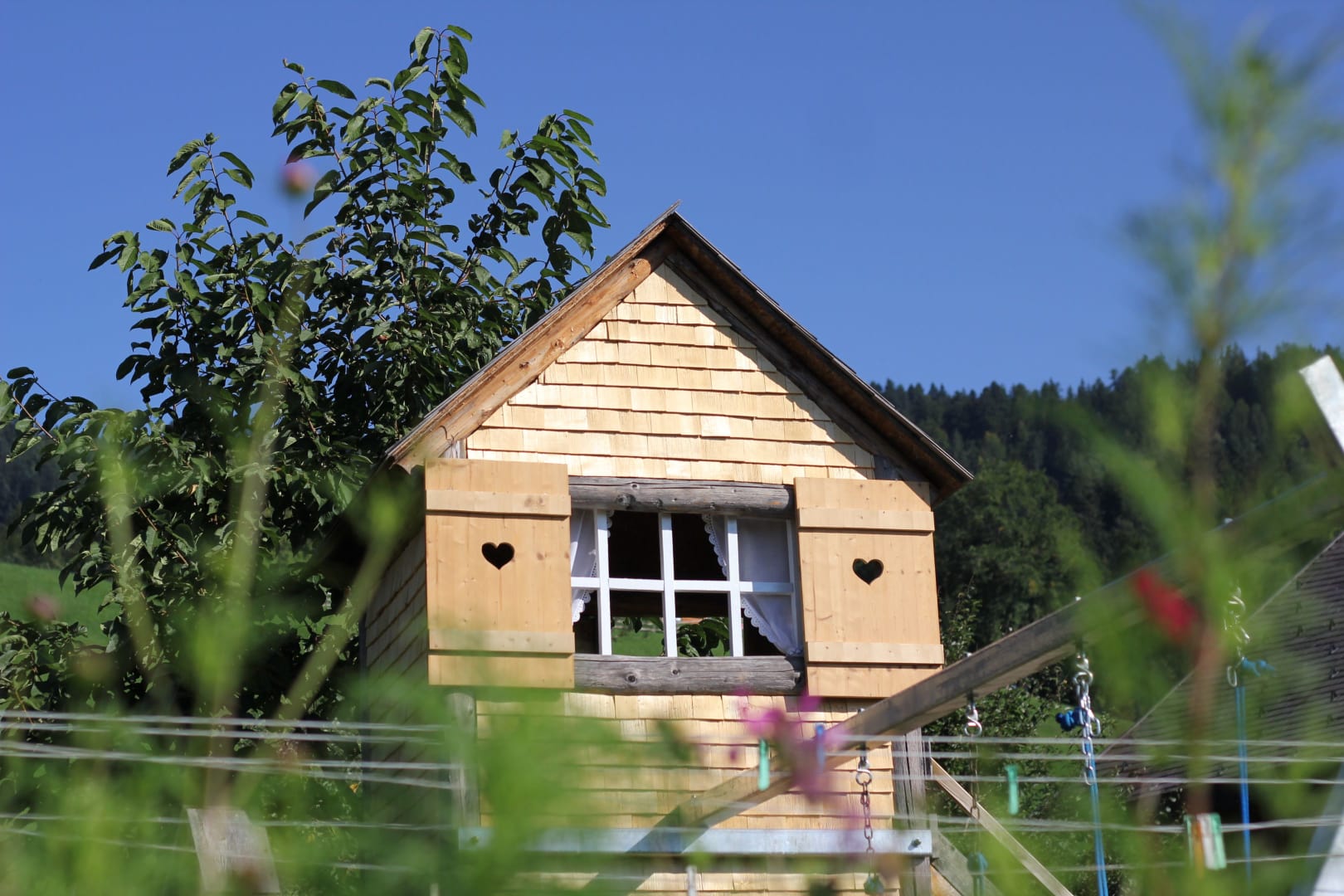 * die Spiel- und Rodelwiese für Kleinkinder vor unserem Haus