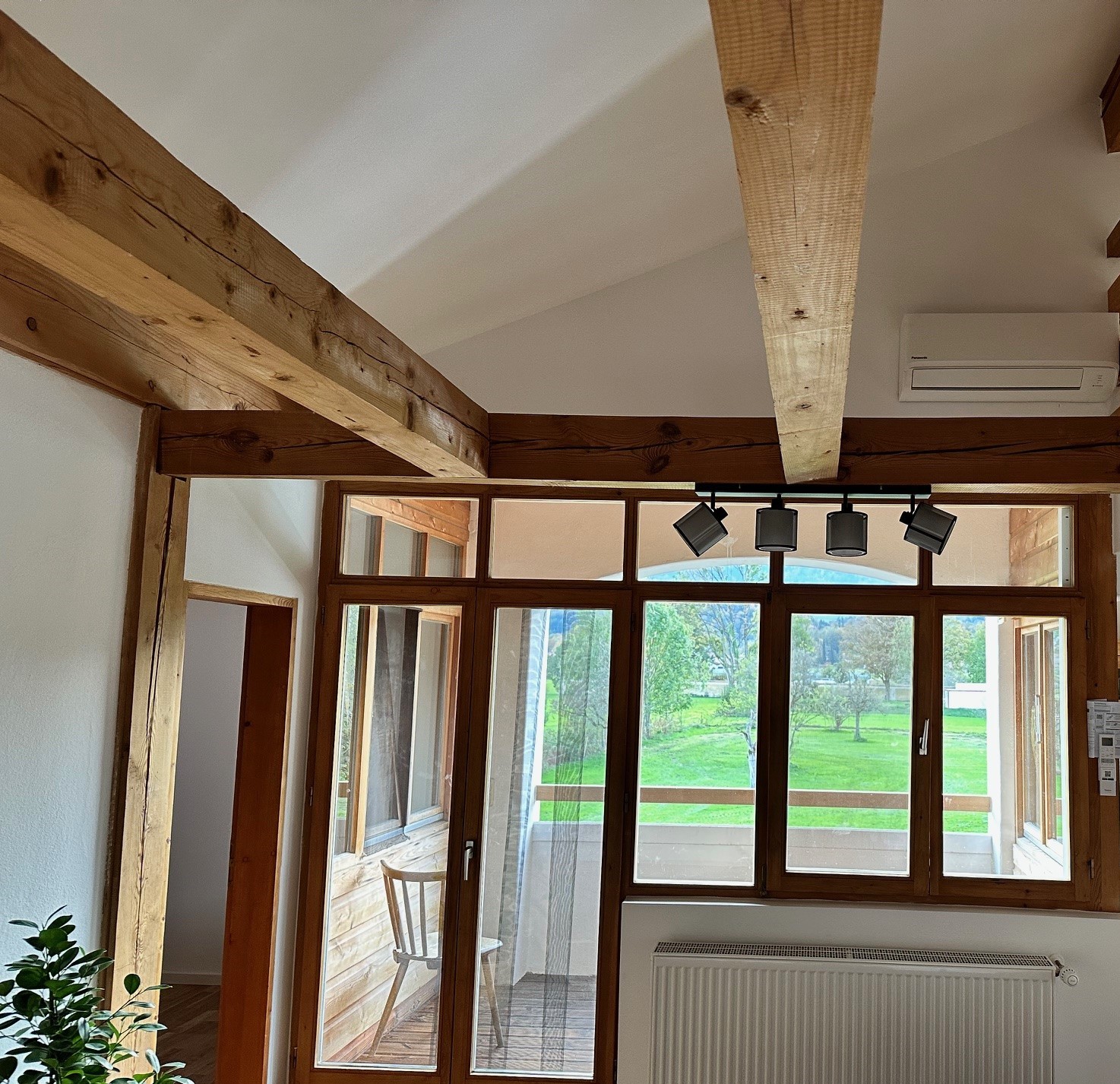 Unsere Ferienwohnung besticht durch einen unverbauten, grandiosen Ausblick auf die umliegenden Berge und das Kloster Reisach – ein Panorama, das Ihnen zu jeder Tageszeit Ruhe und Inspiration schenkt.