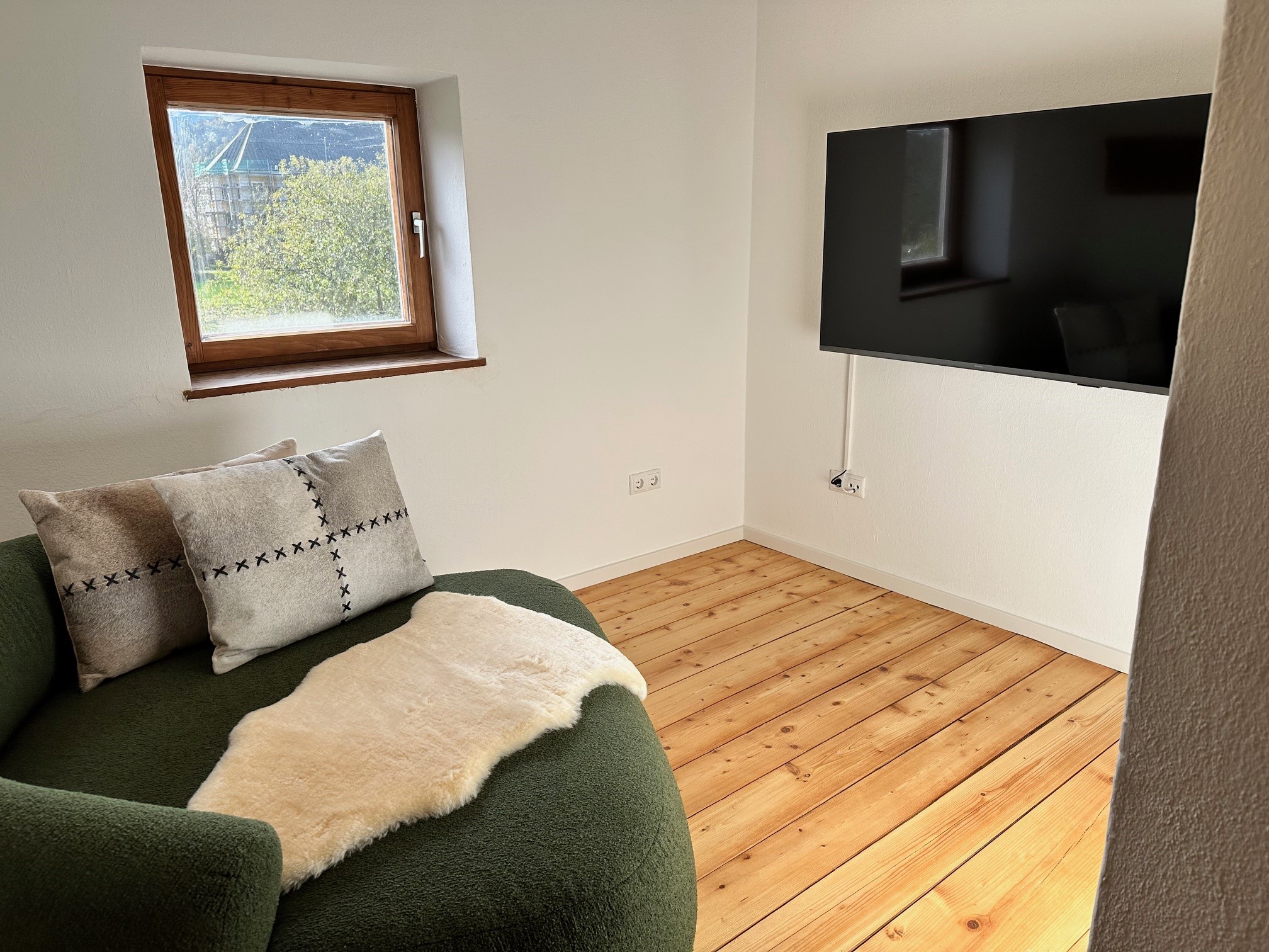 In der zweiten Etage erwartet Sie ein begehbarer Kleiderschrank und eine gemütliche Fernsehecke – perfekt, um sich nach einem erlebnisreichen Tag zurückzuziehen und zu entspannen.