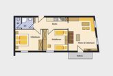 Viel Platz für 4 Personen, aber auch für 5 - 6 Personen bei Benützung des Wohnzimmers als zusätzliches Schlafzimmer (Doppelcouch).