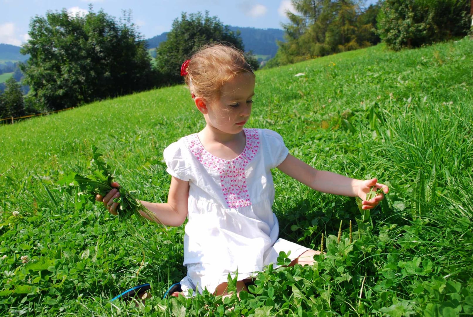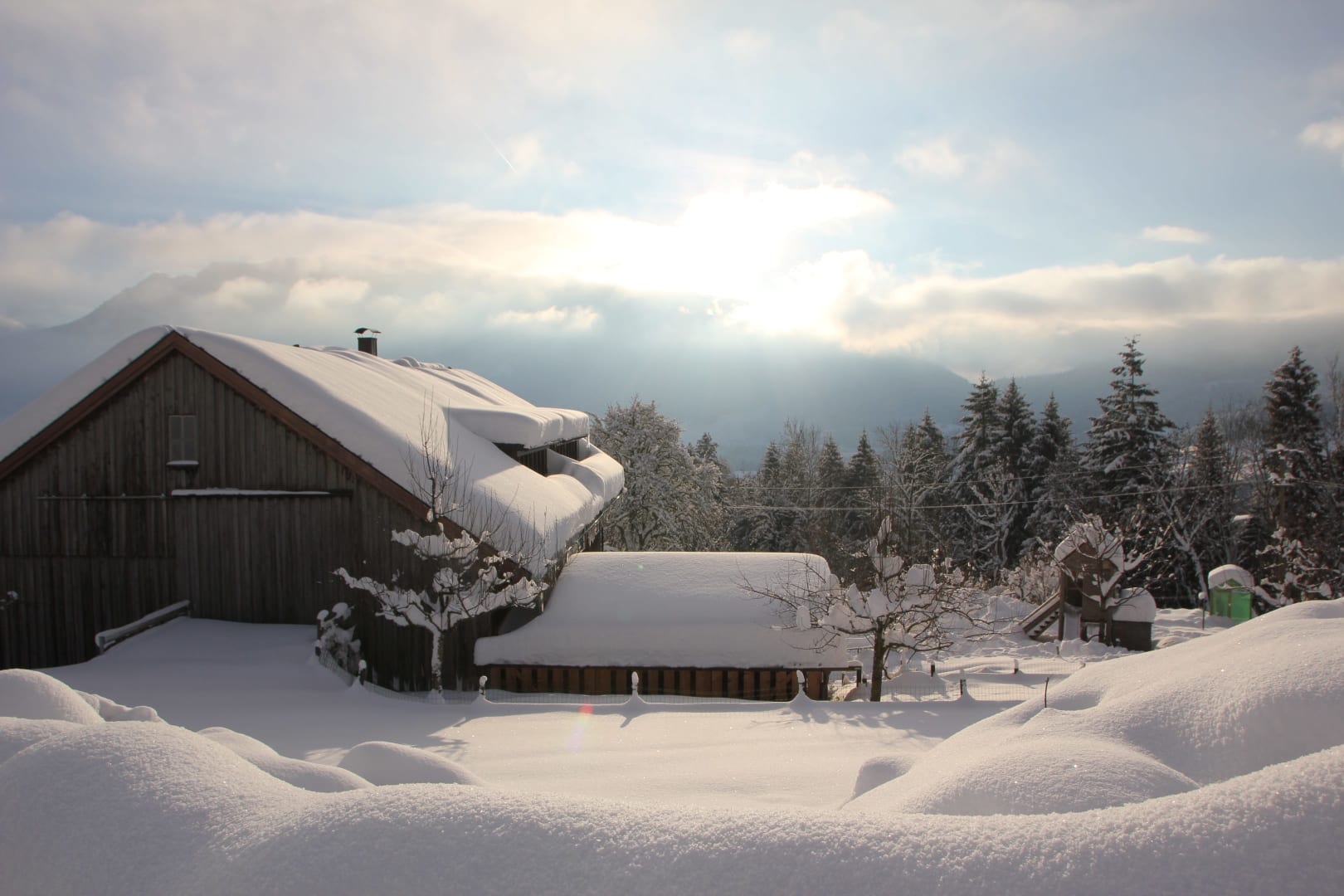 * die Spiel- und Rodelwiese für Kleinkinder vor unserem Haus