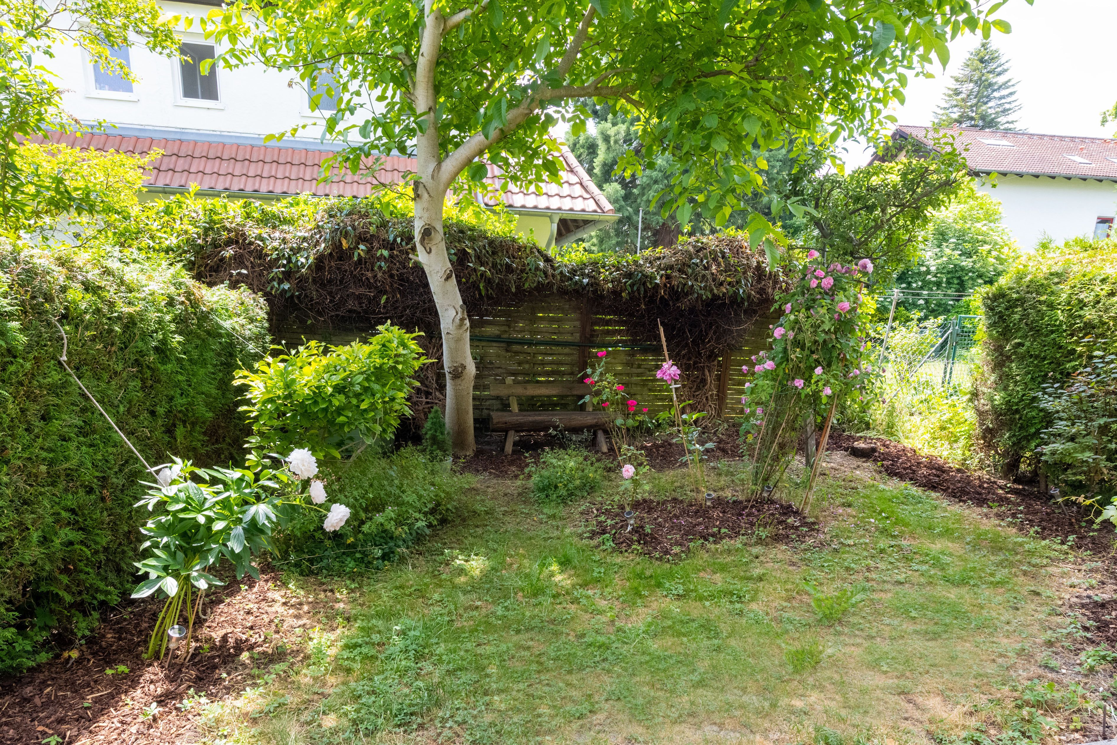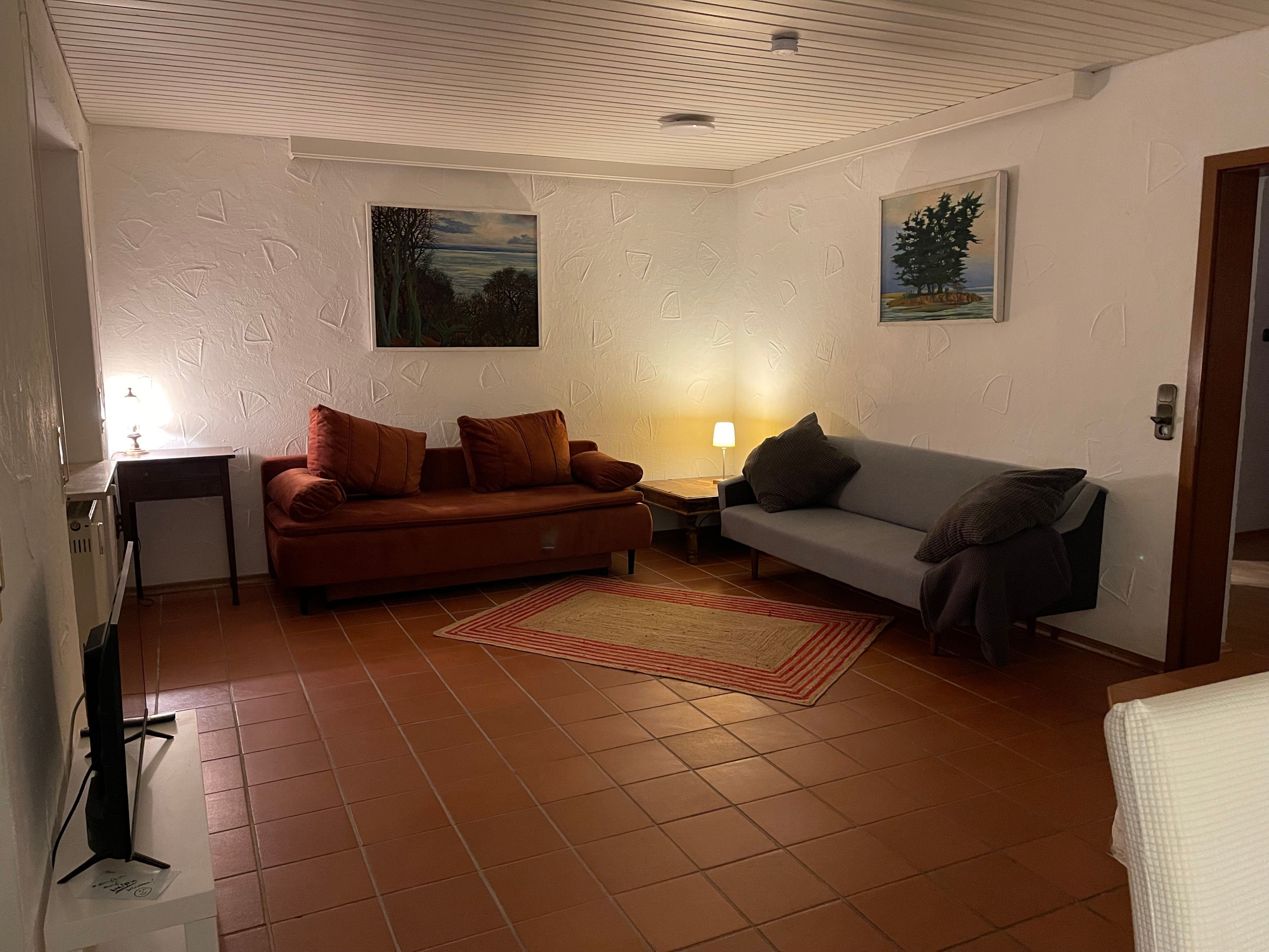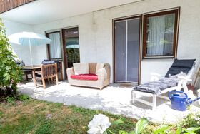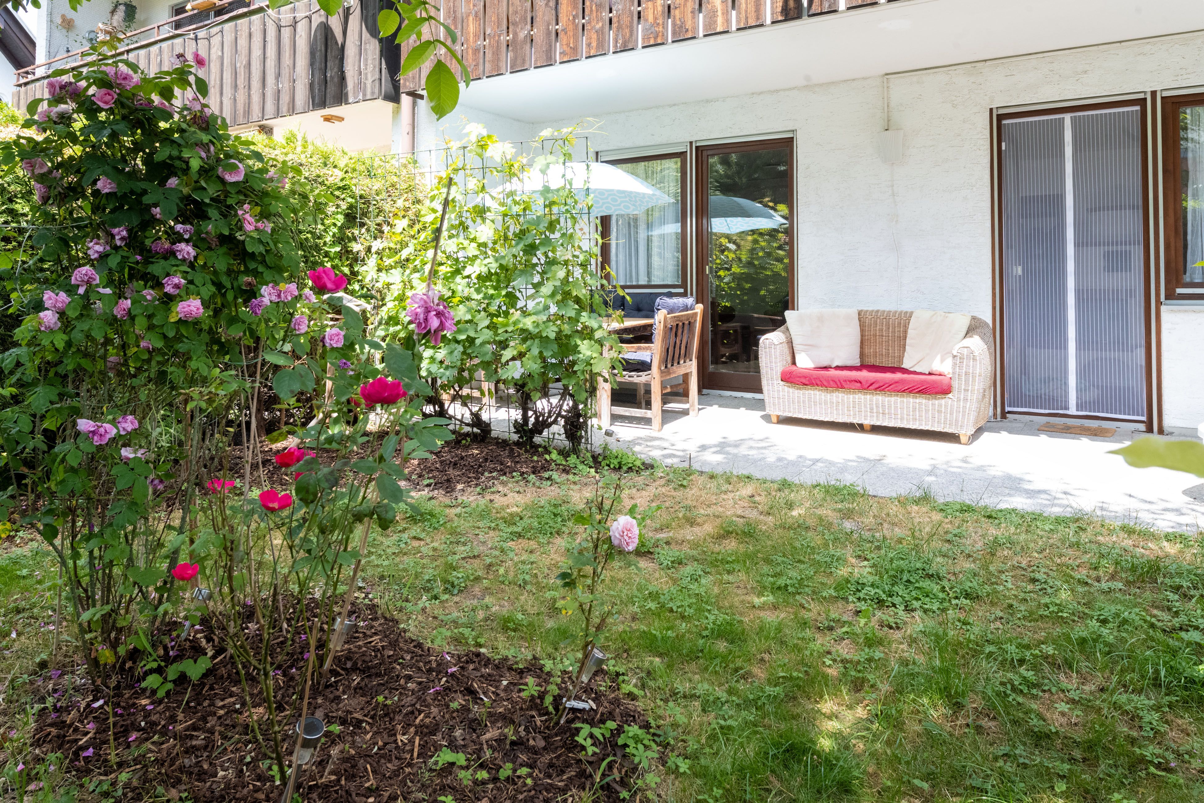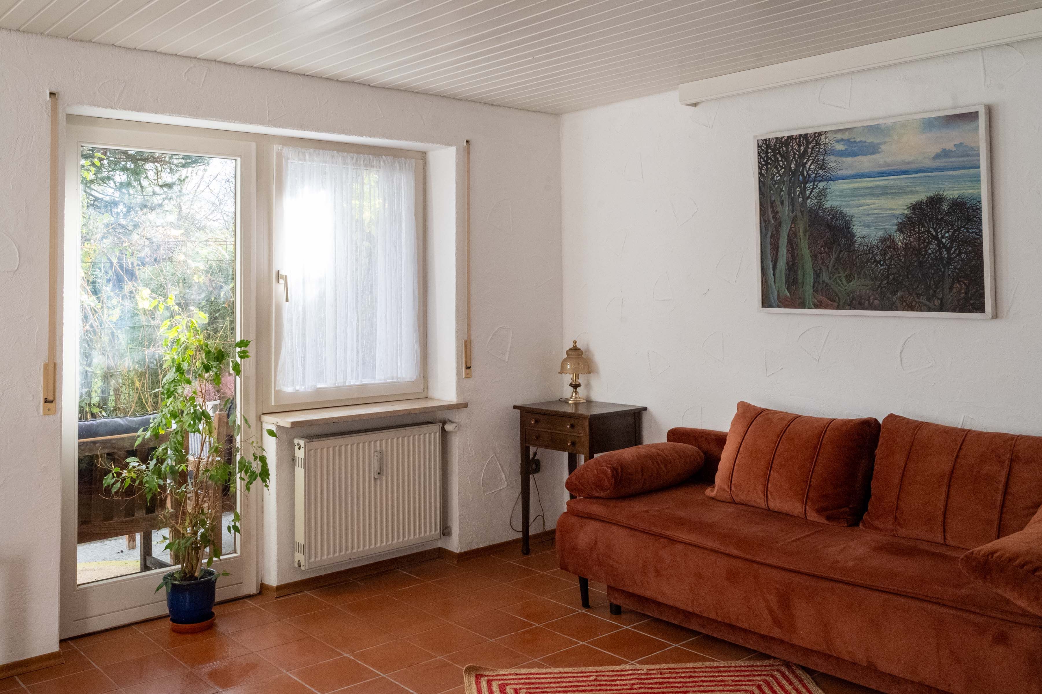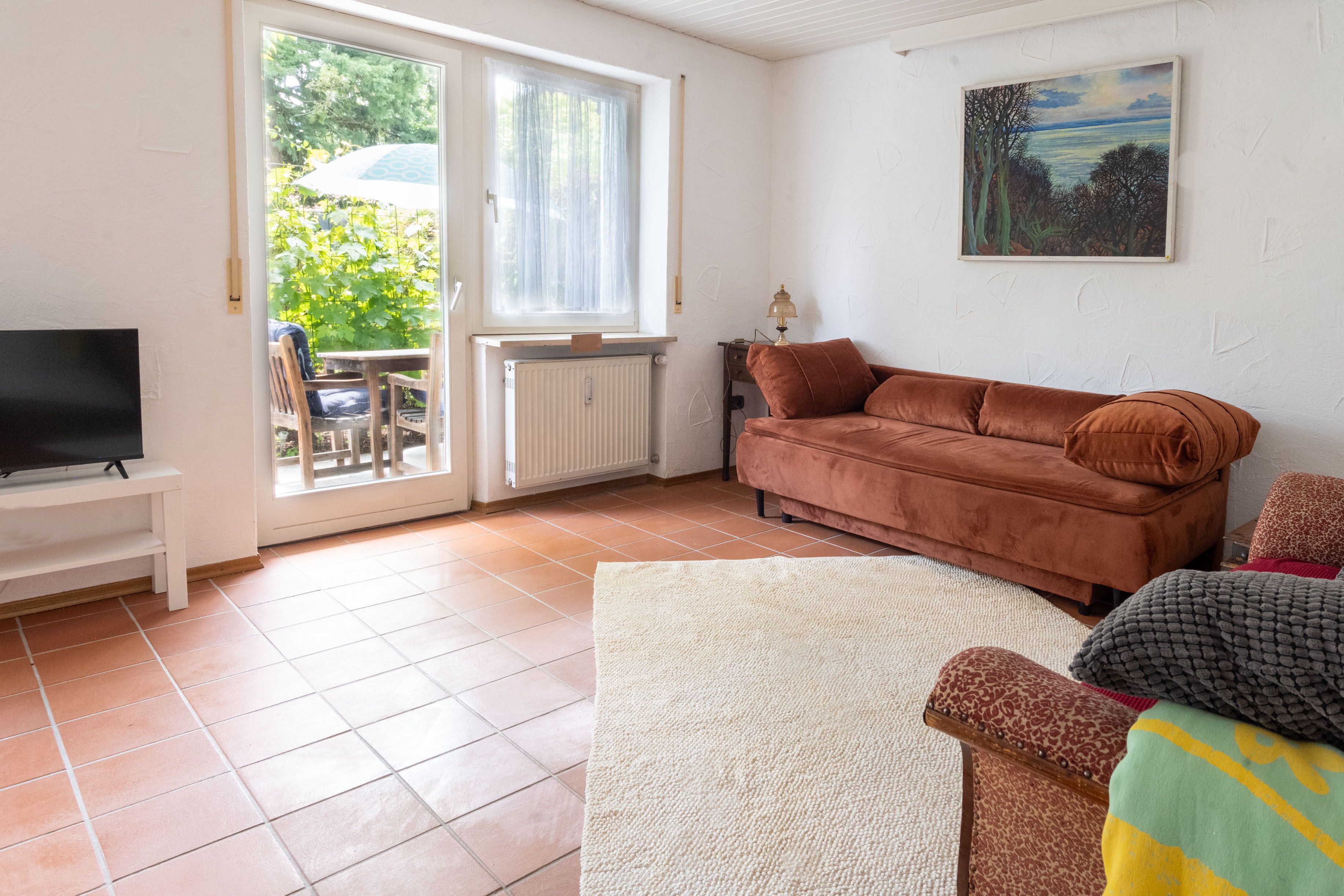 Ideal für Familien, gern auch mit Hund, ist die 58 qm große Wohnung, da kleiner eigener Garten und Terrasse in einer ruhigen Schotterstraße gelegen.