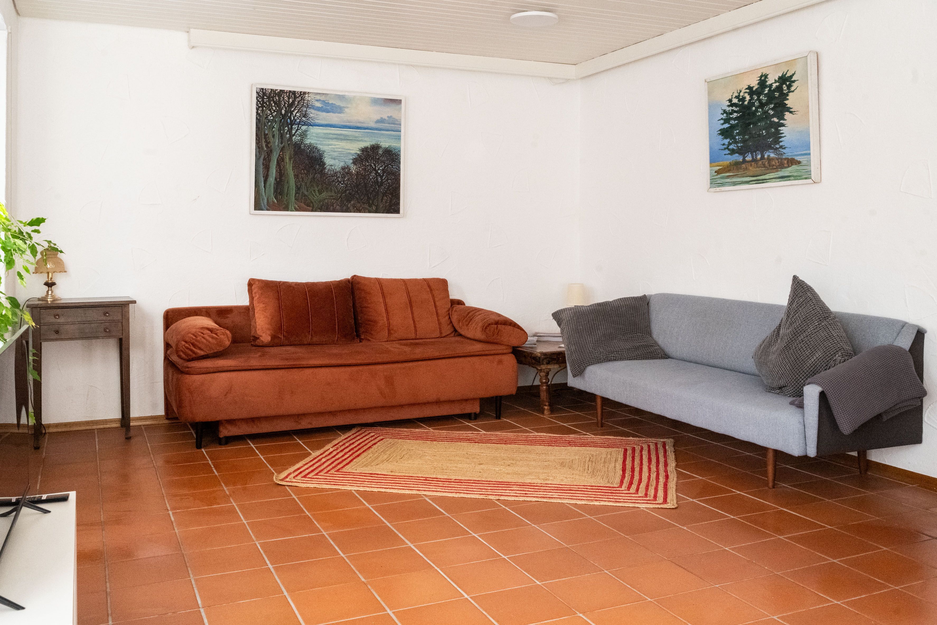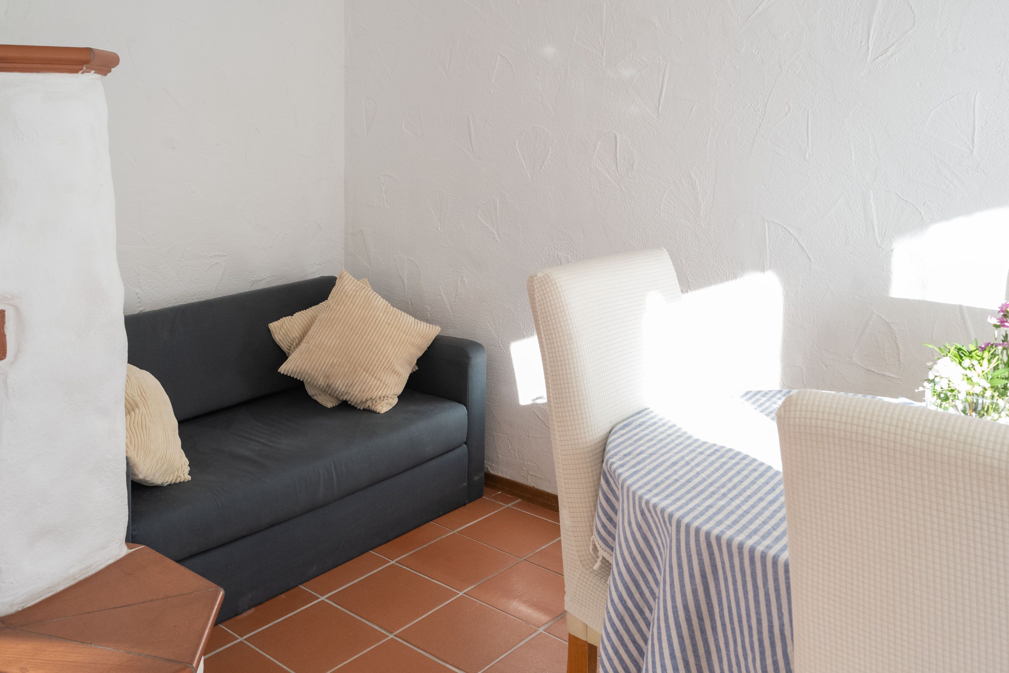 Es gibt ein Schlafzimmer mit einem Doppelbett, einen Wohn-Essraum mit Gartenzugang und zwei Schlafsofas ,bis zu sechs Gästen.