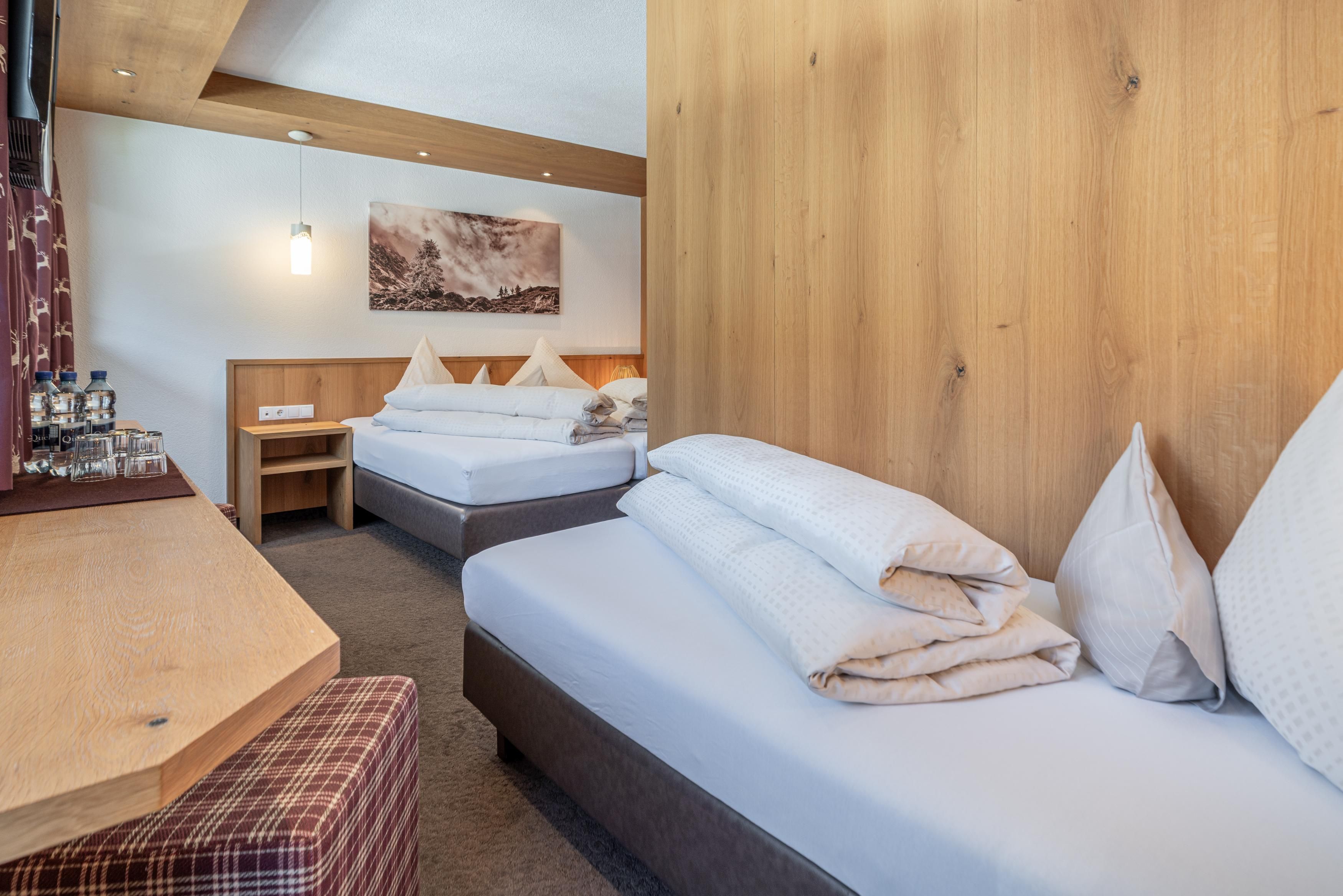 Unsere gemütlich eingerichteten Dreibettzimmer sind perfekt für einen erholsamen Urlaub. Sie verfügen über einen Flat-TV, ein Radio, einen Safe für Ihre Wertsachen bieten Platz für drei Erwachsene oder zwei Erwachsene und ein Kind. Badezimmer mit Dusche/WC und Haartrockner. Auf Wunsch können die Betten auch getrennt werden, um Ihren Aufenthalt nach Ihren Wünschen zu gestalten.