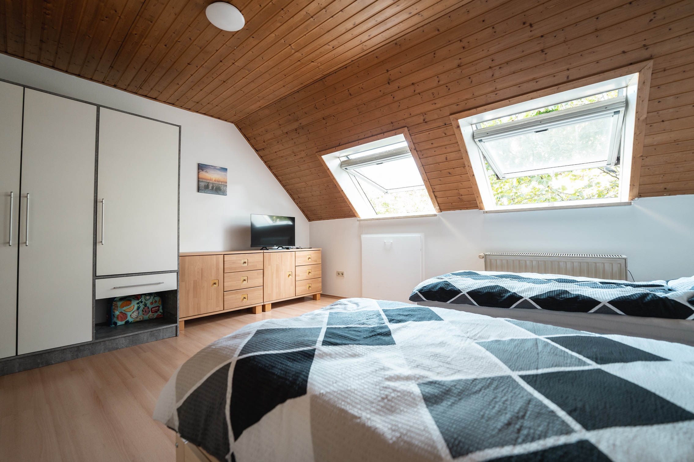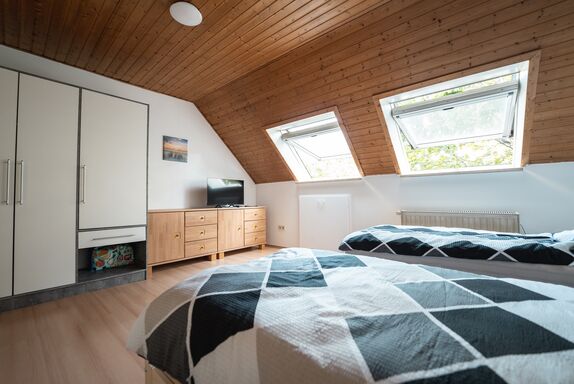 Genießen Sie Ihren Aufenthalt in dieser gemütlichen Dachgeschosswohnung mit einer Fläche von 65 qm. Sie verfügt über zwei gemütliche Schlafzimmer, die jeweils mit zwei Einzelbetten ausgestattet sind, ideal für Familien oder Freunde. Die voll ausgestattete Küche lädt zum gemeinsamen Kochen ein. Das Badezimmer verfügt über Dusche und WC. Perfekt für erholsame Ferien!
