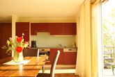 Auf 70m² finden sich eine gemütliche, sehr gut ausgestattete Wohnküche inklusive Geschirrspülmaschine, zwei getrennte Schlafzimmer, zwei Badezimmer und ein separates WC.