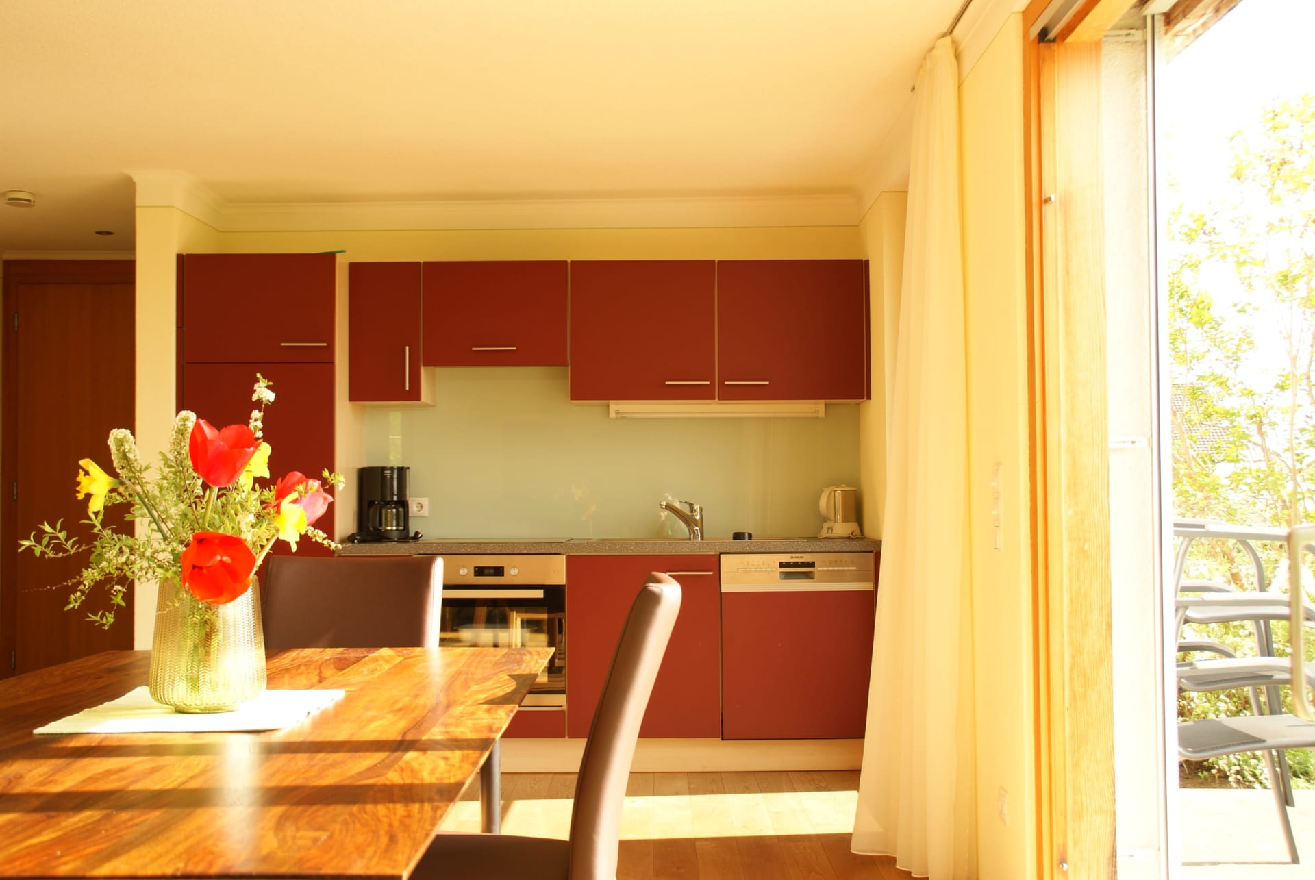 Die ebenerdigen, großen und lichtdurchfluteten Ferienwohnungen, die modern-gemütliche Einrichtung aus Holz, das geschmackvolle Zusammenspiel warmer Farben und die liebevolle Betreuung machen Ihren Urlaub zum Wohlfühlurlaub.