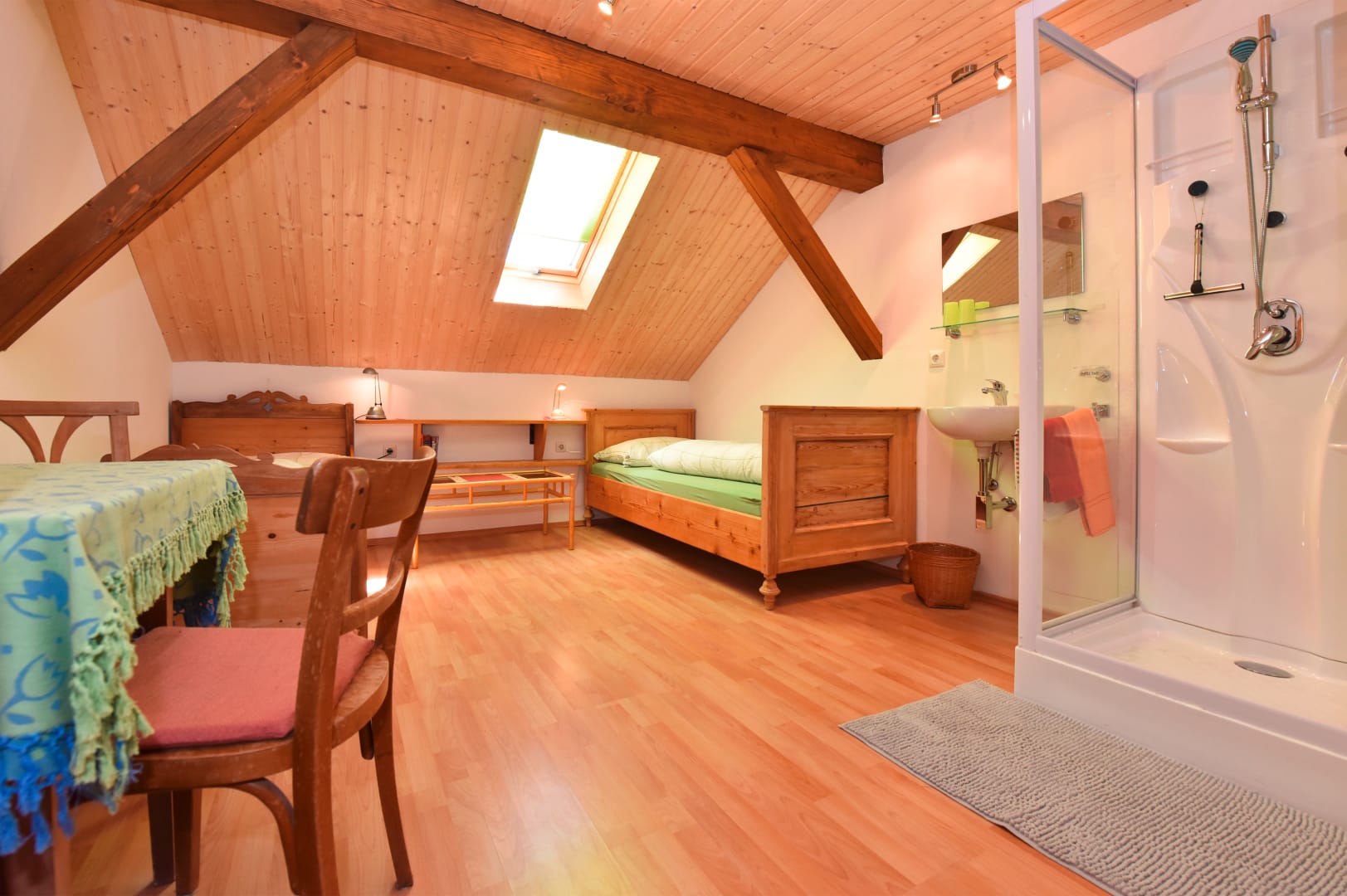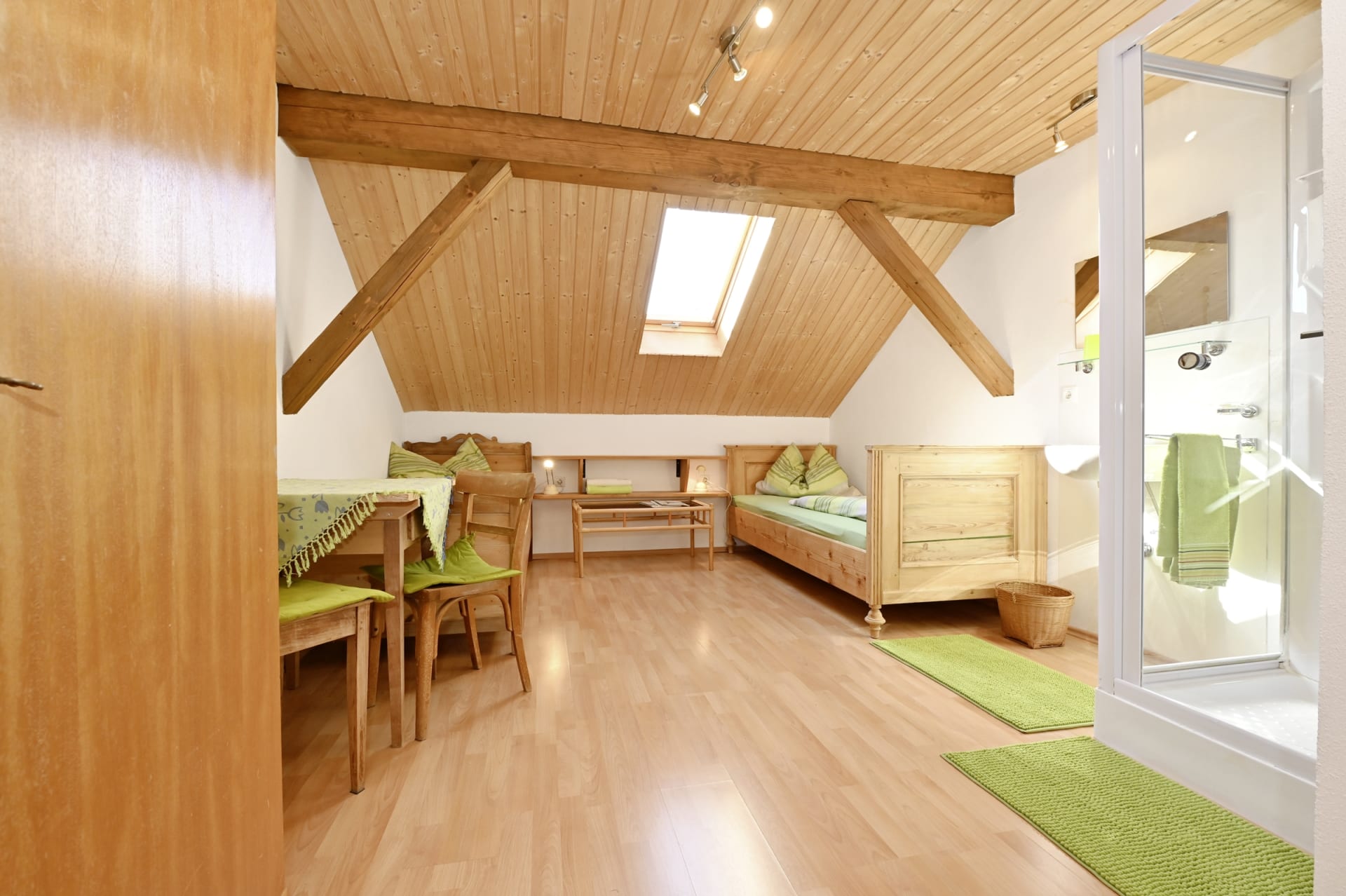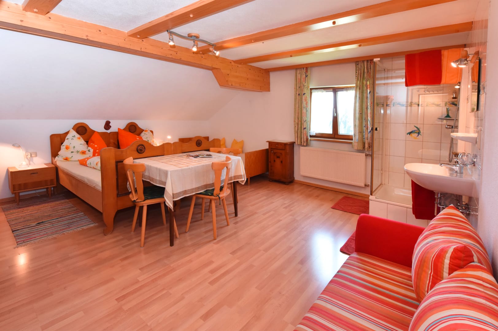 Helle, geräumige, gemütliche und komfortable Wohnung für 4 bis 8 Personen mit komplett ausgestatteter Küche, drei Duschmöglichkeiten und separatem WC im selben Stock. Hand- und Badetücher, Bett- und Küchenwäsche sind vorhanden.