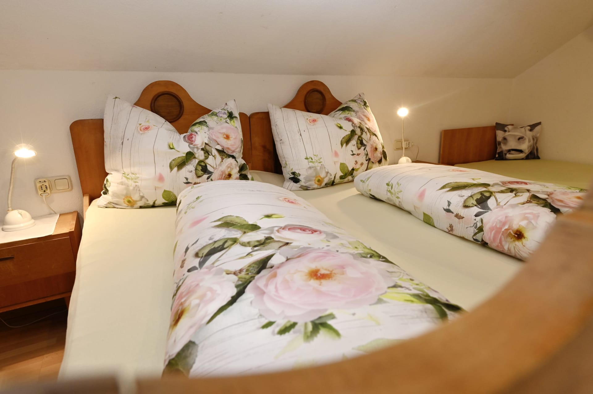 Helle, geräumige 70m² große Ferienwohnung für bis zu fünf Personen. Neu renovierte, komfortabel eingerichtete Küche inkl. Geschirrspüler, zwei Schlafzimmern mit jeweils einer Dusche und einem WC, zusätzlich noch ein separates WC im selben Stock. Hand- und Duschtücher sowie Bett- und Küchenwäsche sind vorhanden.