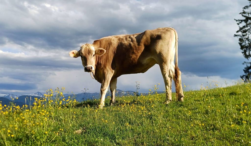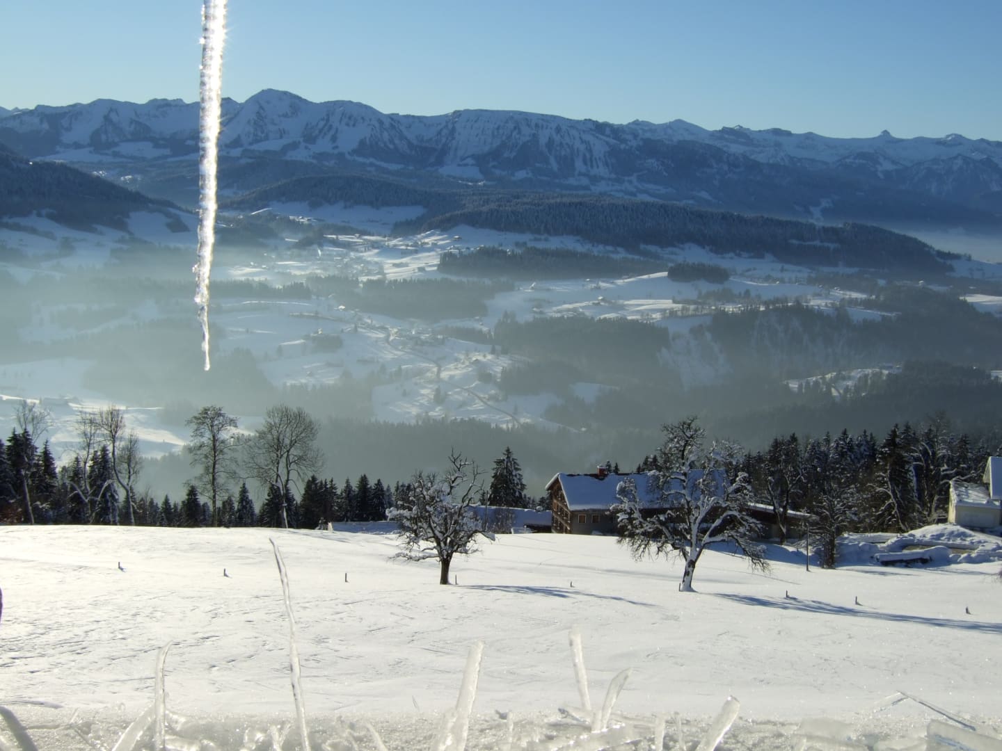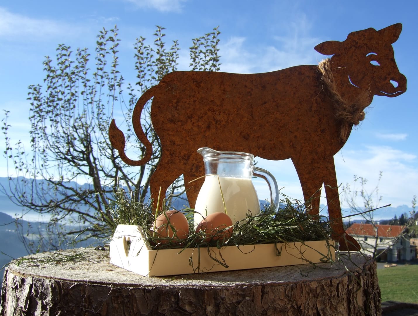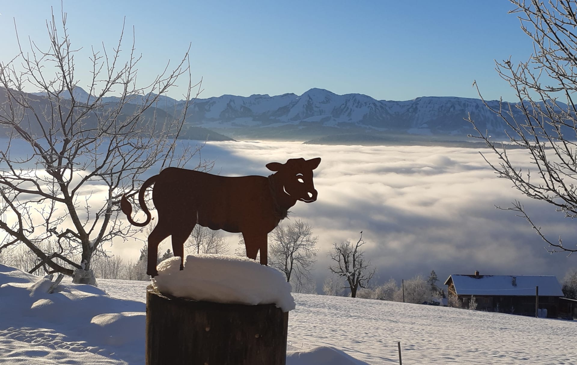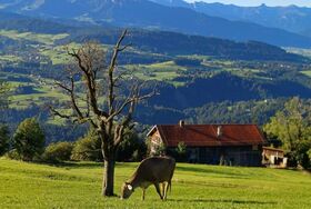 Unser Hof liegt auf 1.000 m Höhe, nur 5 Gehminuten vom Ort Sulzberg entfernt, auf der sonnigen Südseite.