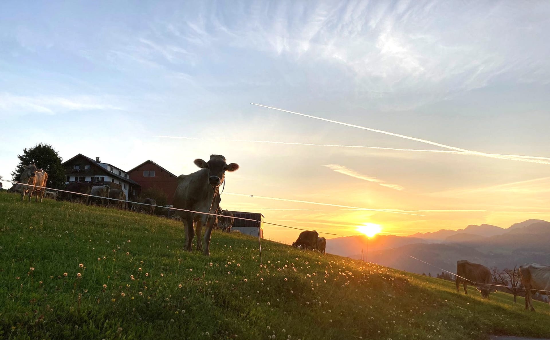 Unser Hof liegt auf 1.000 m Höhe, nur 5 Gehminuten vom Ort Sulzberg entfernt, auf der sonnigen Südseite.
