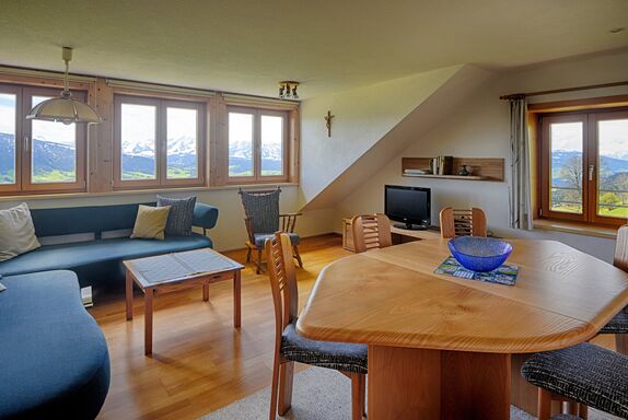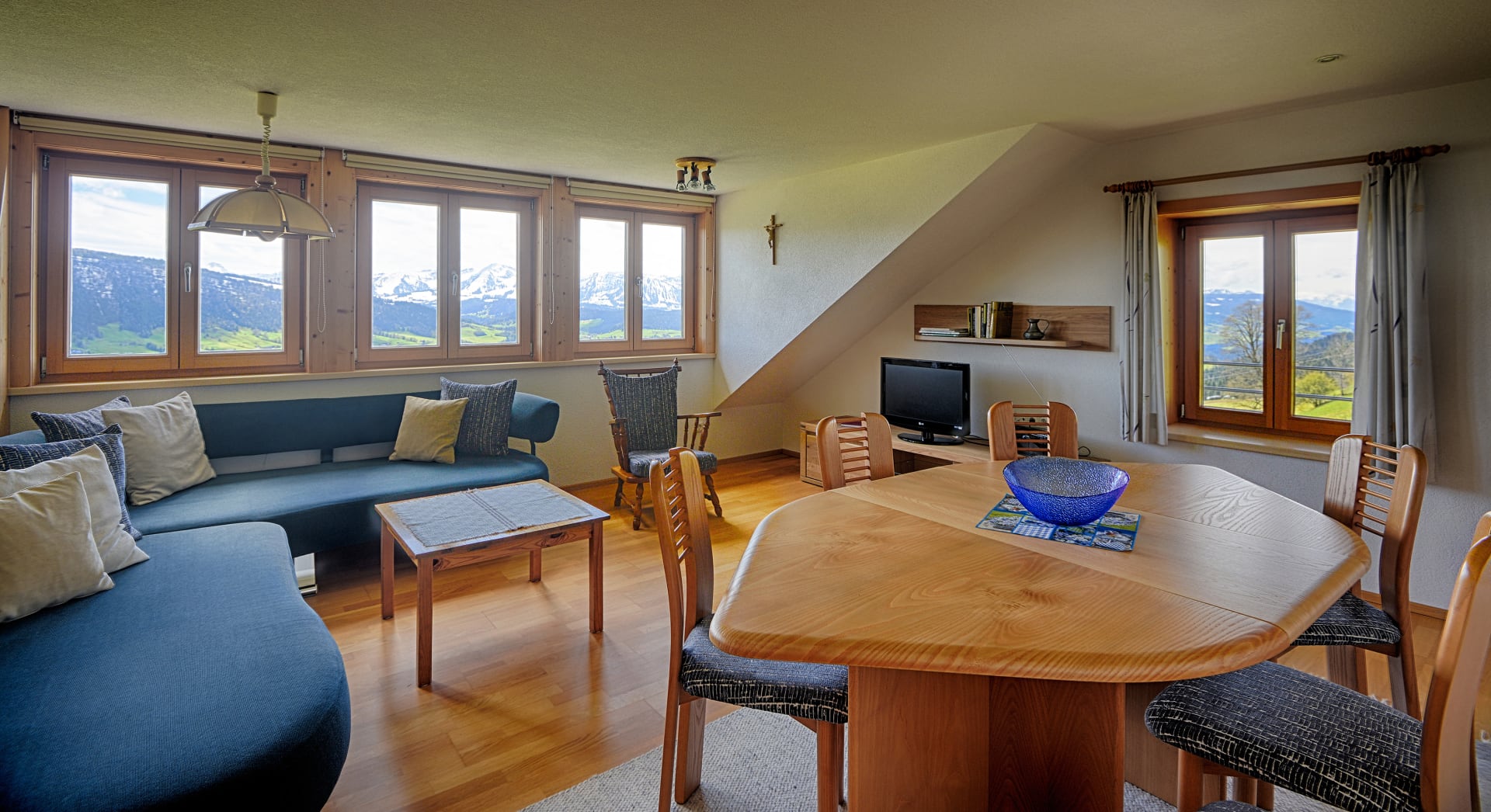 Eine geräumige Ferienwohnung mit drei getrennten Schlafzimmern und einem einzigartigen Panoramablick. Eine bequeme Sitzecke, Kabel-TV, Spielsachen und ein Freizeitraum mit einem Tischtennistisch sorgen für Gemütlichkeit und Unterhaltung.