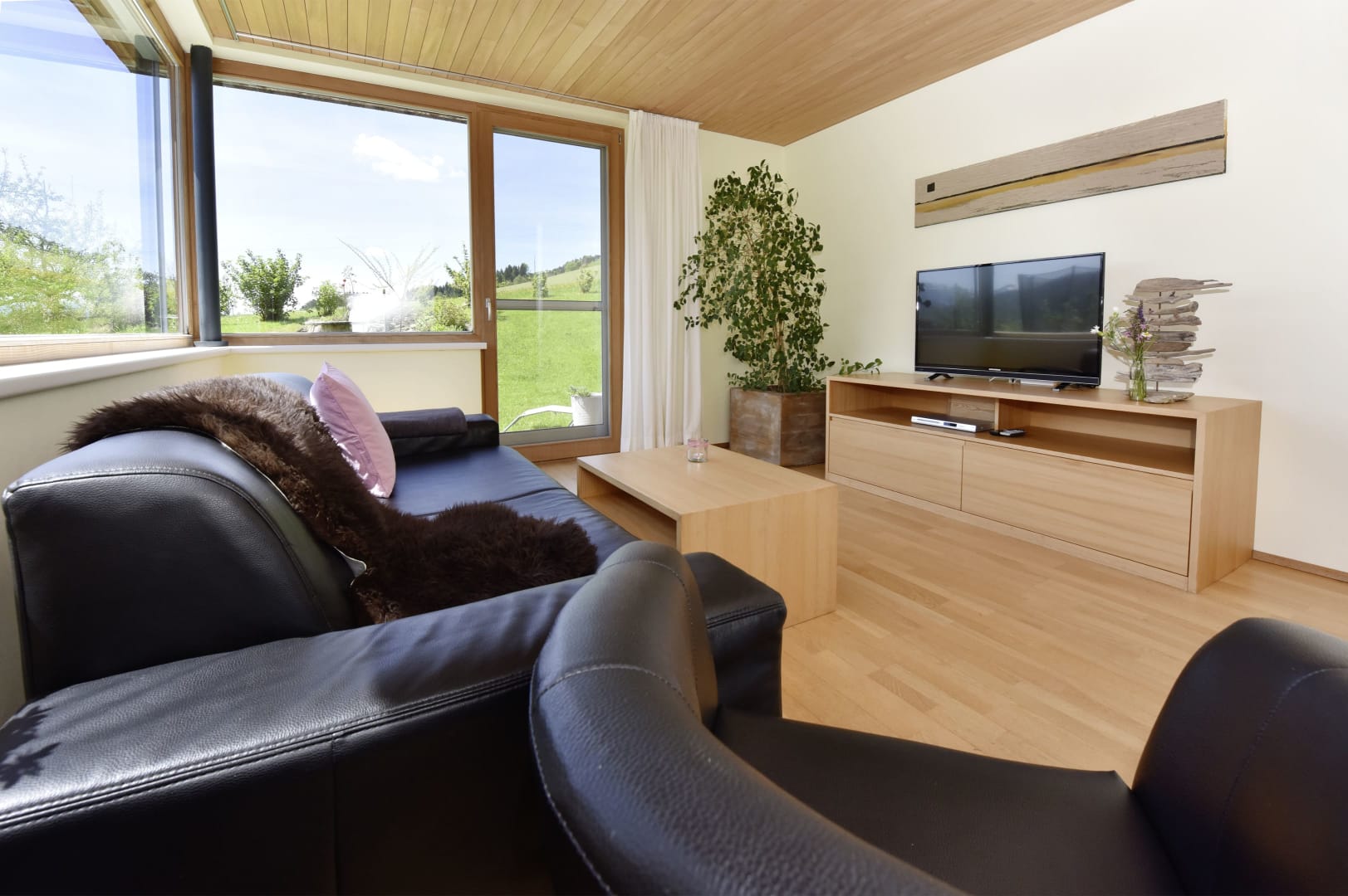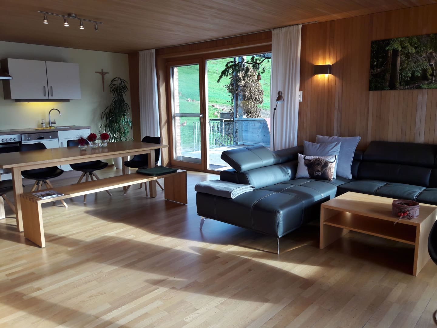 Zwei großzügige, sonnendurchflutete, modern und mit viel Holz eingerichtete Ferienwohnungen mit herrlichem Panoramablick warten darauf, von Ihnen belebt zu werden.