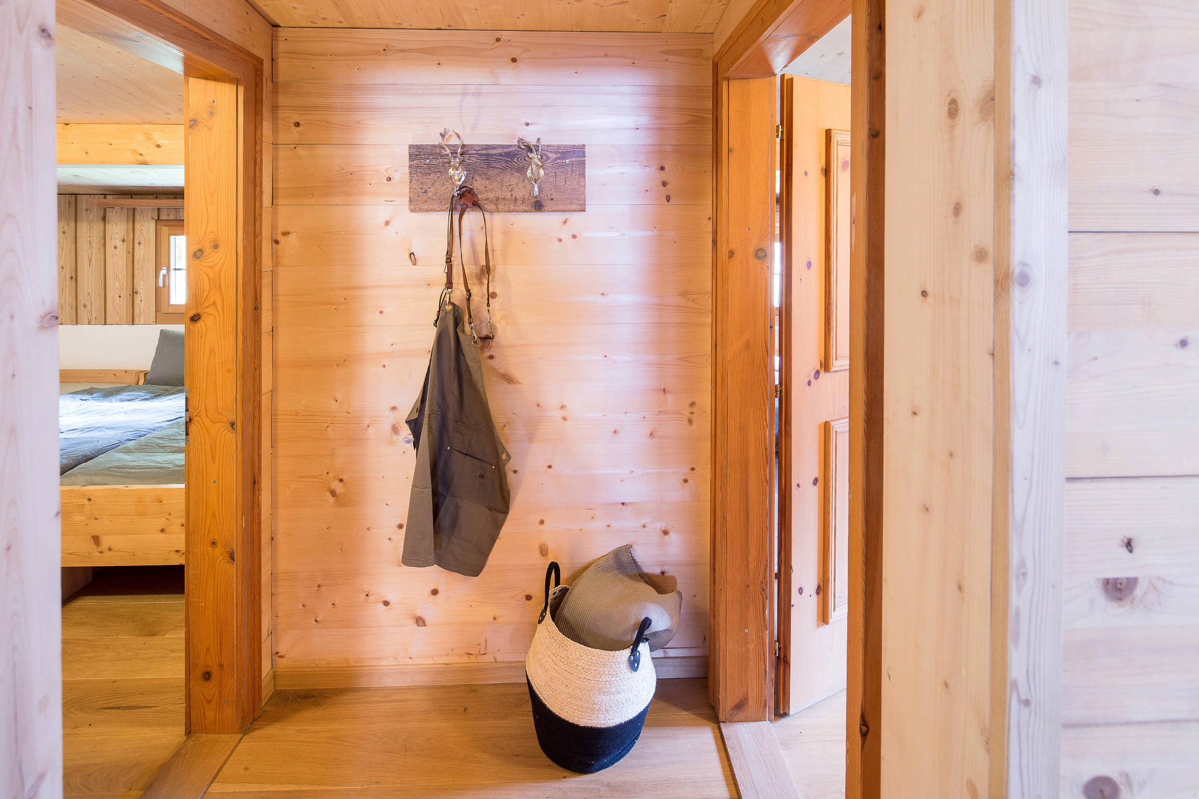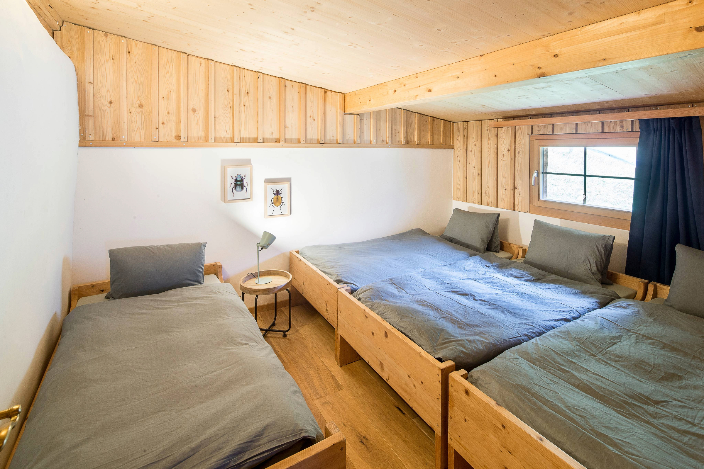 Das Maiensäss Pundelon befindet sich inmitten der imposanten Bergwelt des Valle Mesolcina und ist ideales Basislager für Naturliebhaber. Hier findest du Natur pur. Von Wiesen und Wäldern umgeben, bietet dir das Maiensäss Alleinlage und Ruhe. Das Maiensäss bietet, auf einer Etage Platz für bis zu 6 Gäste. Draussen erwartet dich eine Terrasse sowie verschiedene Wiesen um das Haus. Das gesamte Grundstück ist eingezäunt - allerdings nicht hundesicher. Hunde sind herzlich willkommen. Sauberes Hinterlassen von Haus und Umgebung wird vorausgesetzt. Du befindest dich in der freien Natur, wenn dein Hund nicht im eingezäunten Bereich verbleibt musst du sicherstellen, dass dein Hund keine Bedrohung für Menschen oder andere Tiere darstellt. Die Umgebung bietet zahlreiche Aktivitäten wie Wandern, Biken und Ausflüge ins Tessin oder Richtung San Bernardino. Entdecken Sie die nahegelegenen Grotti und die Bademöglichkeiten entlang des Flusses Moesa. Im etwa 15 Autominuten entfernten Mesocco finden Sie verschiedene Restaurants und einen Lebensmittelladen. Die Unterkunft ist mit einem geländegängigen Auto bis oberhalb des Hauses erreichbar, von dort aus sind es etwa 300 Meter und 50 Höhenmeter zu Fuss. Gutes Schuhwerk und geeignete (tragbare) Gepäckstücke sind zwingend nötig.Schlafzimmmer