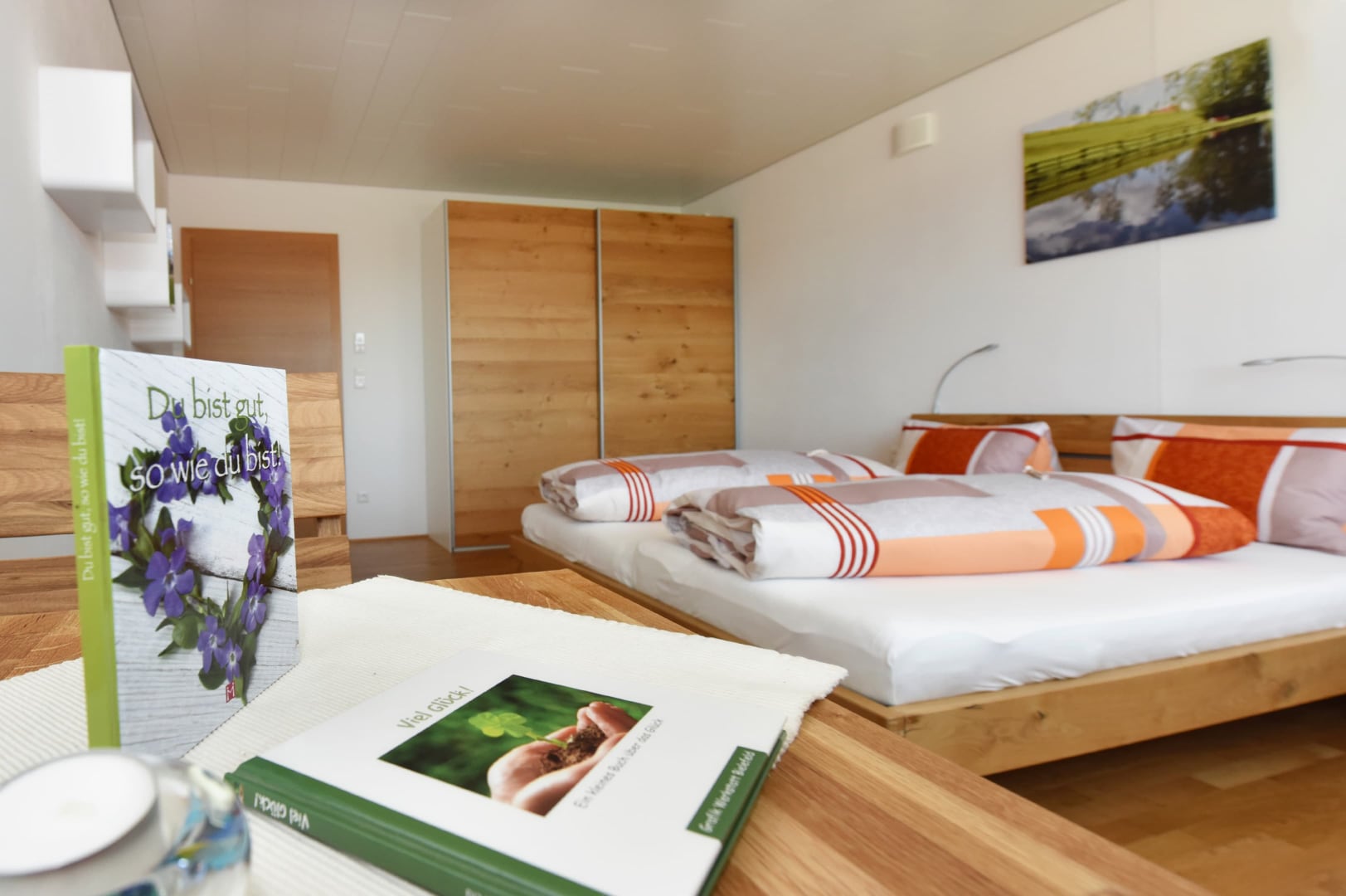 Die Betten sind bezogen und Hand- wie Badetücher hängen im Badezimmer für Sie bereit.