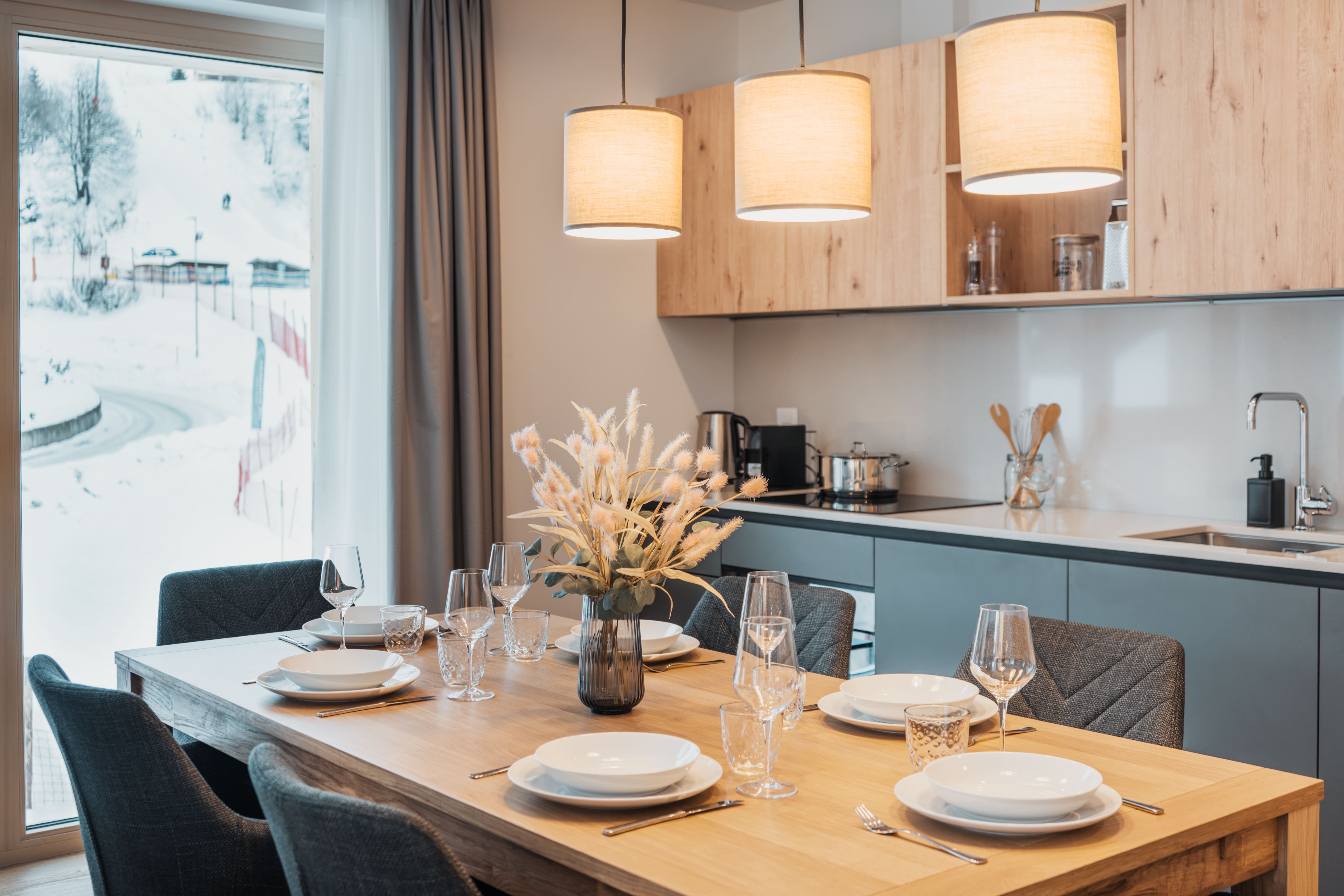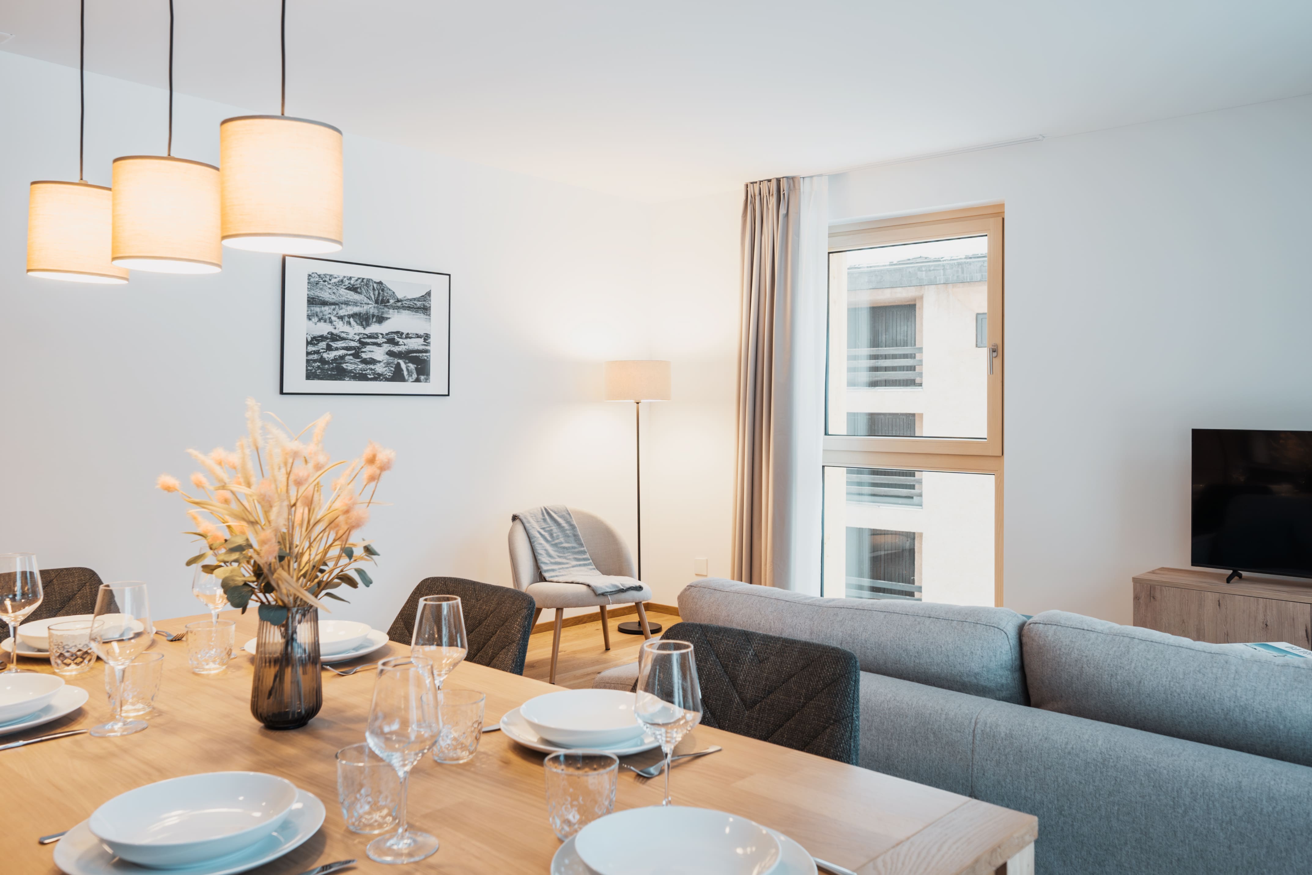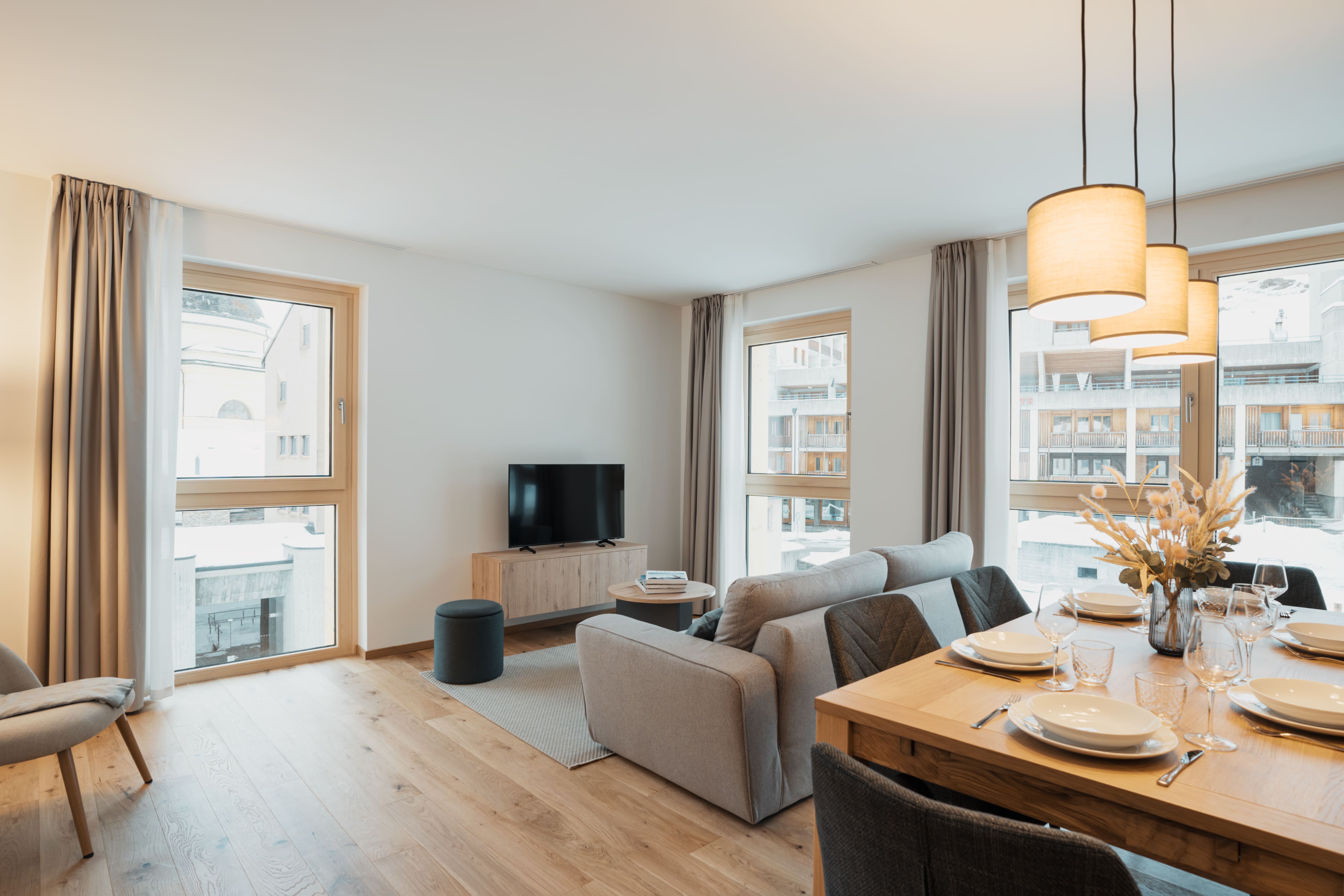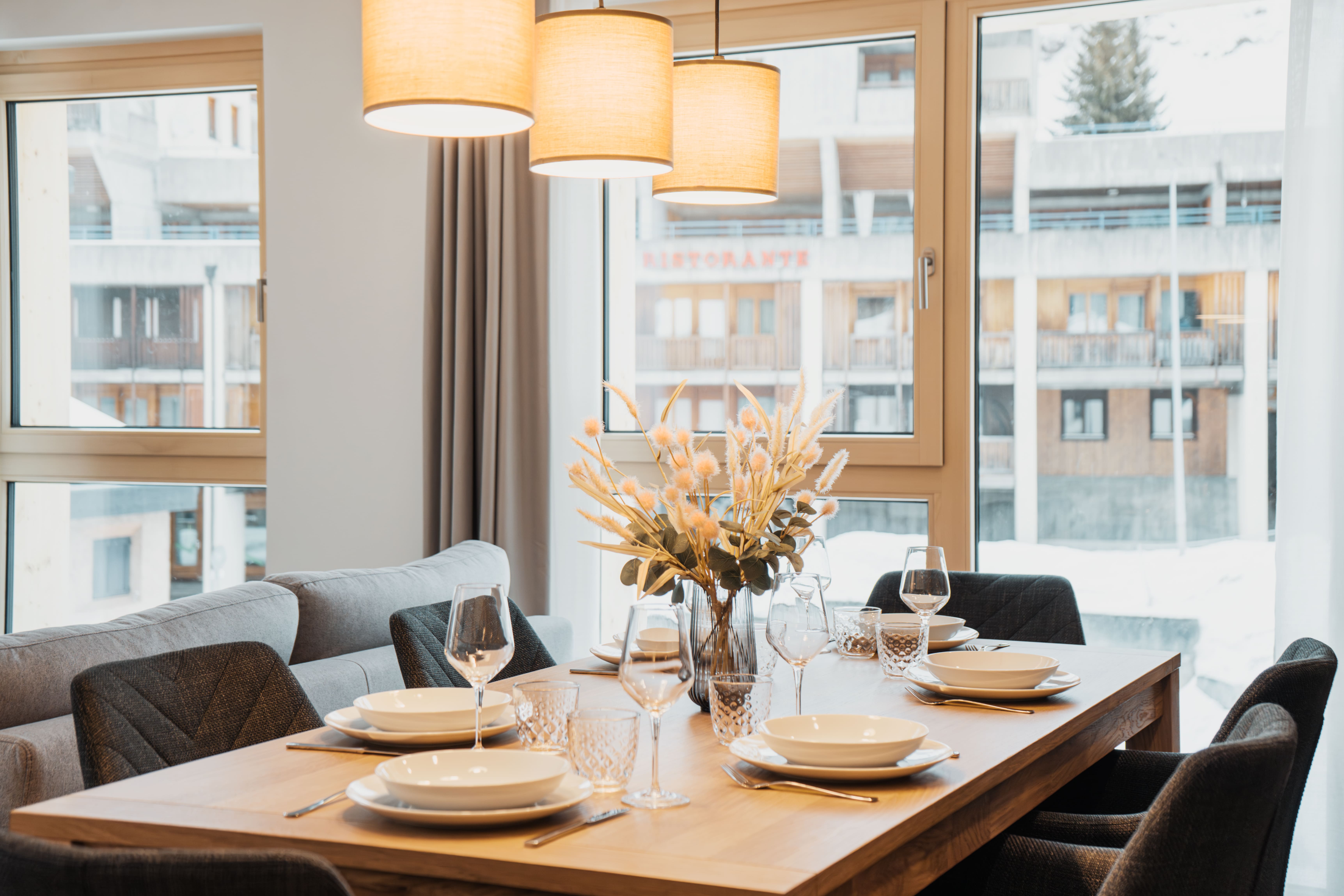 Larix verfügt über 12 beeindruckende Wohnungen und bietet seinen Bewohnern außerdem ein Ski- und Mountainbike-Depot.