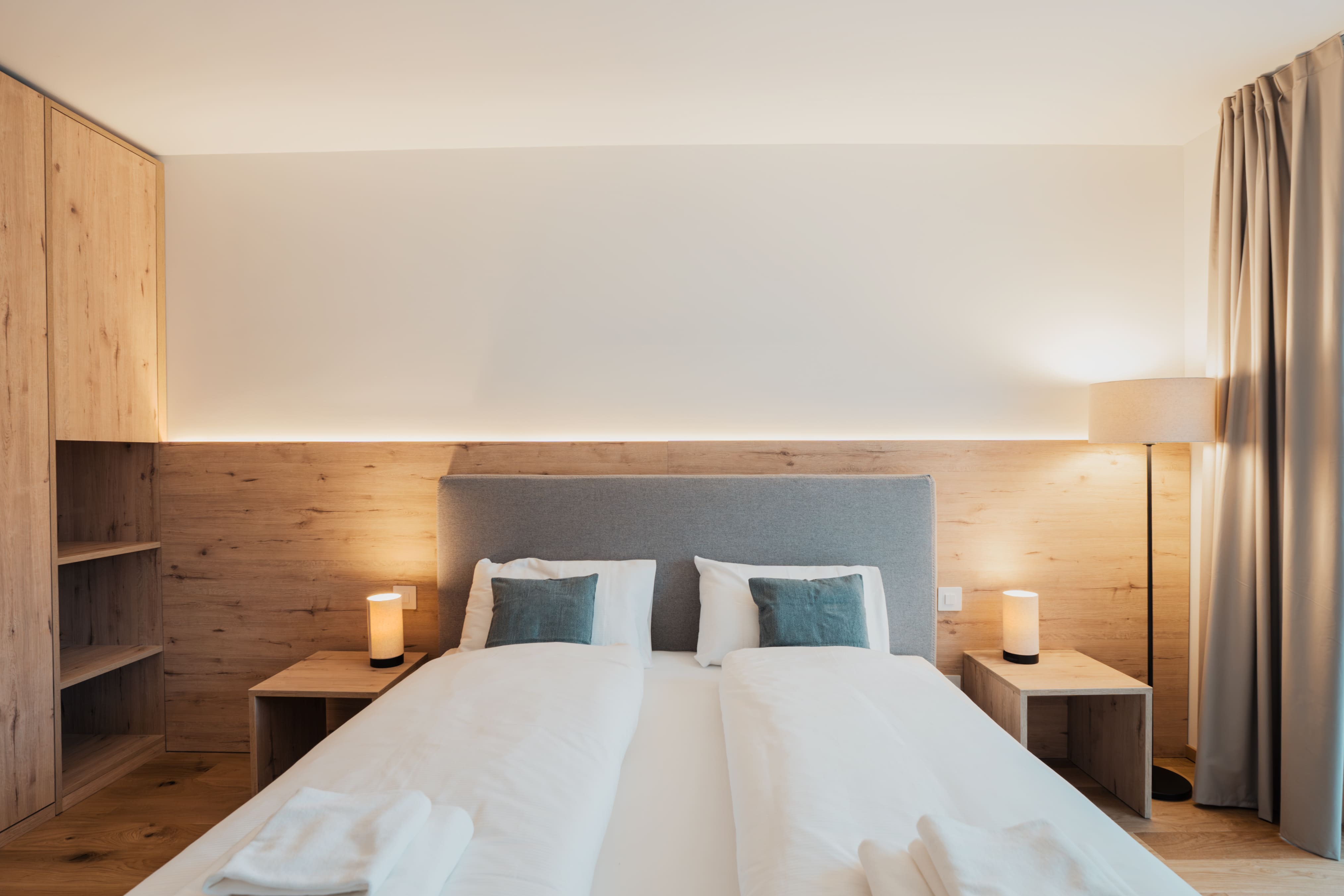 Die San Bernardino Alpine Apartments umfassen insgesamt 55 fein eingerichtete Wohnungen in drei exklusiven Residenzen, Castanea, Larix und Tilia, in denen das Konzept des alpinen Lebens neu interpretiert und mit Leidenschaft in einer wunderschönen Berglandschaft in der grünen Gegend von Pian Cales zelebriert wird. Die Wohnungen bieten zahlreiche Dienstleistungen, einem einzigartigen Concierge-Service, Ski- und Mountainbike-Abstellraum.