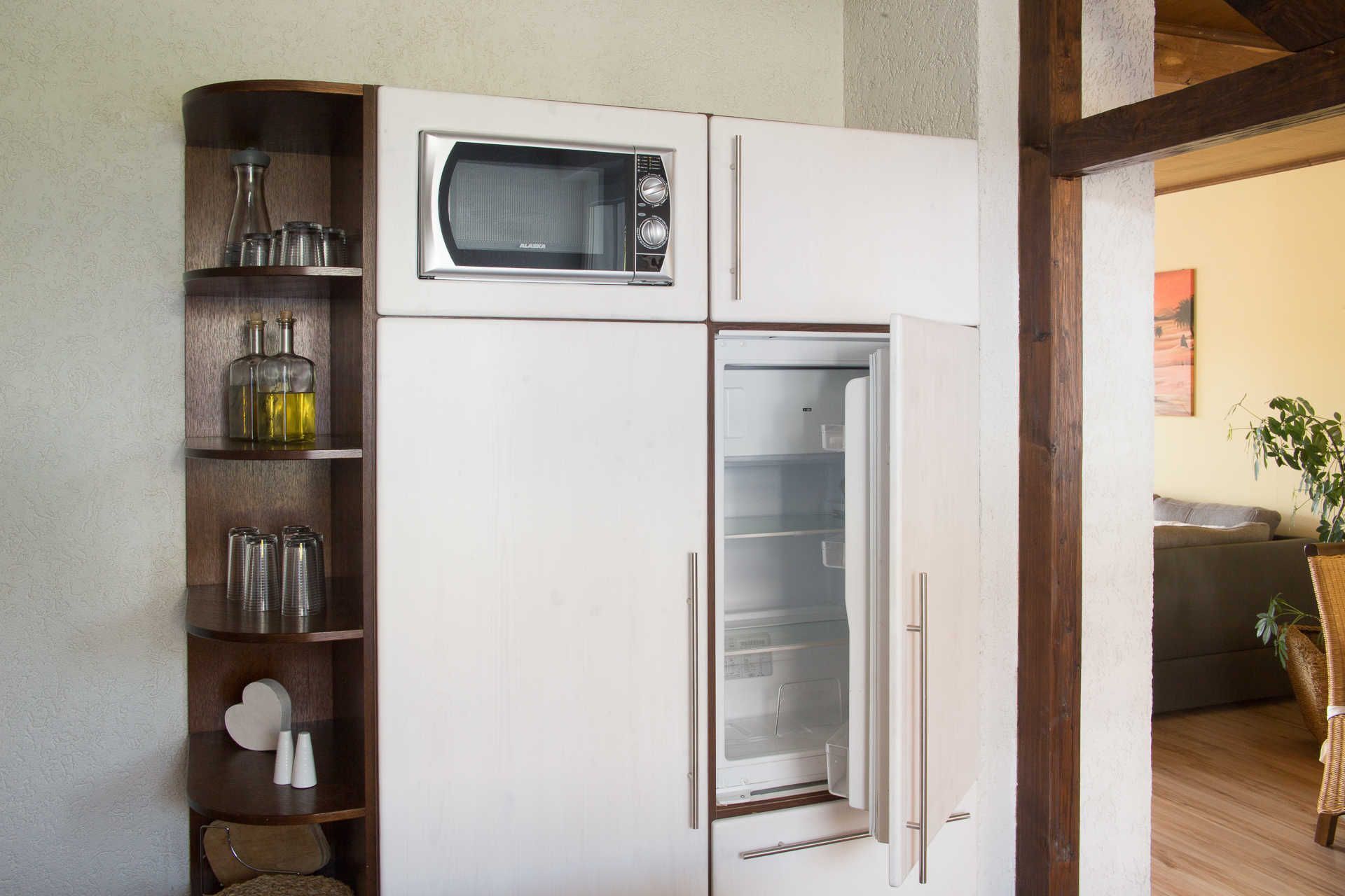 Die Küche (mit kleinem Balkon ) ist perfekt ausgestattet: Vom Backofen, Geschirrspüler, bis hin zum Wasserkocher, Toaster und Mikrowelle bietet die Küche Selbstversorgern jeden Komfort.
