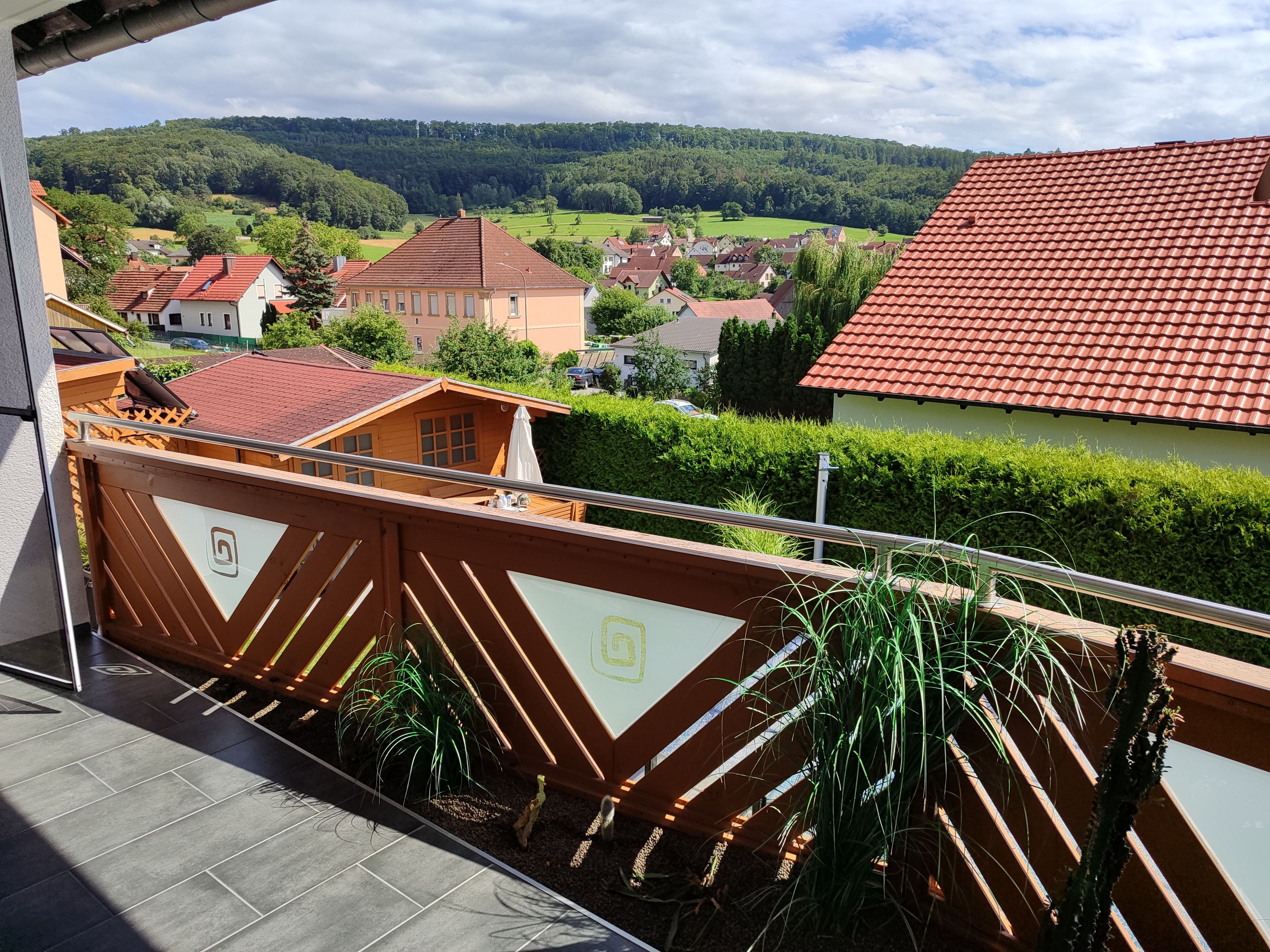Herzlich Willkommen in unserer Ferienwohnung in sonniger Hanglage. Es erwartet Sie eine großzügige und liebevoll gestaltete Unterkunft mit 123 qm. Schon das Bad (mit Walk-in- Dusche und freistehender Badewanne) garantiert einen guten Start in den Tag. Weiterhin verfügt die Wohnung über zwei getrennte Schlafzimmer, ein sep. WC, ein großes, offenes Wohnzimmer mit Essecke im toskanischen Stil, Einbauküche, sowie einen Abstellraum.