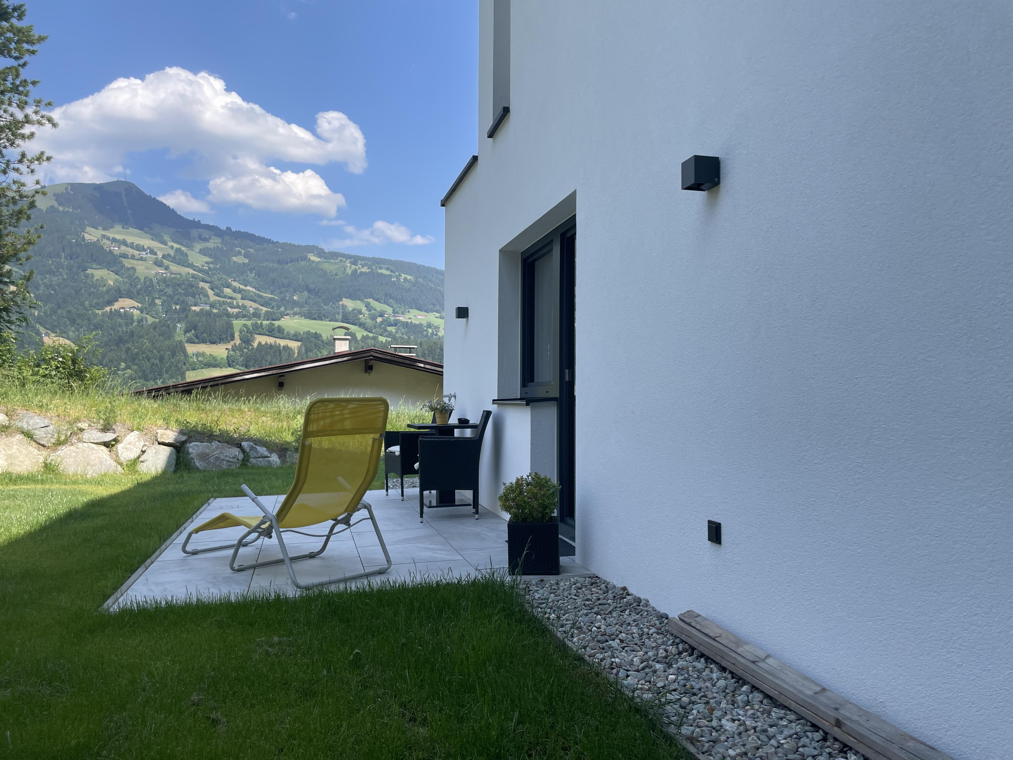Unser gemütliches Appartement verfügt über einen großen Garten und einen traumhaften Ausblick auf die Hohe Salve und die umliegende Bergwelt. Die ca. 50m² große Ferienwohnung verfügt über ein Schlafzimmer mit TV, einen Wohnbereich in welchem sich eine komplett ausgestattete Küche, eine Sitzgelegenheit sowie ein ausziehbares Sofa (Liegefläche 140x200) befindet, ein Bad mit Regendusche, einen kleinen Abstell- bzw. Schrankraum und einem separatem WC. Unmittelbar an den Wohnbereich grenzt eine großzügige Terrasse mit traumhafter Aussicht auf die SkiWelt Wilder Kaiser - Brixental. Es können bis zu vier Personen bei uns übernachten. Unser Appartement ist ein Nichtraucherappartement. Des Weiteren steht Ihnen ein kostenloser Parkplatz zur Verfügung.