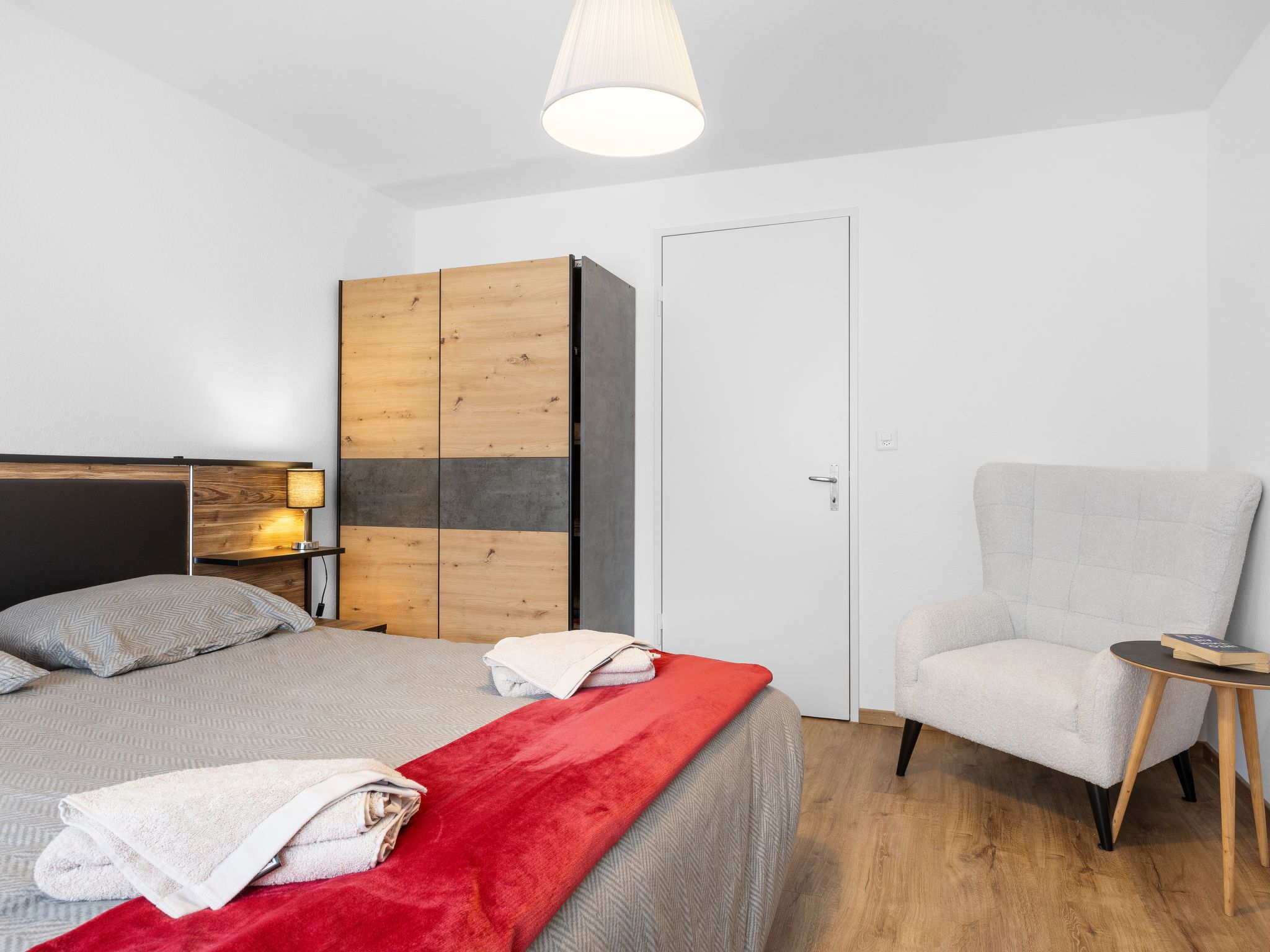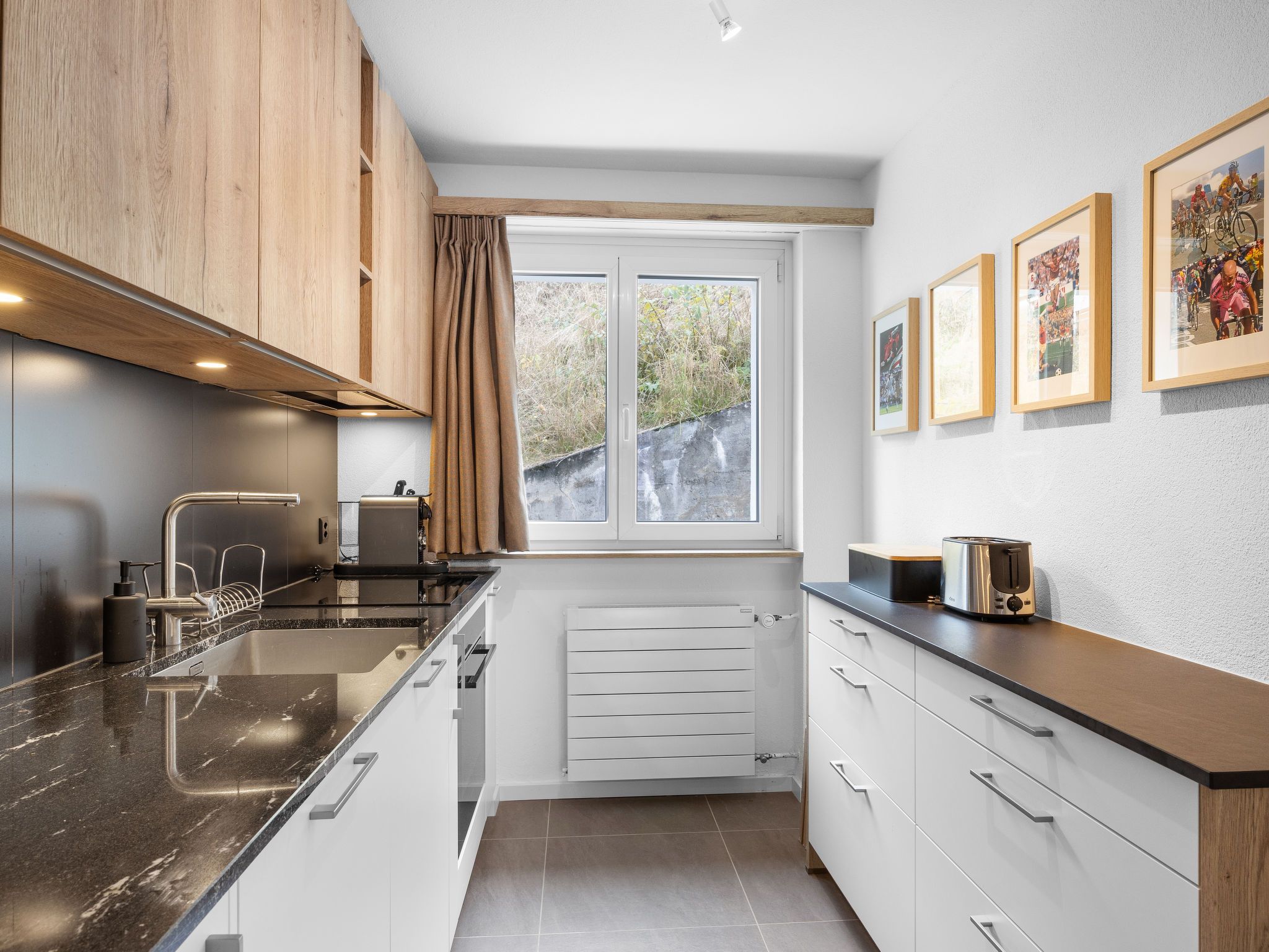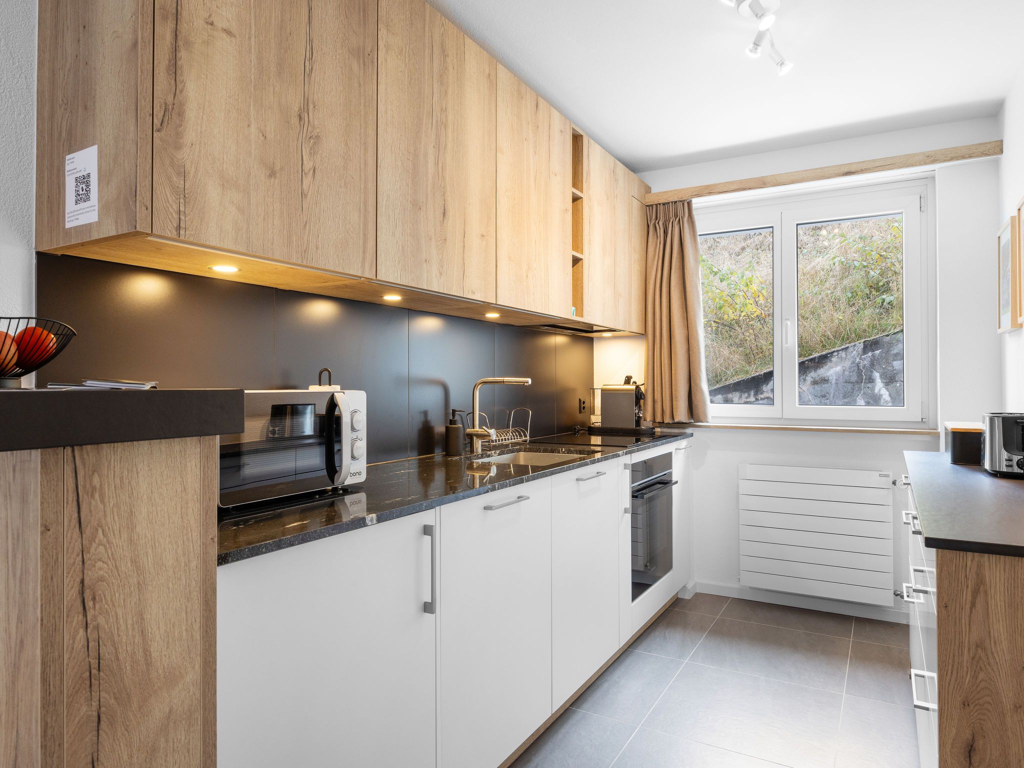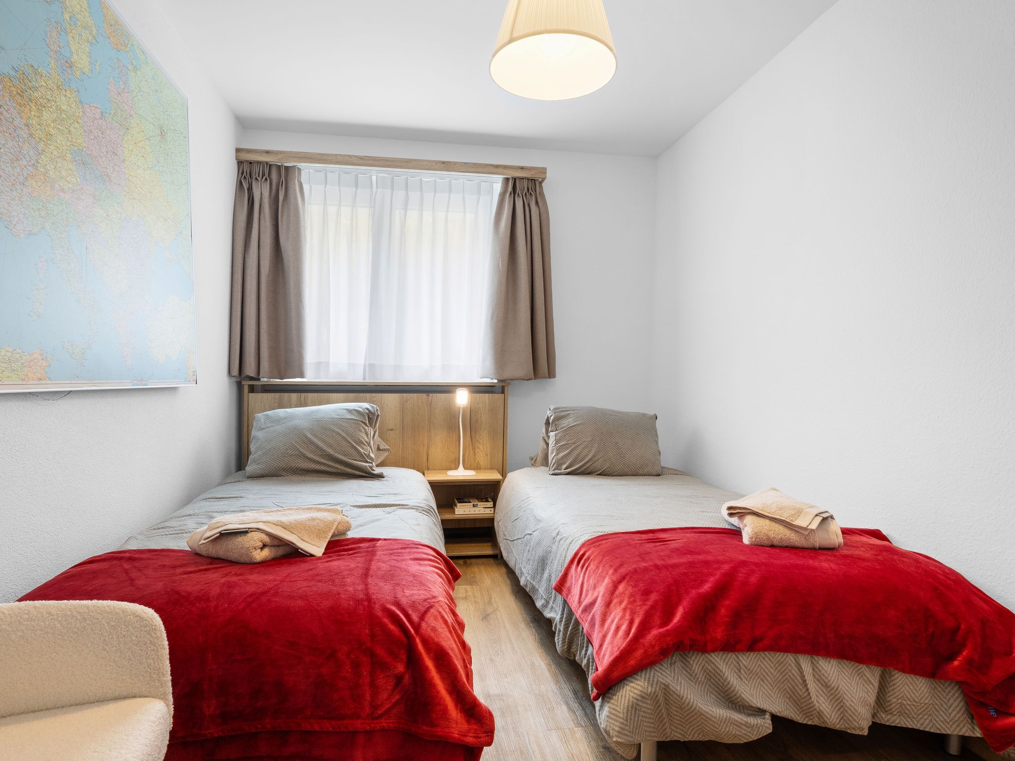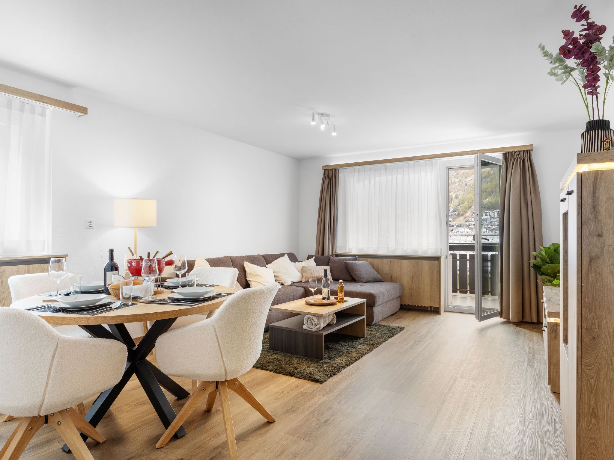 3-Zimmer-Wohnung 72 m2 im 1. Stock, Südlage. Hell, schön und gemütlich eingerichtet: Wohnzimmer mit Kabel-TV. Ausgang zum Balkon, Richtung Süden. 1 Zimmer mit 2 Betten (90 cm, Länge 200 cm). 1 Zimmer mit 1 Doppelbett (1 x 160 cm, Länge 200 cm). Küche (Backofen, Geschirrspüler, 4 Glaskeramikplatten, Toaster, Wasserkocher, Mikrowelle, Tiefkühler, elektrische Kaffeemaschine). Dusche/WC. Heizung. Balkon, Südlage. Balkonmöbel. Schöne Sicht auf das Matterhorn. Zur Verfügung: Internet (Wireless LAN, gratis). Bitte beachten: Nichtraucher-Unterkunft.