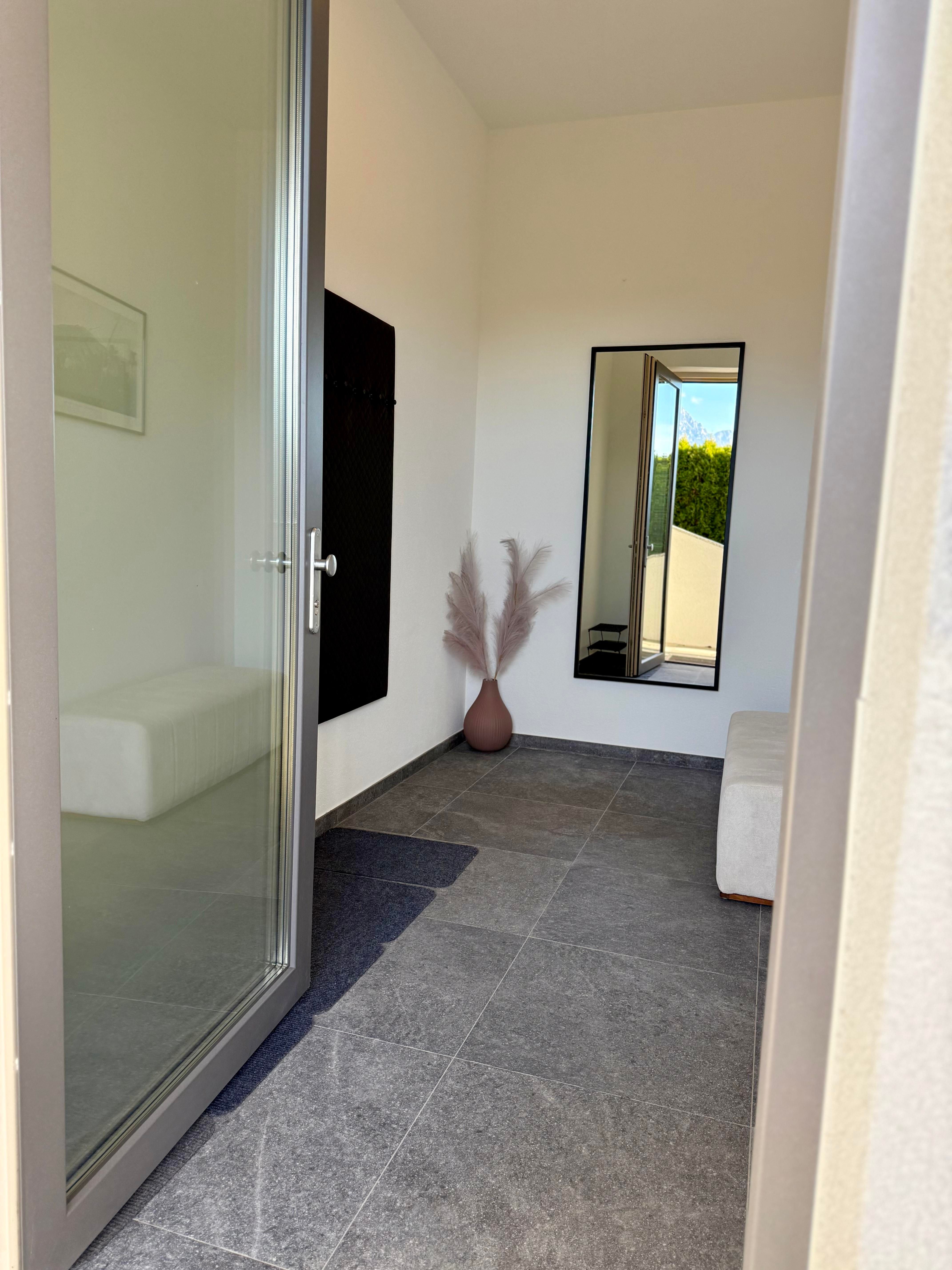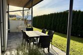 2 Schlafzimmer, 2 Bäder mit Dusche und WC, Wohnzimmer mit Schlafcouch, Wohnküche, Vorraum (Garderobe), Abstellraum, Terrasse, Garten, Carport für 2 Auto + Parkplatz