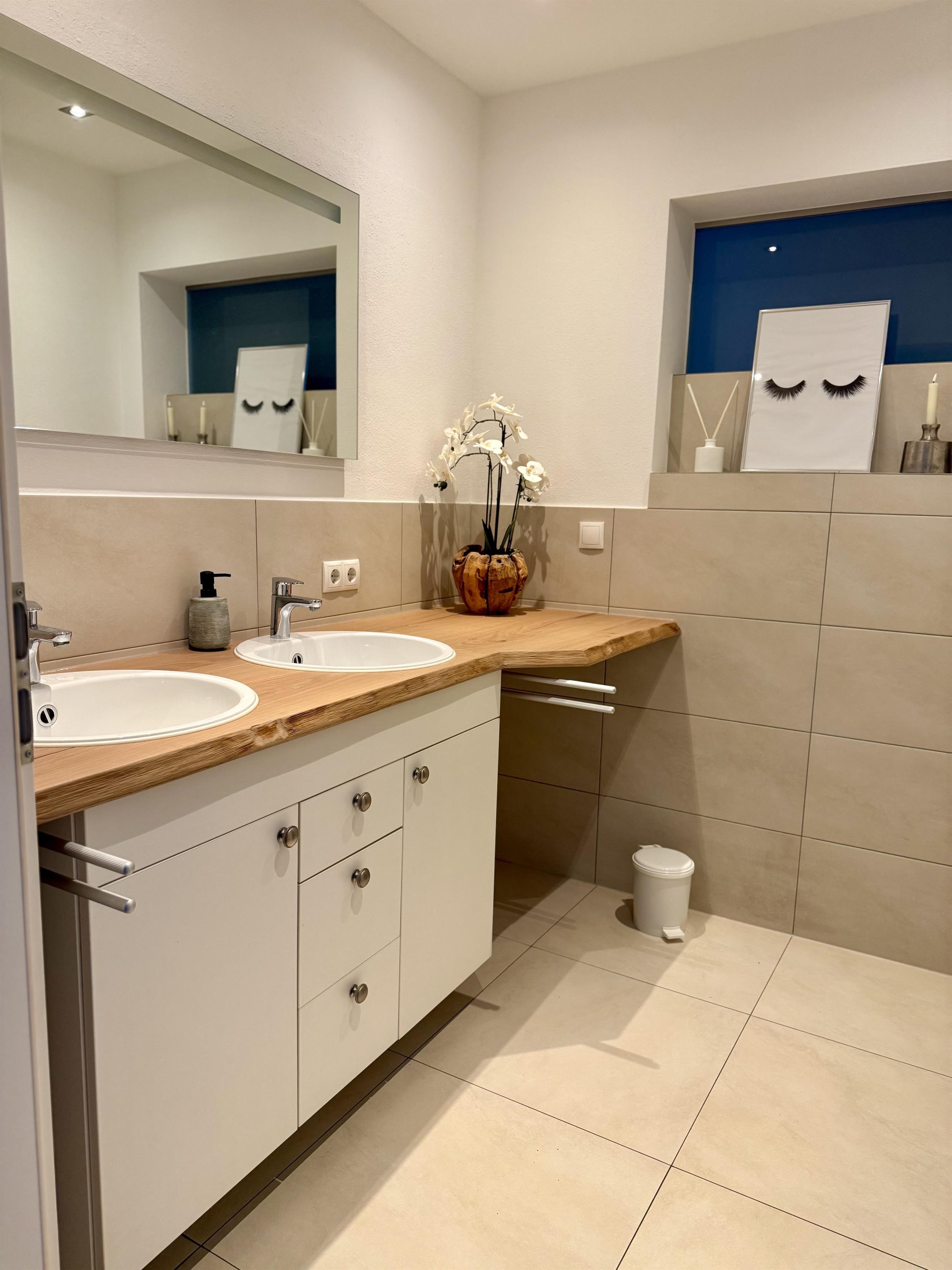 Die Wohnung bietet zwei komfortable Schlafzimmer, zwei Bäder und eine großzügige, voll ausgestattete Wohnküche.