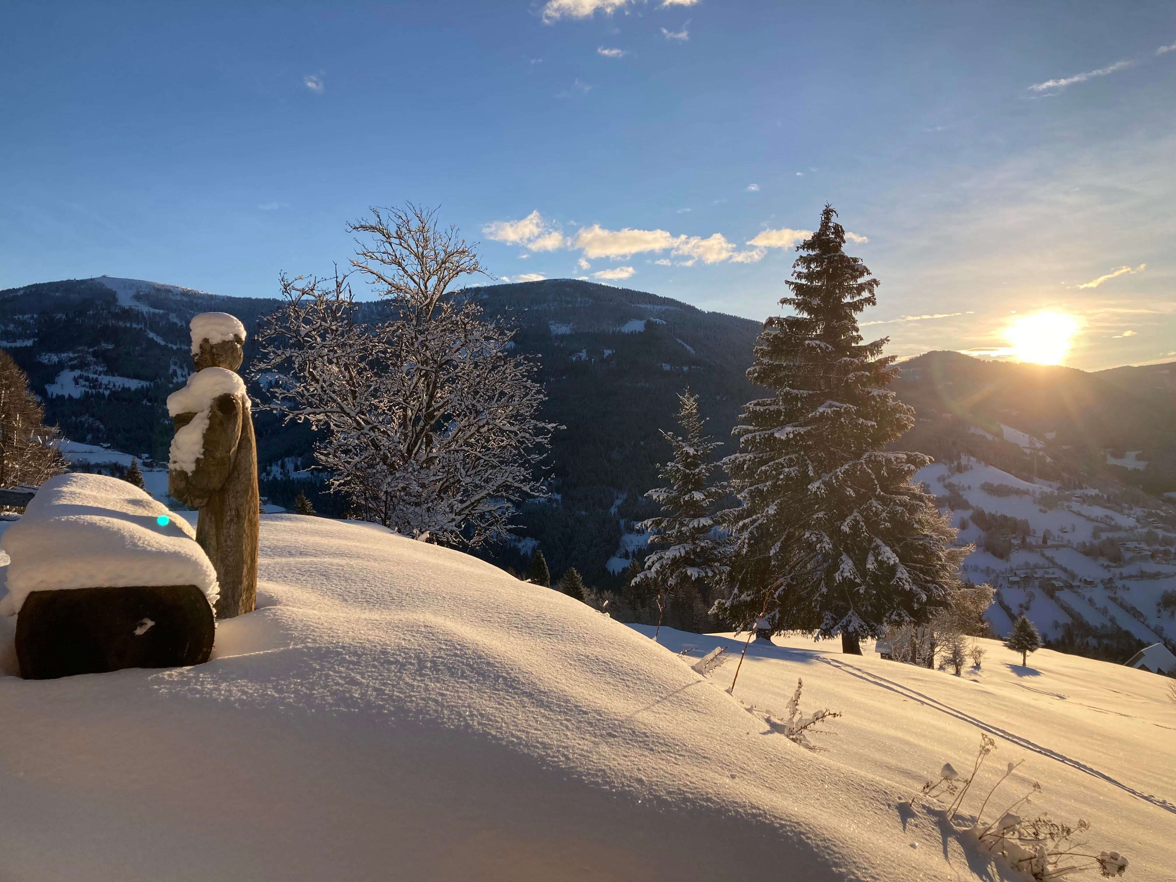 Eingebettet in sanfte verschneite Almhänge am Laufenberg oberhalb des Ortes Radenthein ist dieses Appartement der perfekte Ort zum Ausspannen, Entschleunigen und auch eine romantische Rückzugsoase zu zweit.