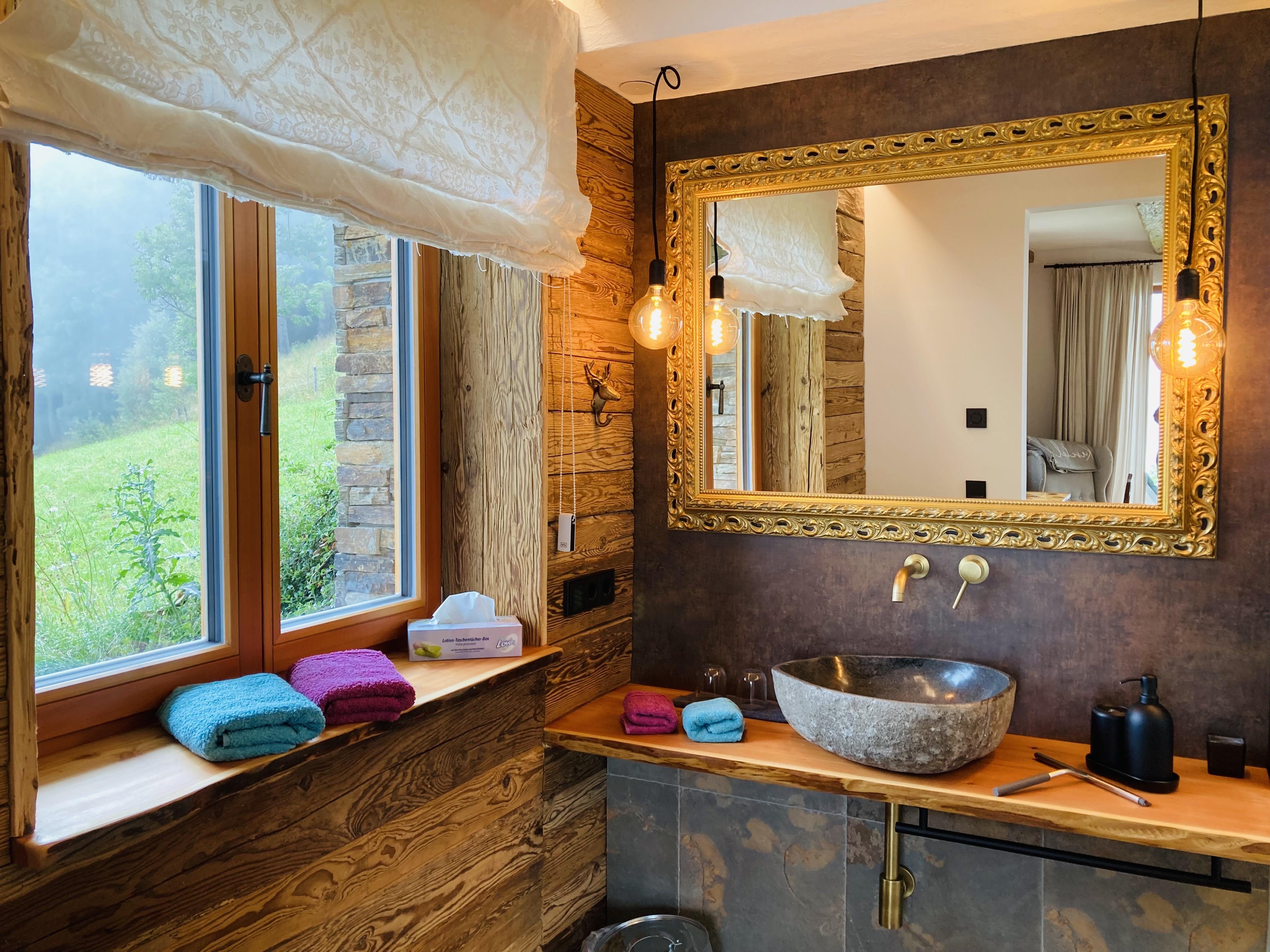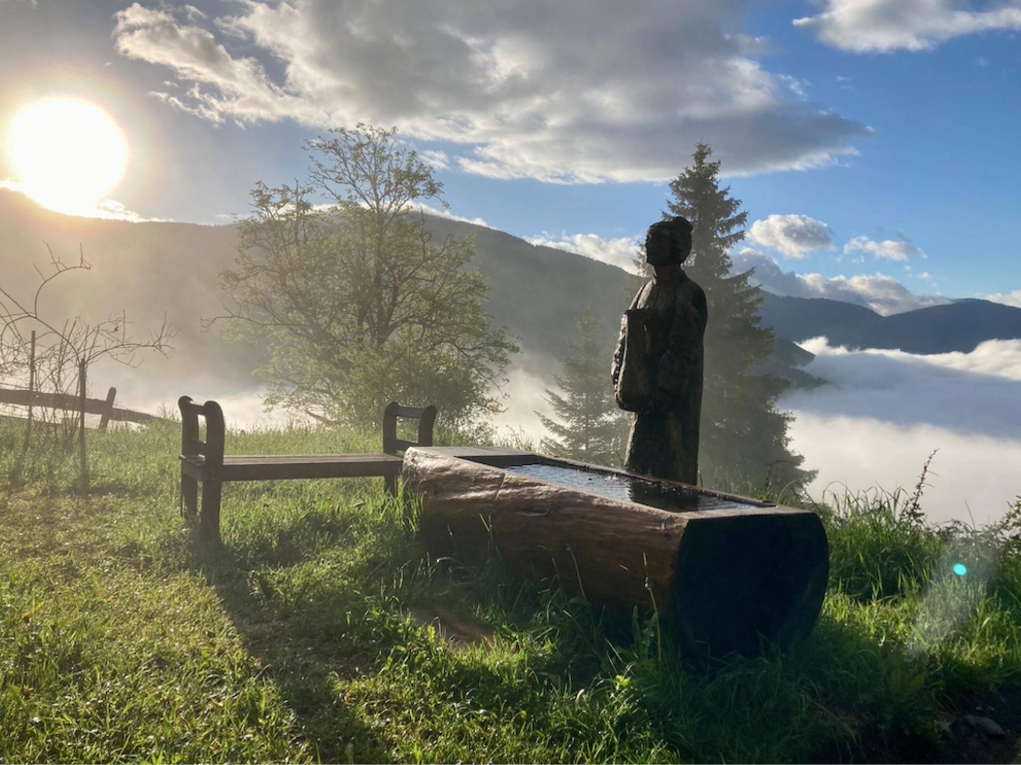 Sonnenverwöhnt, ladet die weitläufige, nach Lärchenholz duftende 24m2 Terrasse zum Chillen und Grillen ein. Der selbst geschnitzte Holz-Brunnen, mit erstklassiger Trinkwasserqualität aus der eigenen Berg-Quelle ist ein wahrer Jungbrunnen und erfrischende Abkühlung an heißen Sommertagen.