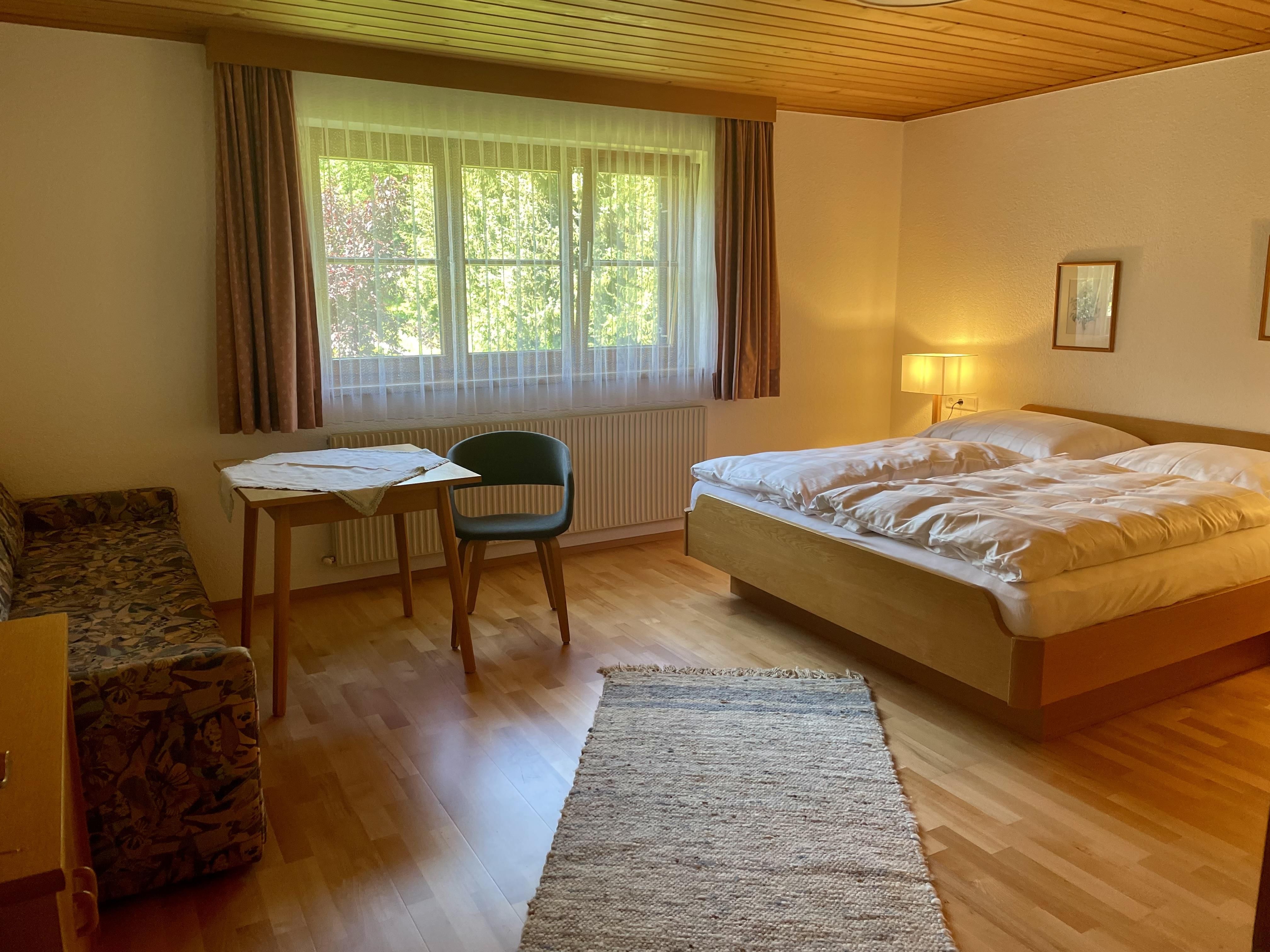 Komfortable Wohnung in einer ruhigen Privatstraße, geräumige Zimmer (2 Schlafzimmer, Wohn-Esszimmer,Küche, Dusche/WC), 2 Balkone, Zentrumsnähe, umgeben von Gärten und Wiesen, freier Blick in die Berge. Bushaltestellen ganz in der Nähe, gratis W-Lan.