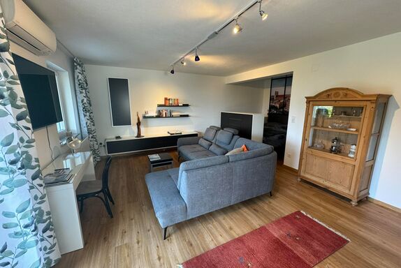 Unser hell und modern eingerichtetes Appartement verfügt über eine großzügige Panoramaterrasse mit einem atemberaubenden Blick über das untere Drautal. Es bietet einen Vorraum sowie eine gut ausgestattete Küche mit direktem Durchgang zum Wohn- und Schlafraum, um Ihnen einen komfortablen Aufenthalt zu ermöglichen.