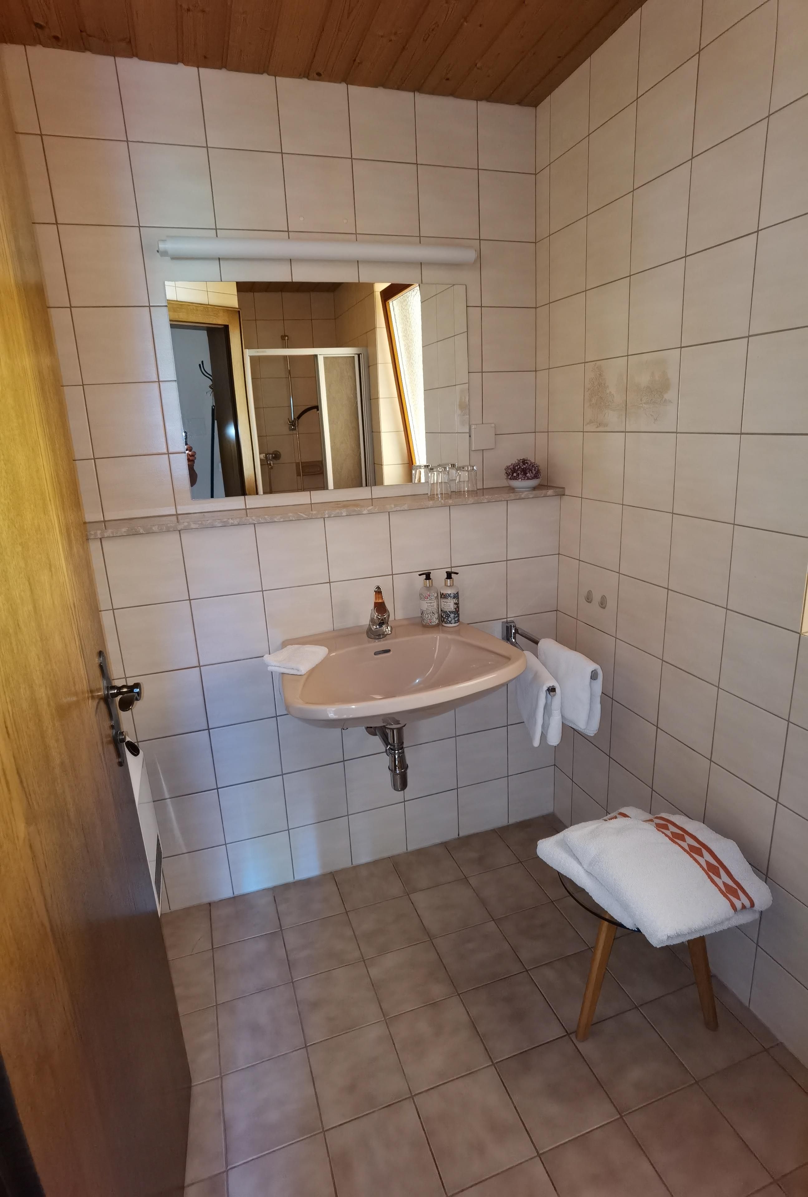 Das Schlafzimmer verfügt über ein komfortables Doppelbett, das für eine erholsame Nachtruhe sorgt. Das Badezimmer verfügt über eine Dusche, während das WC separat gehalten ist. Ein Föhn ist ebenfalls vorhanden.