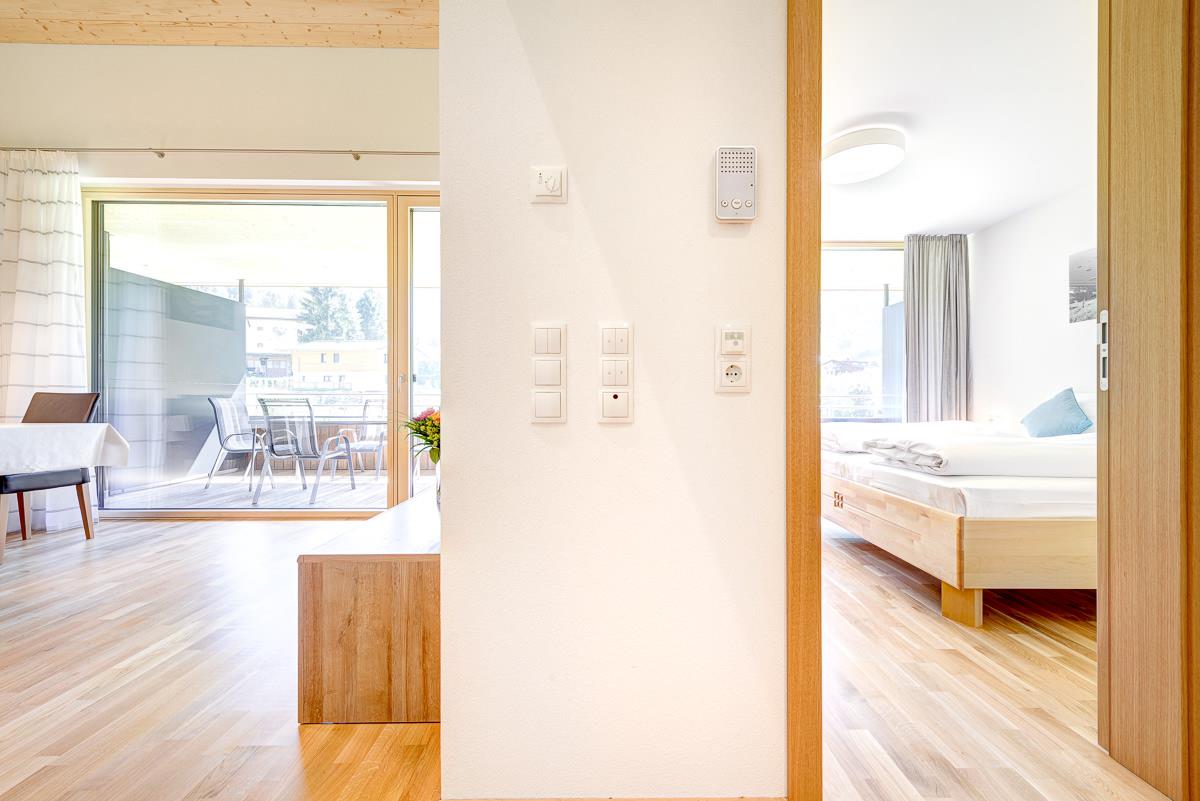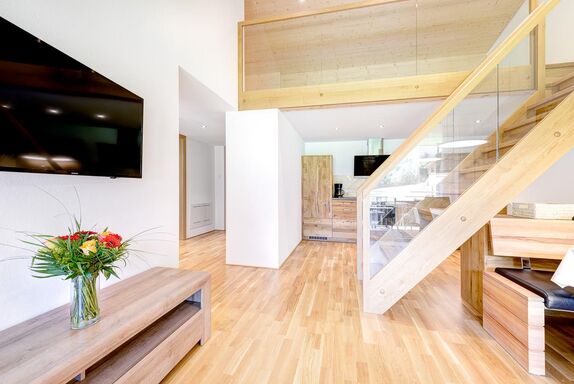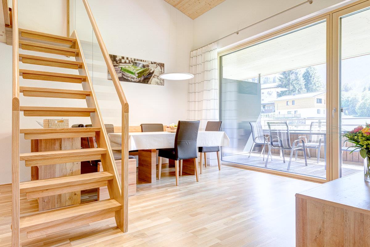 Der großzügige Balkon lädt mit bequemen Möbeln zum Entspannen ein. Ein Tiefgaragenplatz ist inklusive. Frische Milch sowie Käse und Joghurt aus der hofeigenen Sennerei gibt es vor Ort.