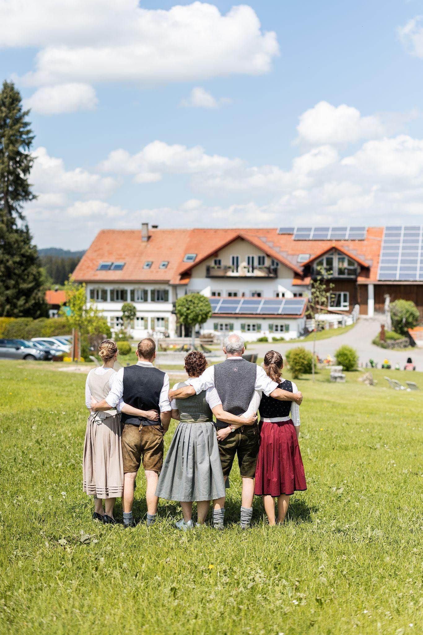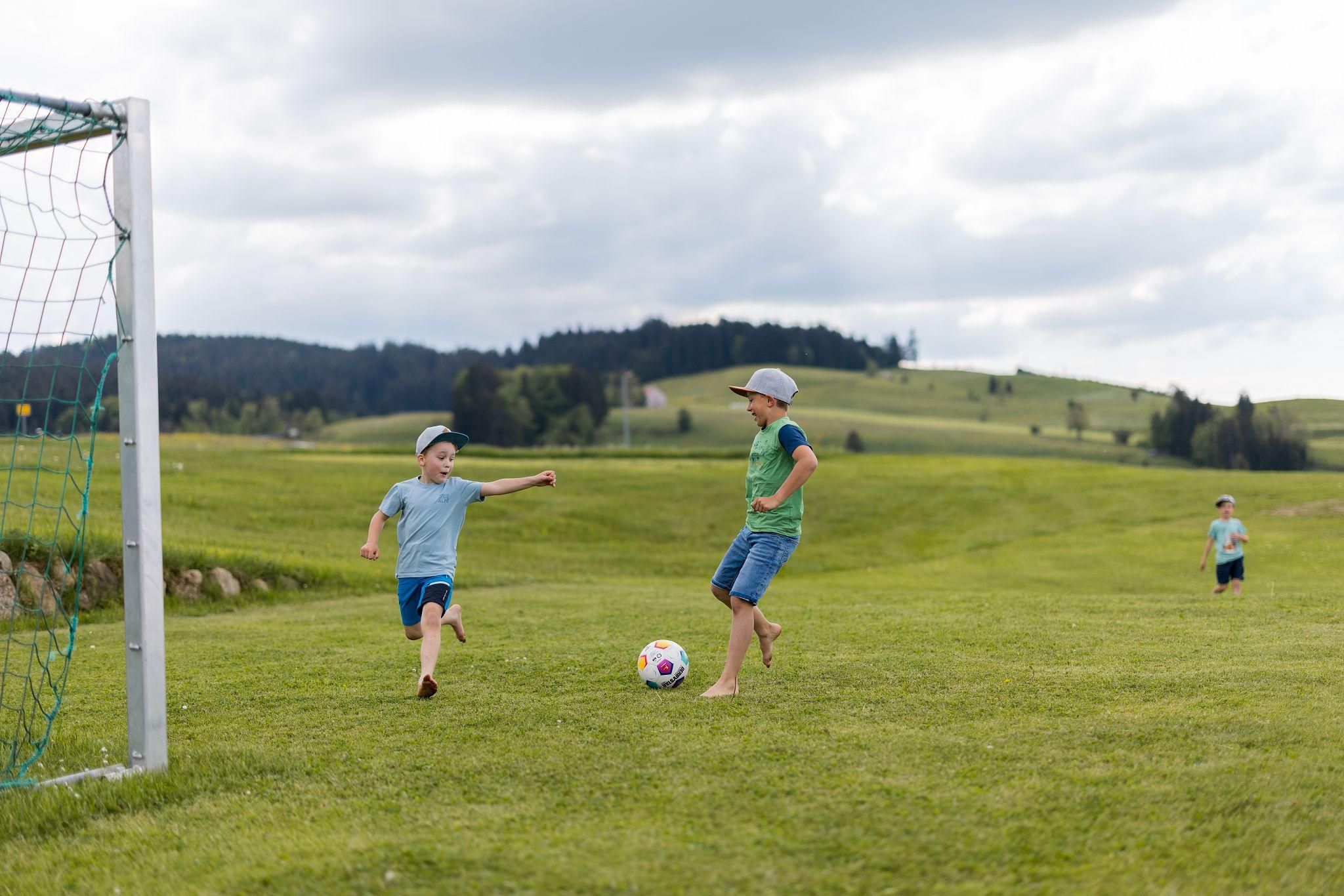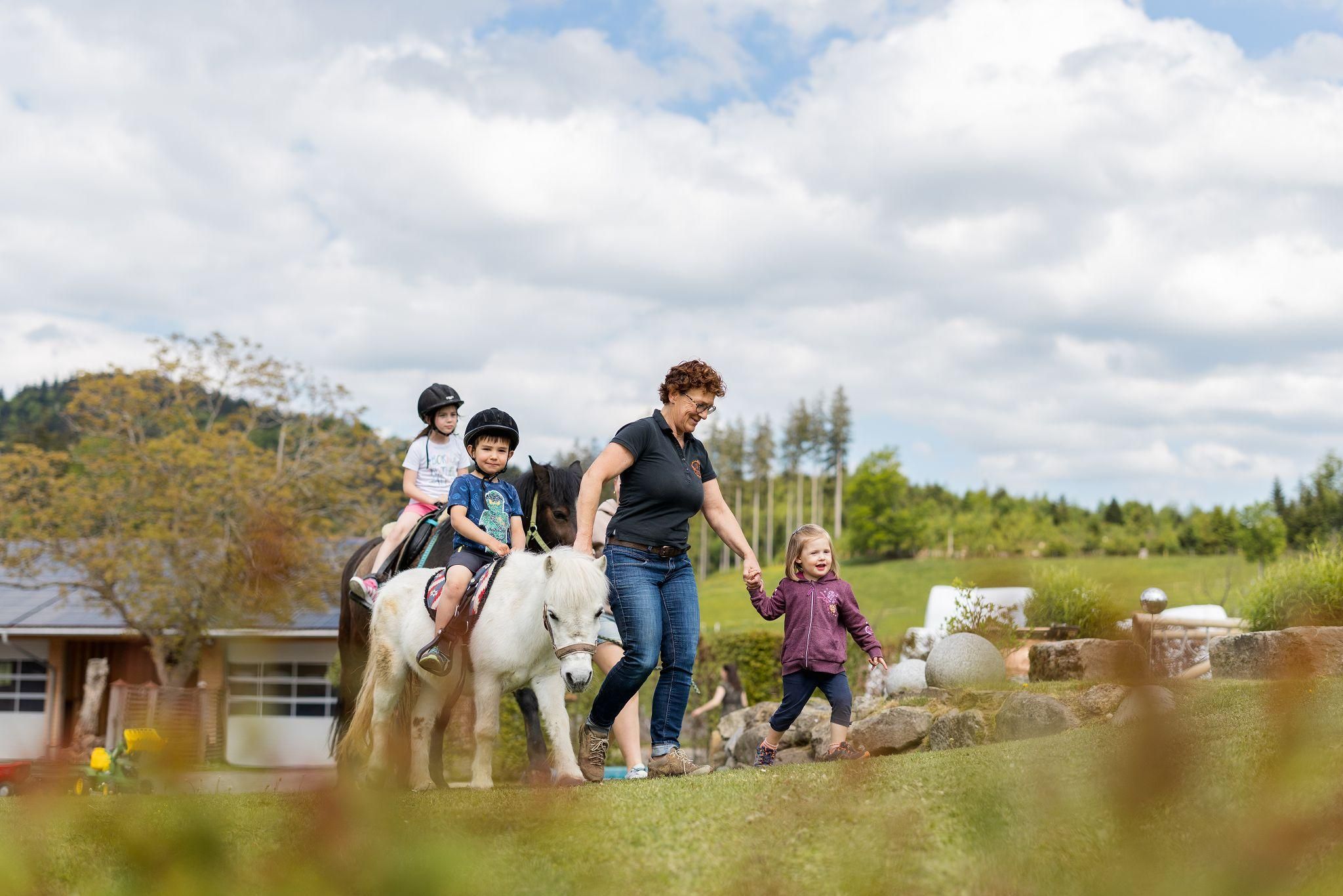 Unser Ferienhof bietet: komfortable Ferienwohnungen mit Balkon und Panoramafenstern zur Südseite - Frühstück im Aufenthaltsraum oder Room-Service - Brötchenservice - aktiver Biobauernhof mit Milchvieh, Kälbchen, Pony, Ziegen, Katzen und Hühnern - Spielstall mit Kleintieren und allerlei Spielzeug - Kinderspiel- und Fußballplatz - WLAN - Wanderwege und Loipeneinstieg direkt am Hof, Angebot von Wellnessmassagen vor Ort