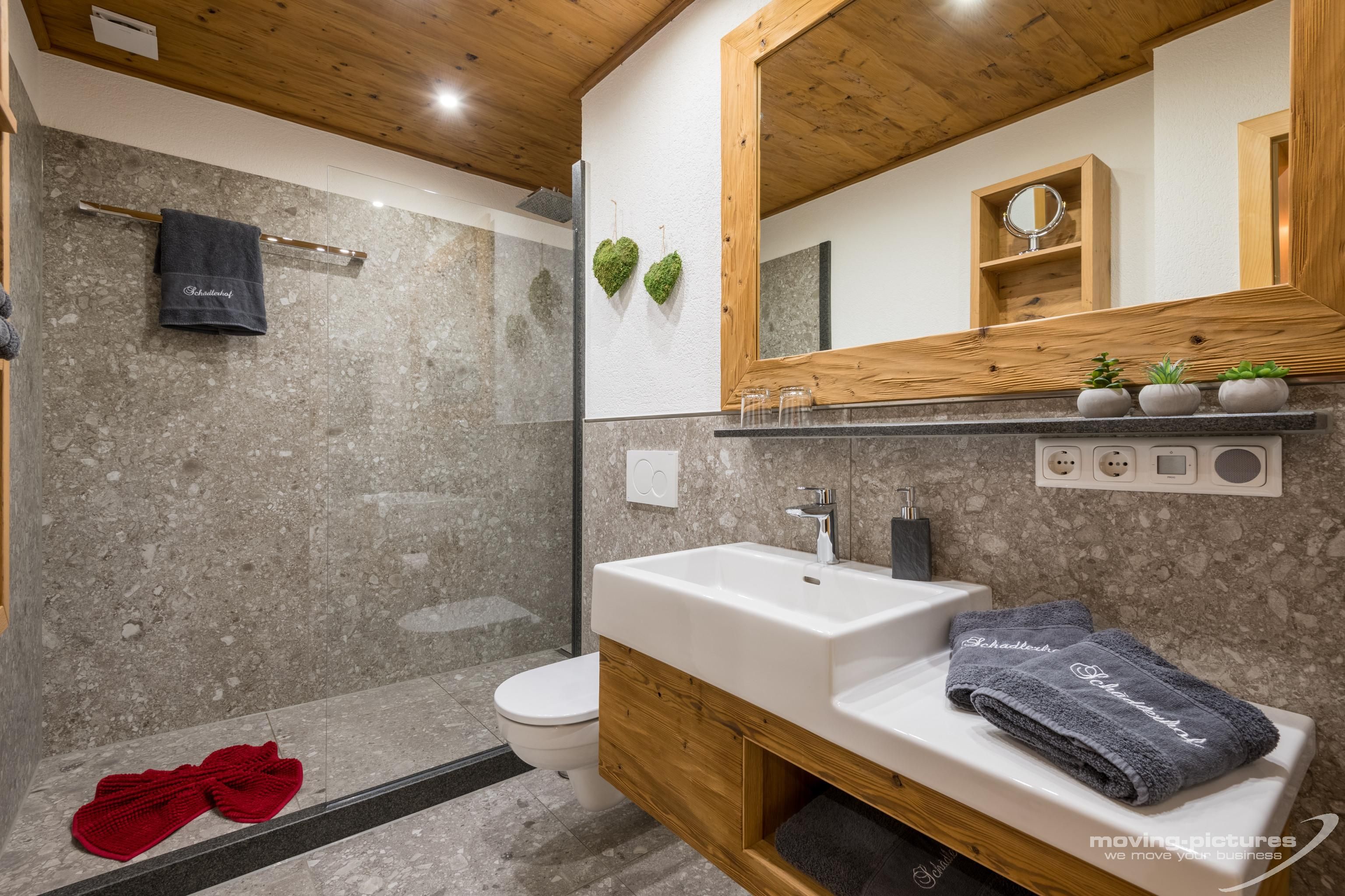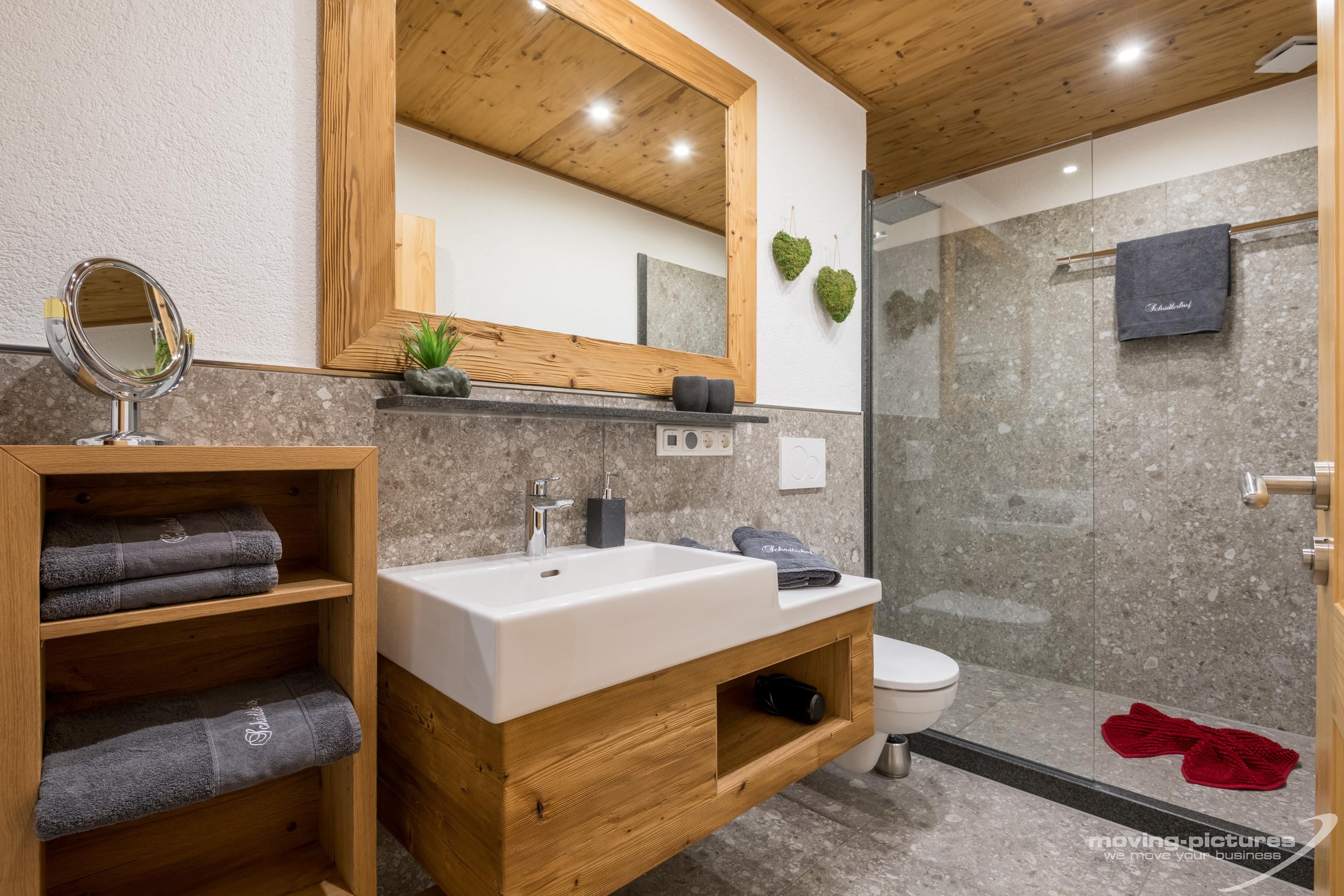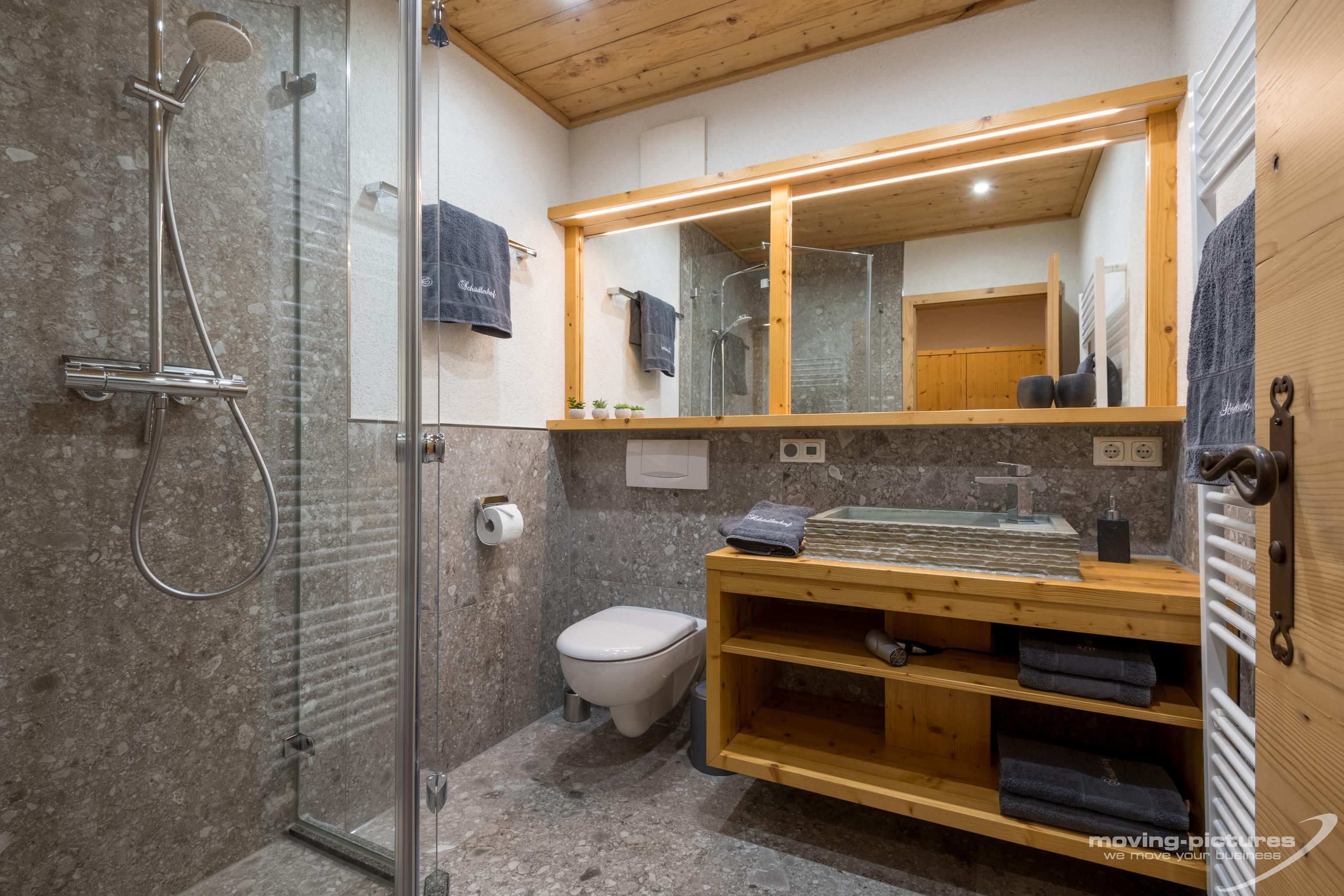 • Badezimmer mit Dusche und WC, Föhn, Schminkspiegel