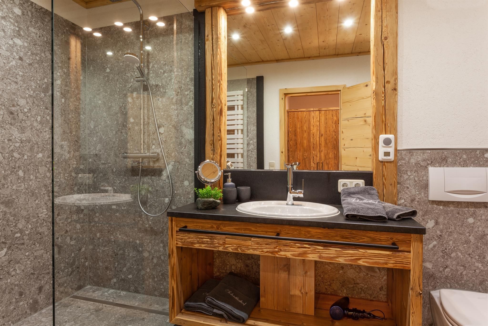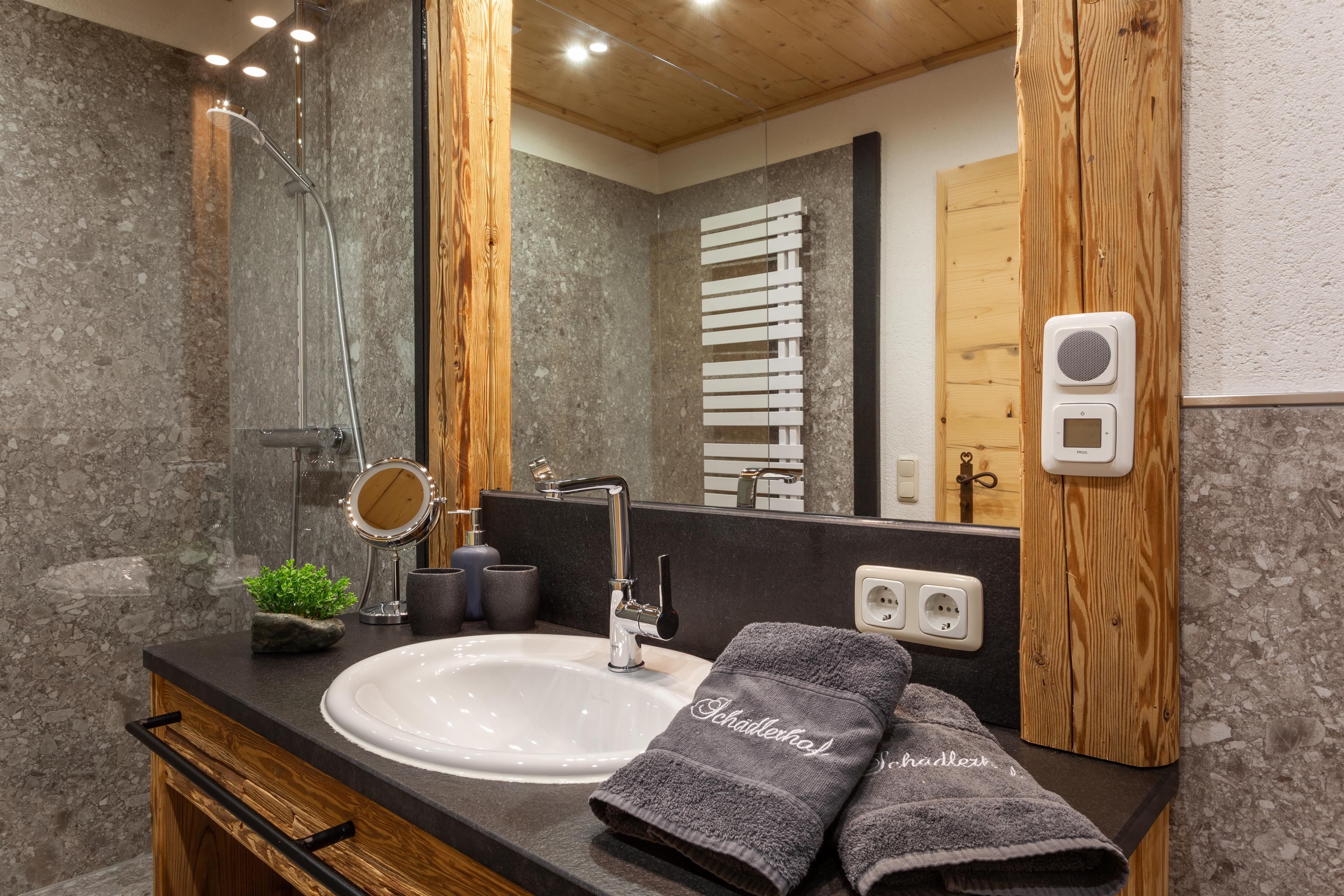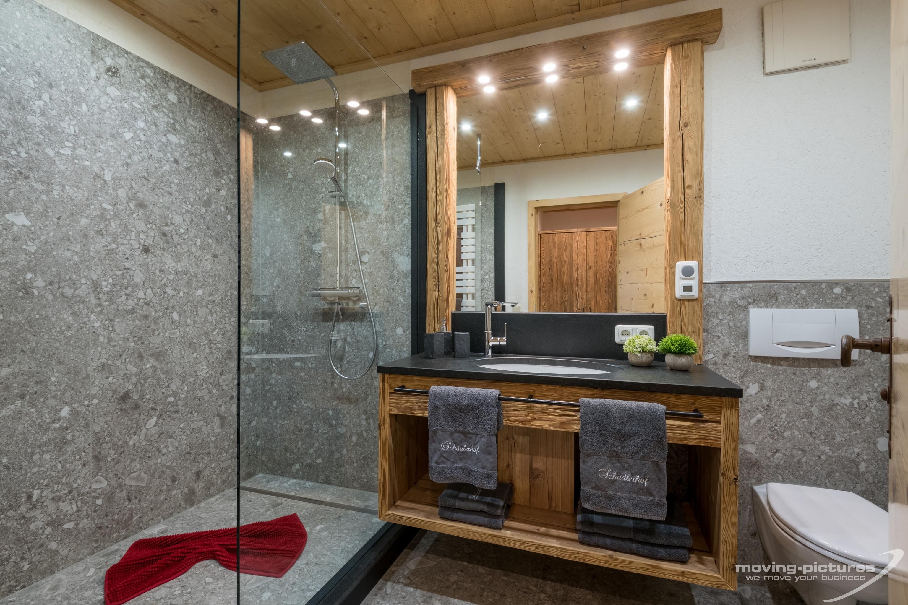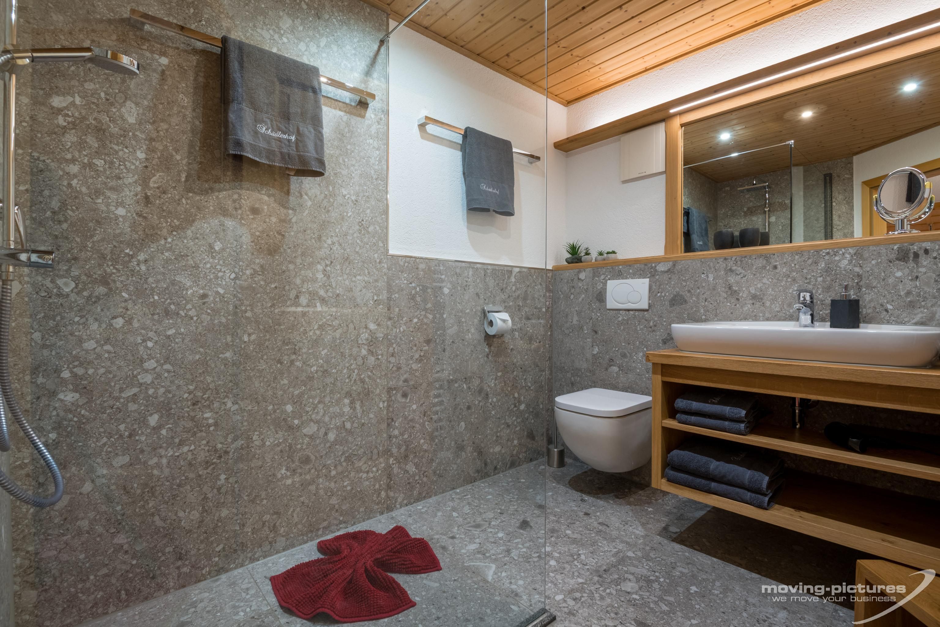 • Badezimmer mit Dusche und WC, Föhn, Schminkspiegel