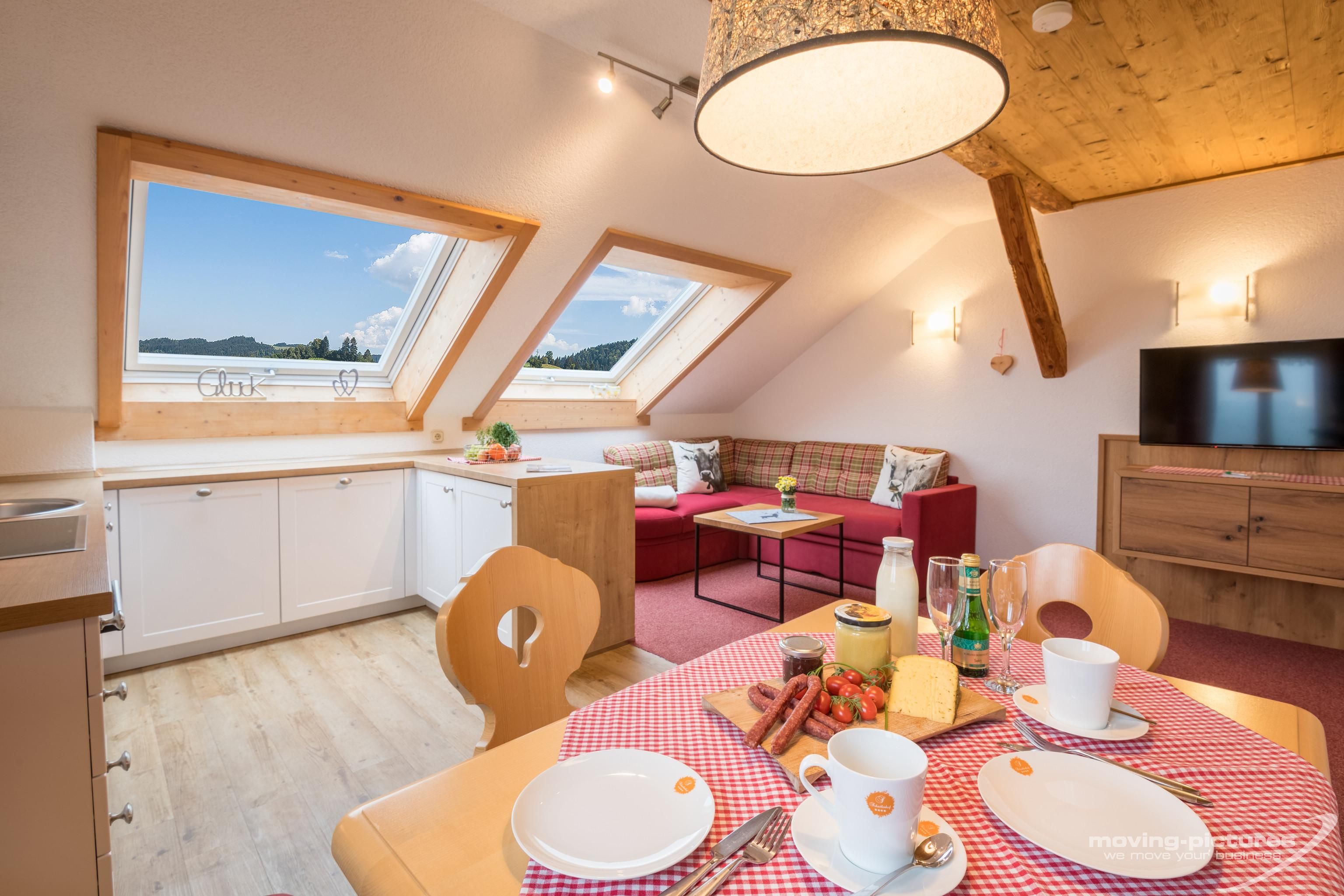 Genießen Sie einen ruhigen und entspannten Urlaub bei uns am Schädlerhof und fühlen Sie sich in unserer 4-Sterne-Ferienwohnung Hochgratblick wie Zuhause