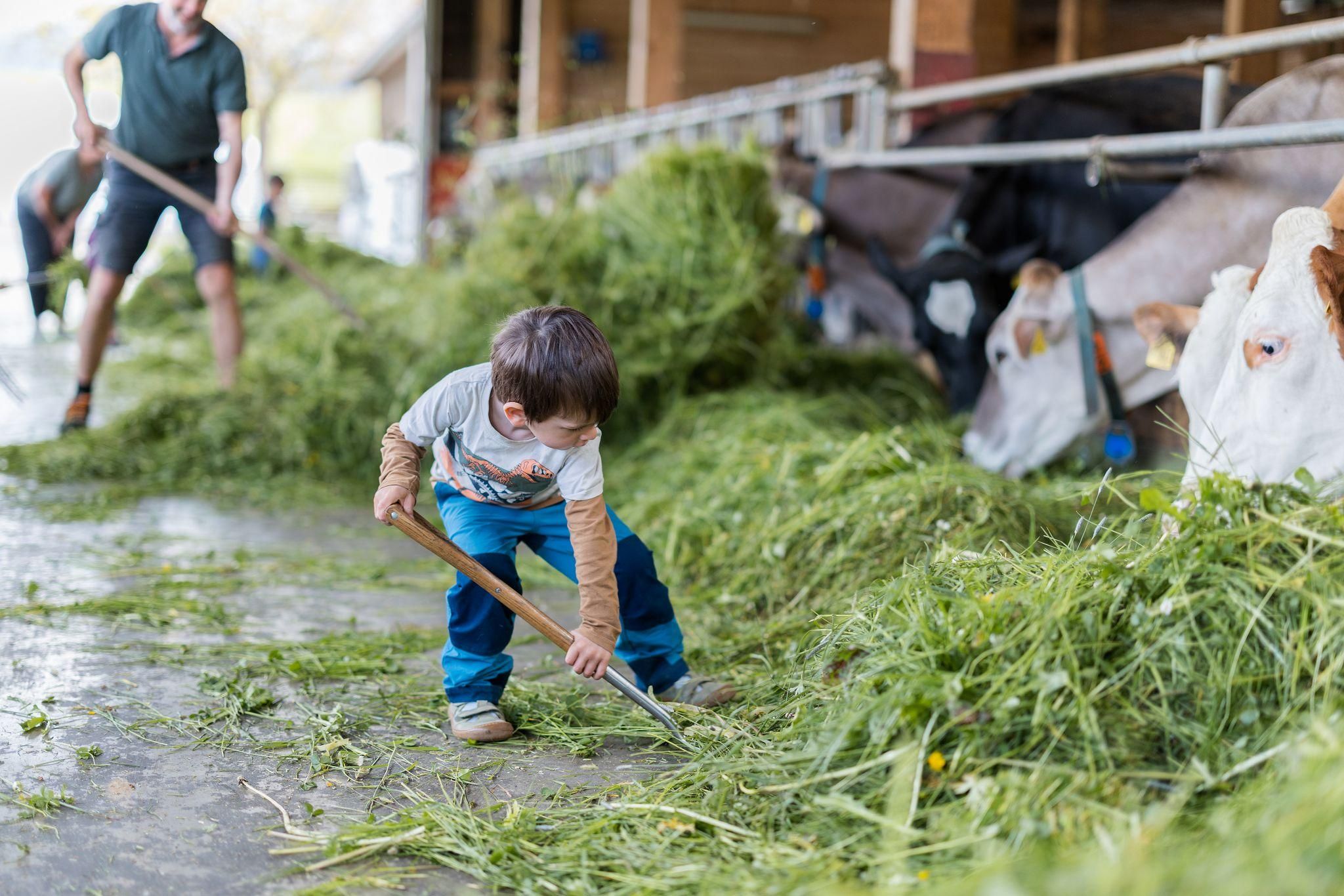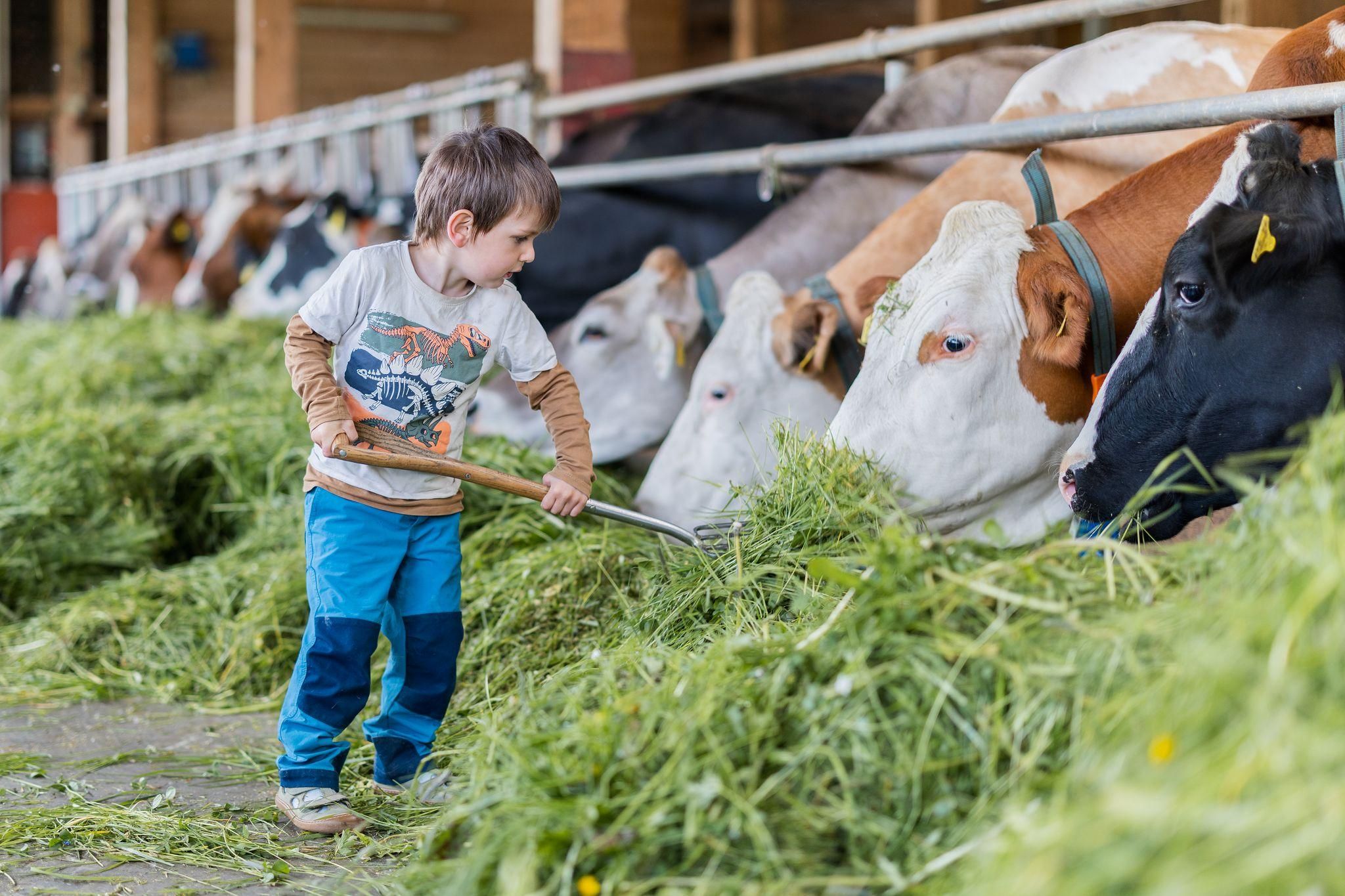 * aktiv-bewirtschafteter Biohof mit Rindern, Kälbern, Hühnern, Katzen, Hasen, Zíege und Pony