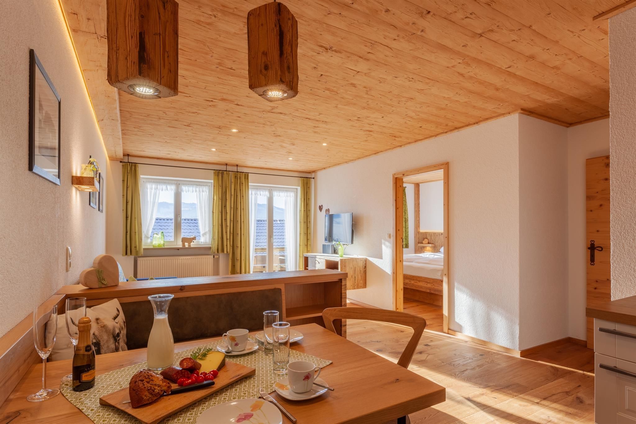 * Frühstück im Aufenthaltsraum oder Room-Service mit Produkten vom Biohof und aus der Region oder einfach frische Milch, Eier und Brötchenservice