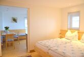 Wohnküche mit Essecke, Dusche/WC, Schlafbereich mit Doppelbett durch Schiebetür getrennt, Balkon, TV
