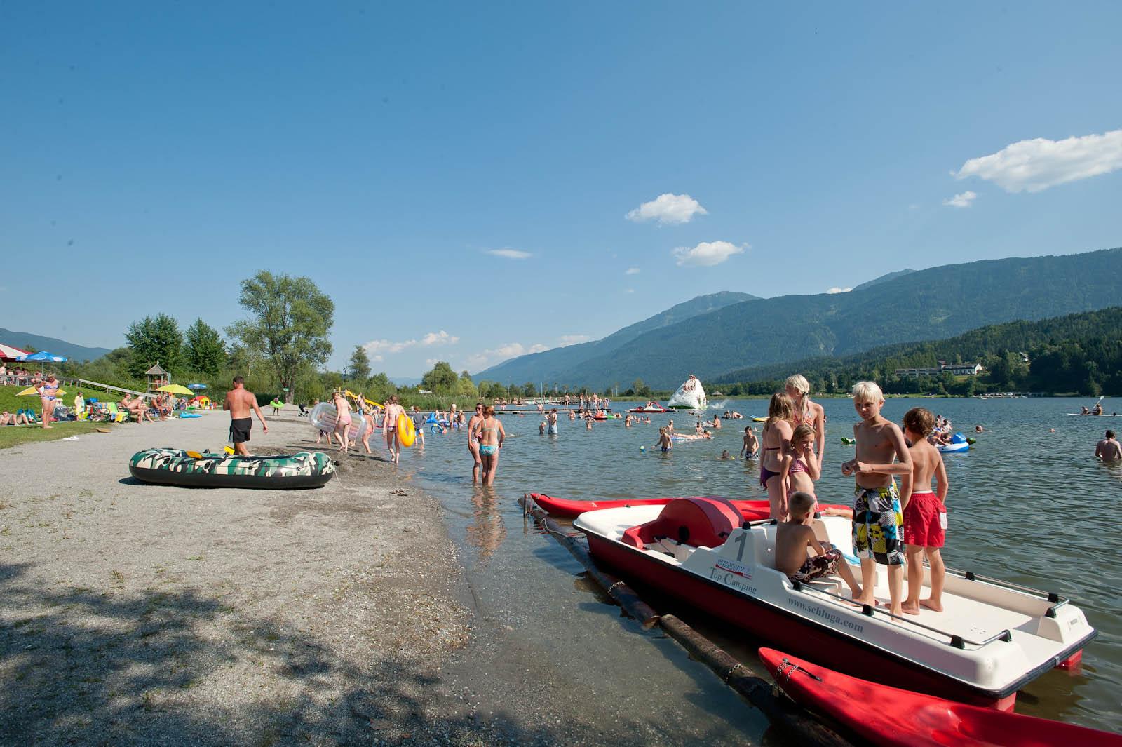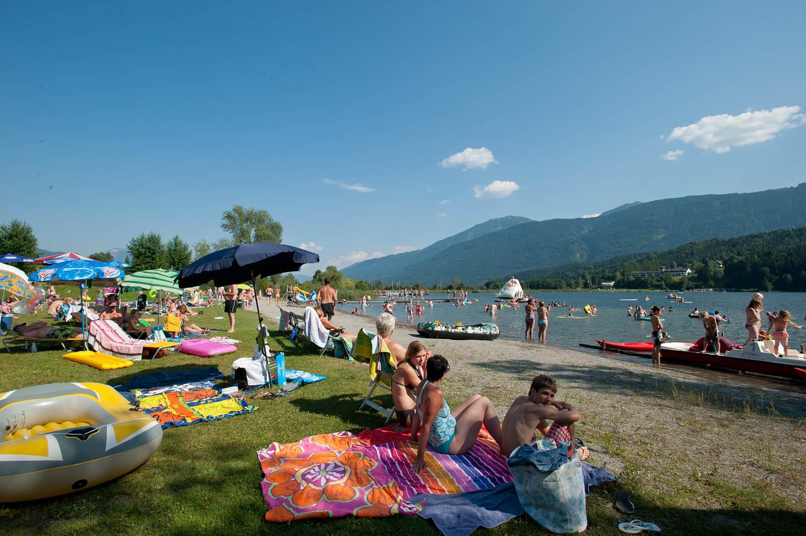 Aktivurlaub zwischen Berg und See In unserer Region findet man eine Reihe von Klettersteigen unterschiedlicher Schwierigkeitsgrade, anspruchsvolle sowie familienfreundliche Wanderrouten. Im Sommer bietet unser knapp 30.000 m² große Strand am Pressegger See genug Platz, um Köpfler zu üben oder um die Seele im Sonnenschein baumeln zu lassen.
